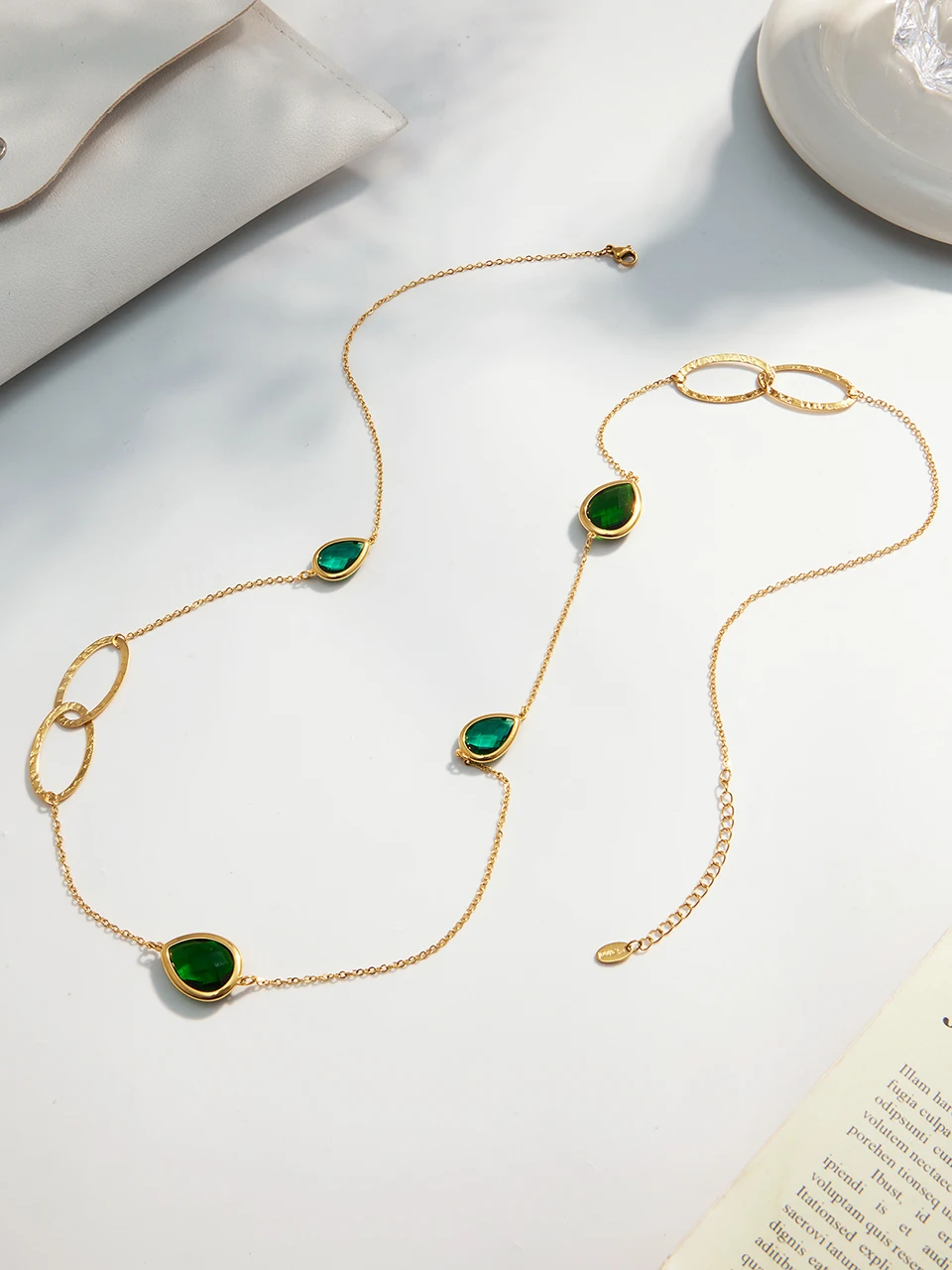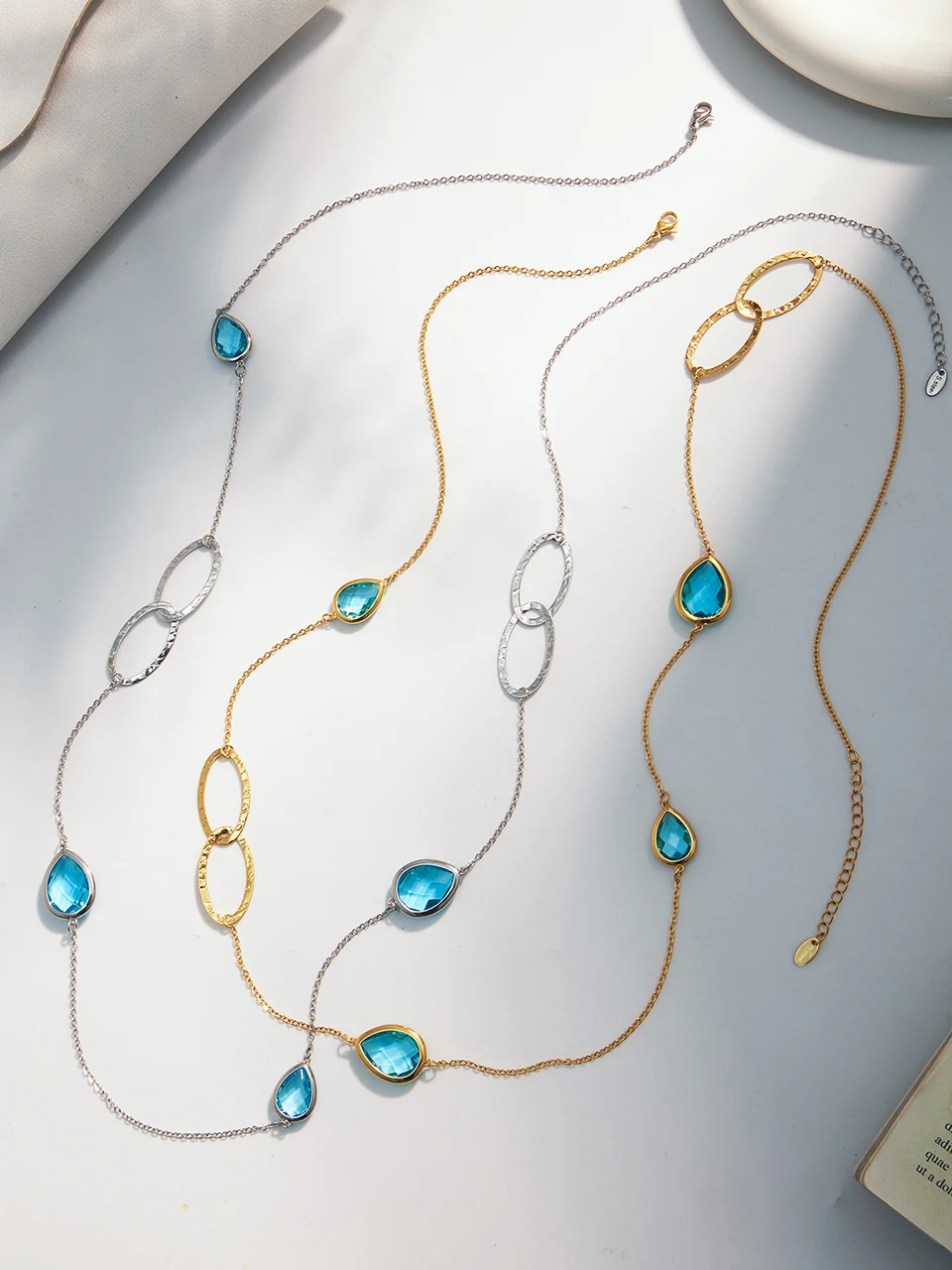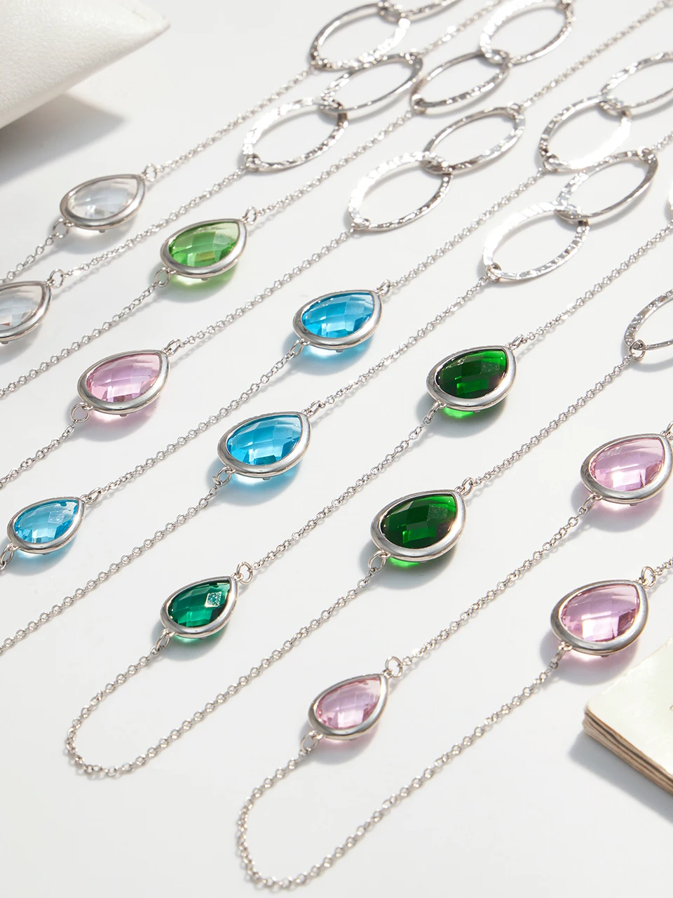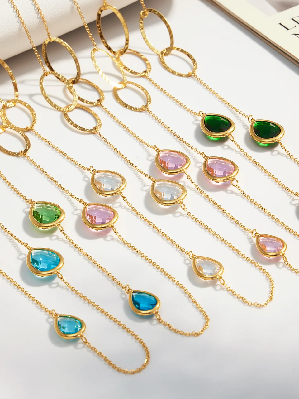 With Shiny Droplet Faceted Glass Stone Necklaces For Women