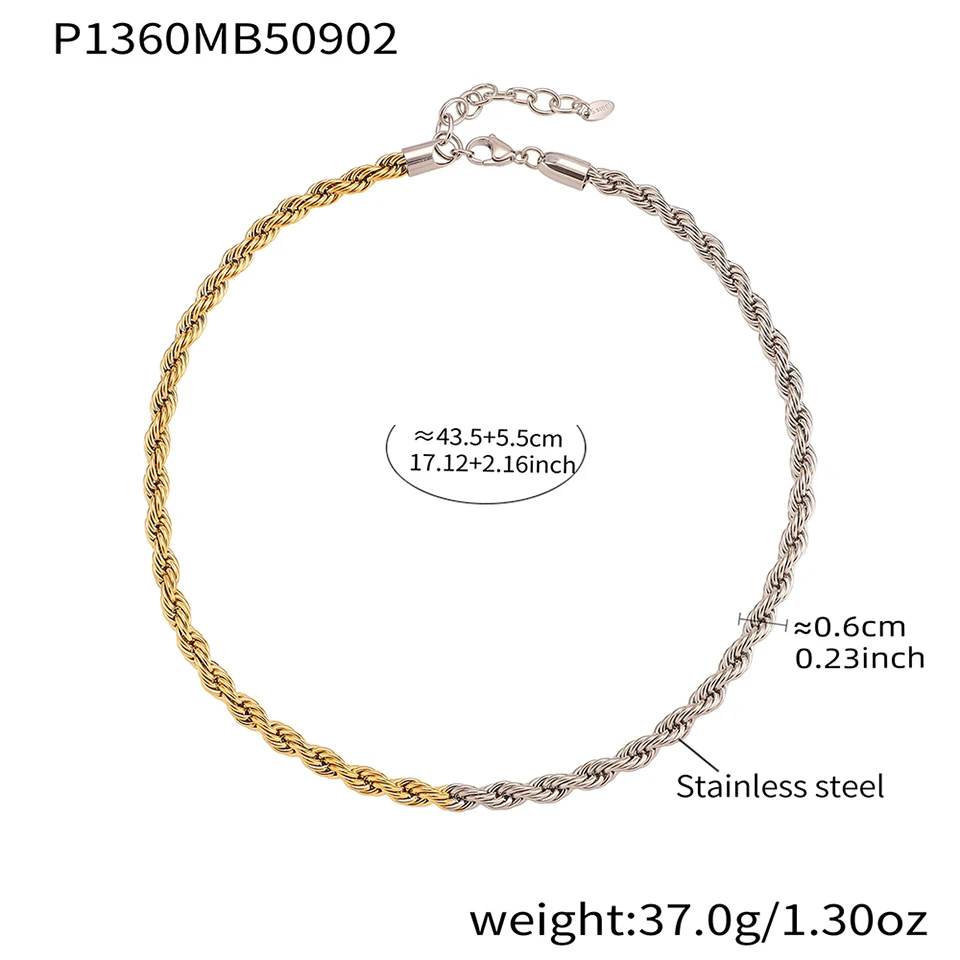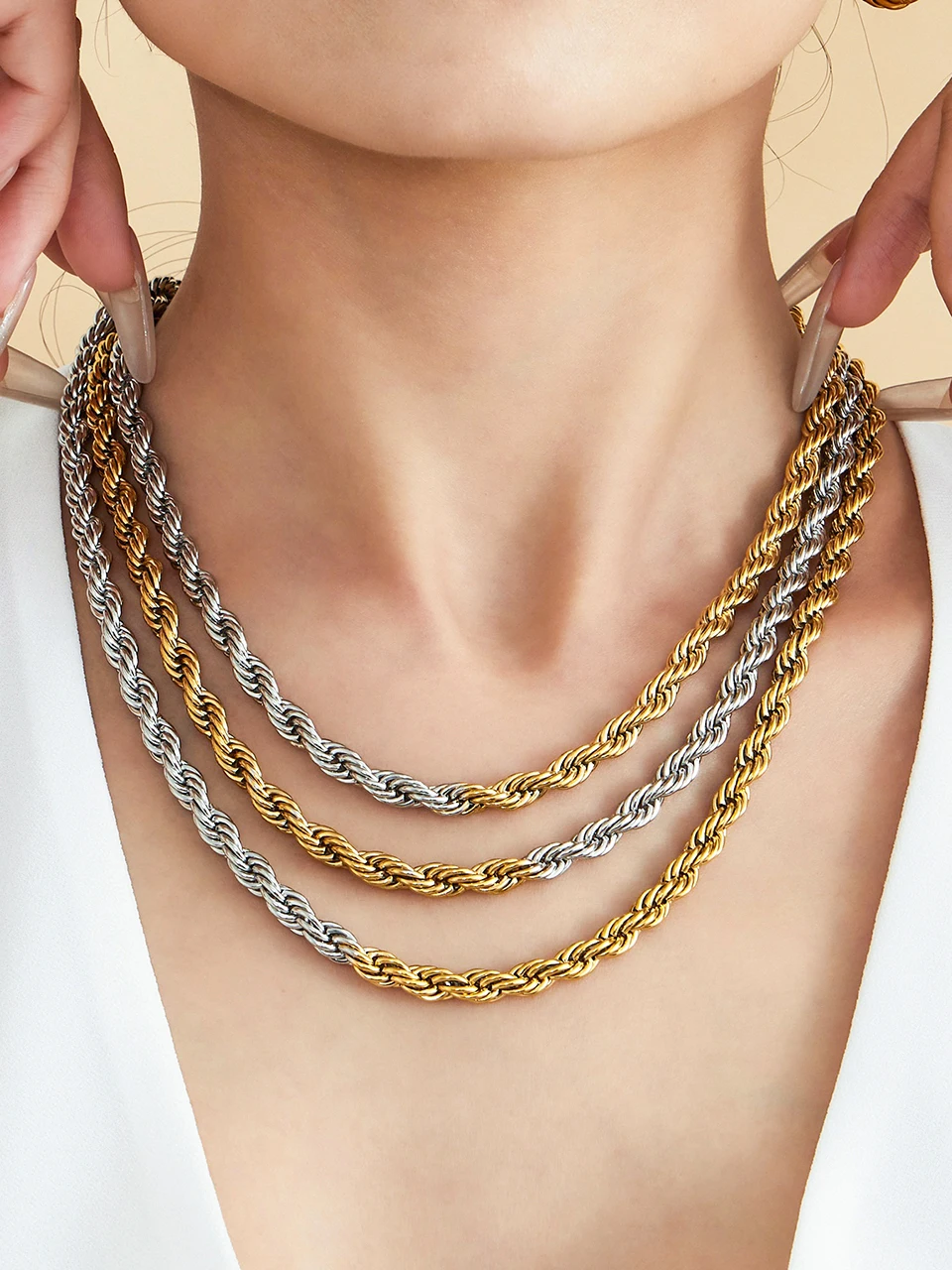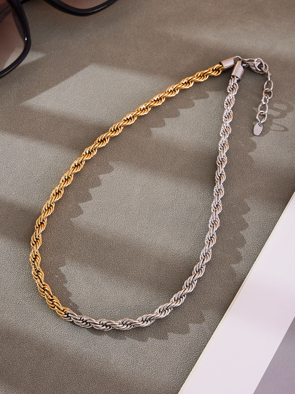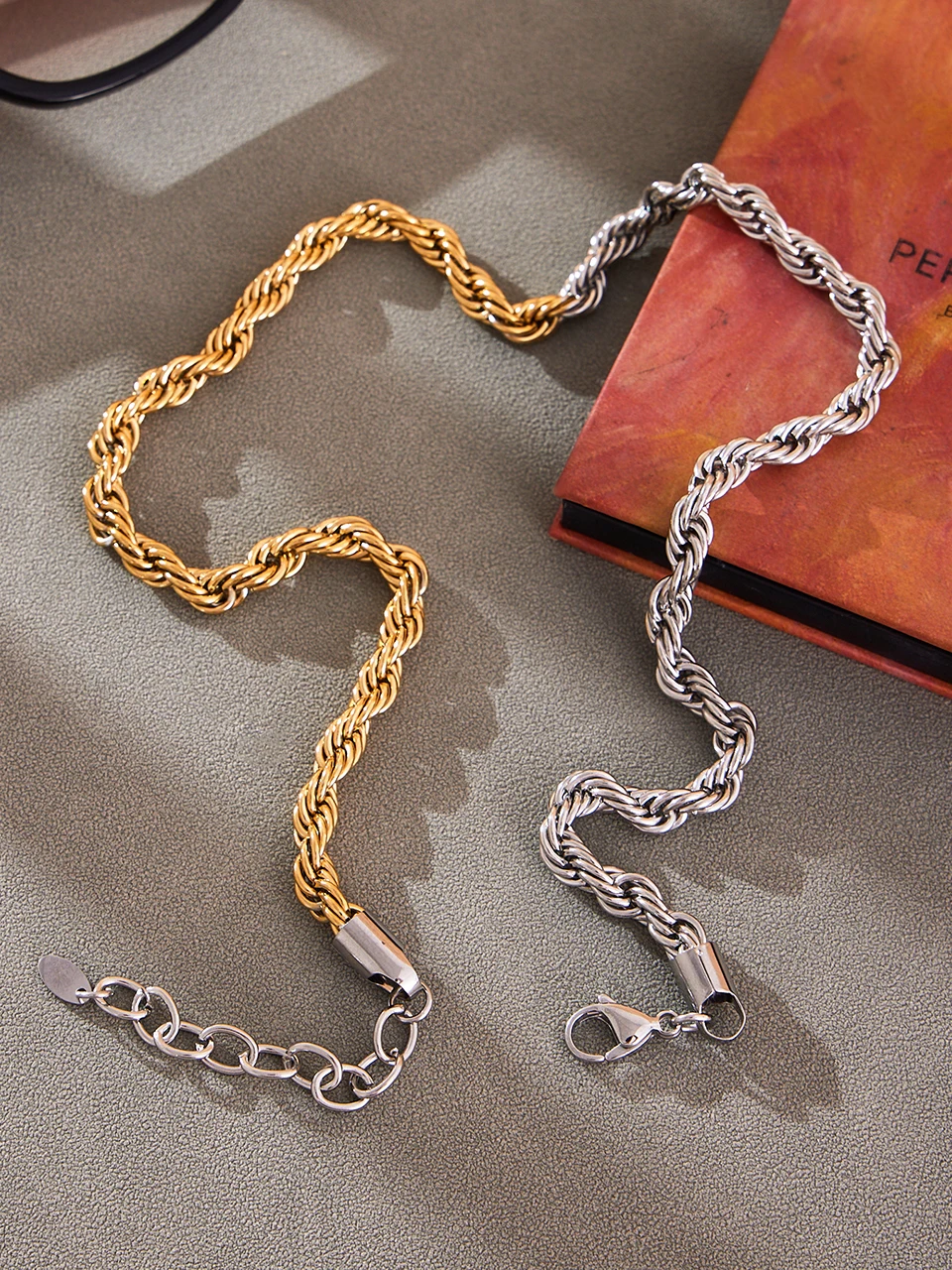 Hip-hop Rock Style Unisex Rope Shape Necklace In Stainless Steel 18k Gold Plated