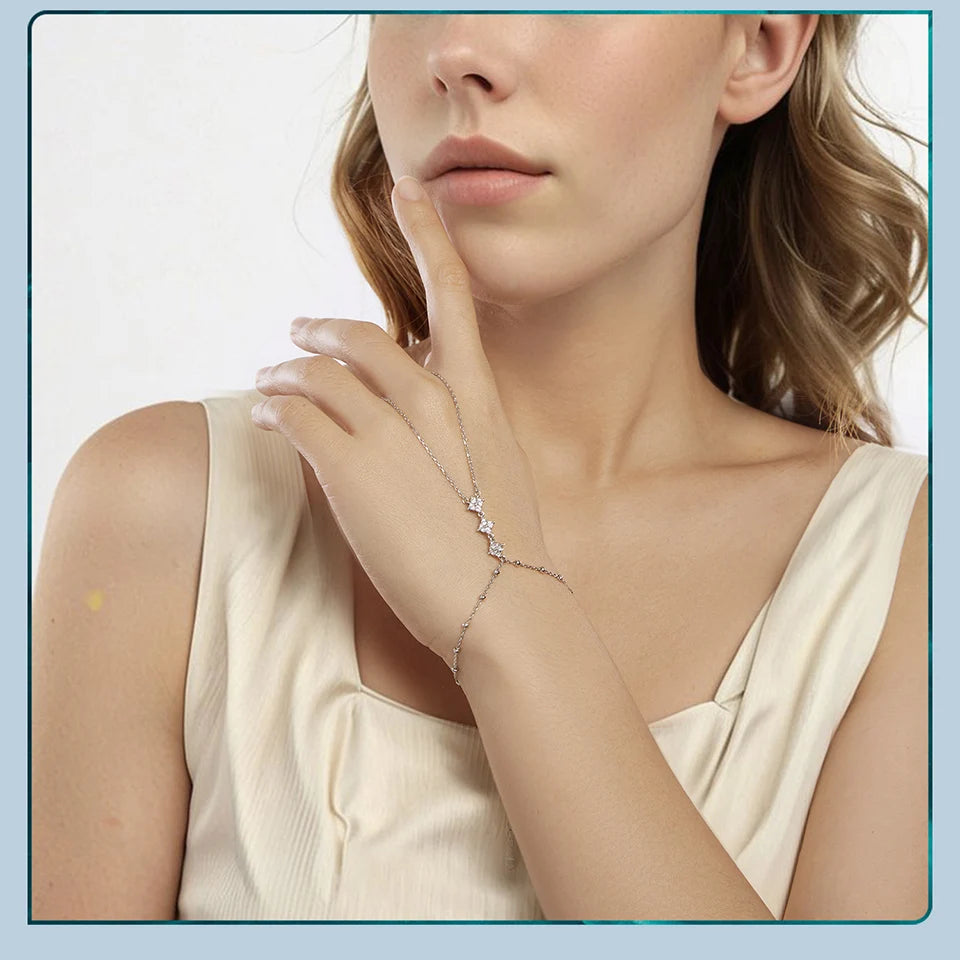 Dainty Four-leaf Clover CZ Bracelet Ring Chain for Women Summer Body Jewelry Set