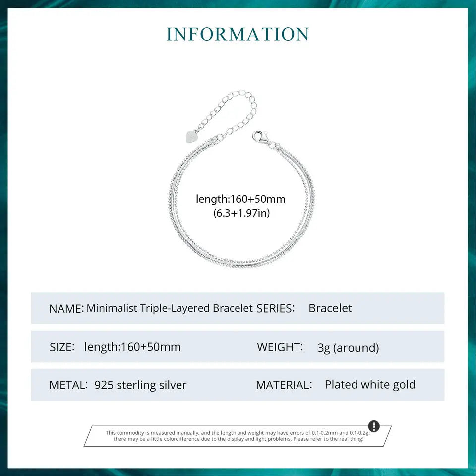 White Gold Plated Triple-Layered Adjustable Chain Bracelet Jewelry Gift