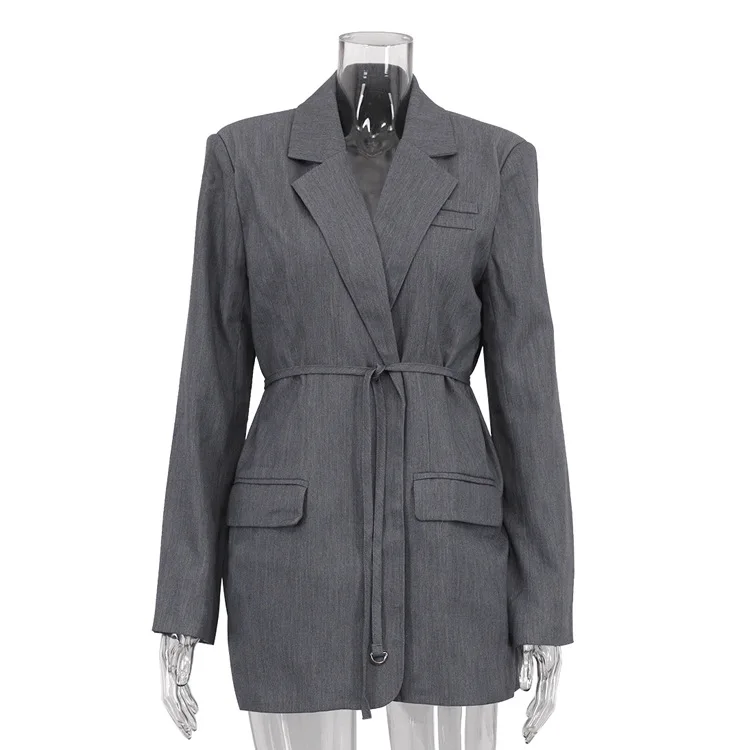 Woman Clothing Fashion Lace-up Blazer Female Long Sleeve Bandage Suit Solid Gray Outerwears Office