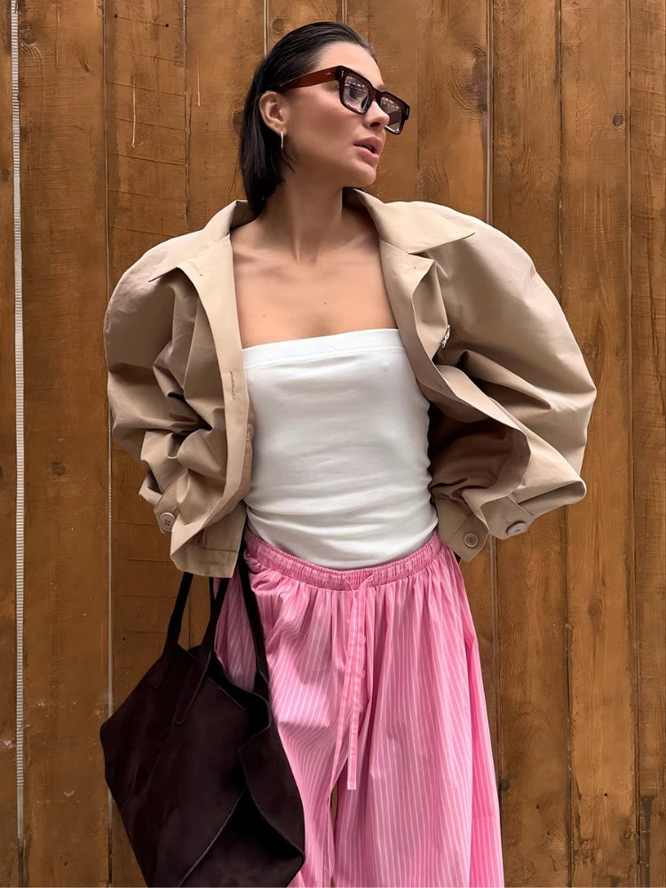 Fashion Casual Striped Pants High Street Woman Clothing Loose Trousers Autumn Lady Elastic Waist Drawstring Lantern Pants