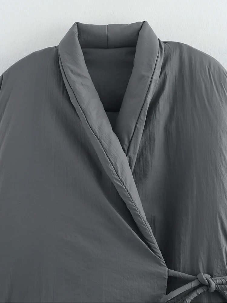 New Fashion Fall/Winter Women Solid Color Side Tie Cottons Retro Ladies Casual Lapel Jacket