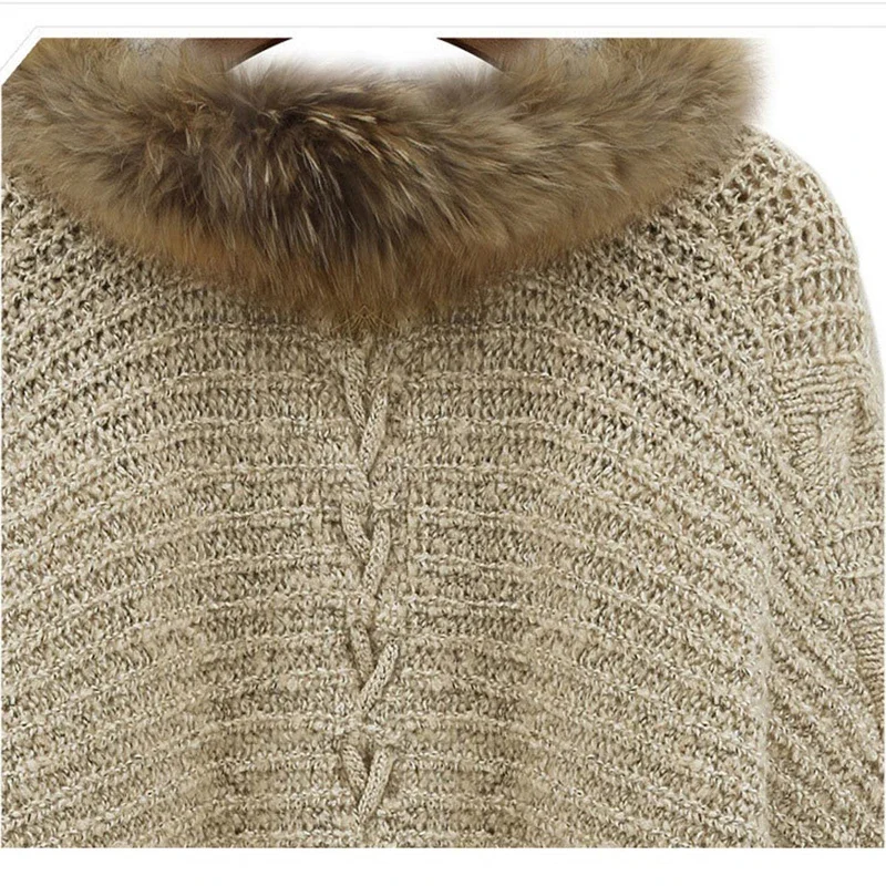 Women Sweater Thick Poncho Capes Autumn Winter Femme Knitted Bat Sleeve Fur Collar Sweater Knitted Long Cardigan
