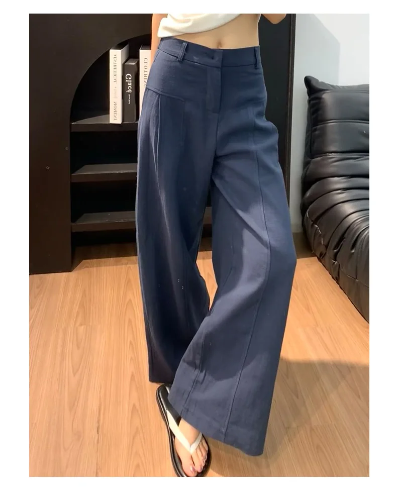 Summer Straight Leg Suit Pants High Waist Ladies Formal Pants Loose