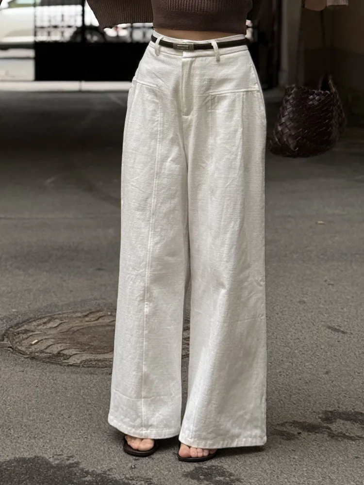 White Cotton Linen Pants Women Wide Leg Formal Trousers