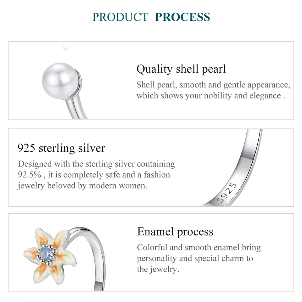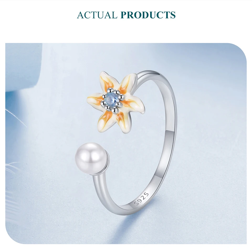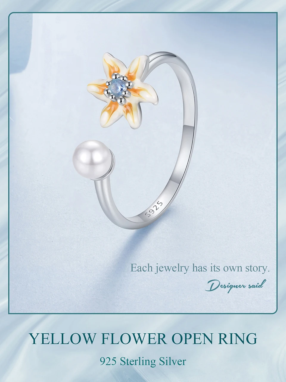 Fine or Fashion: 925 Sterling Silver Spring Flower Adjustable Open Ring for Women