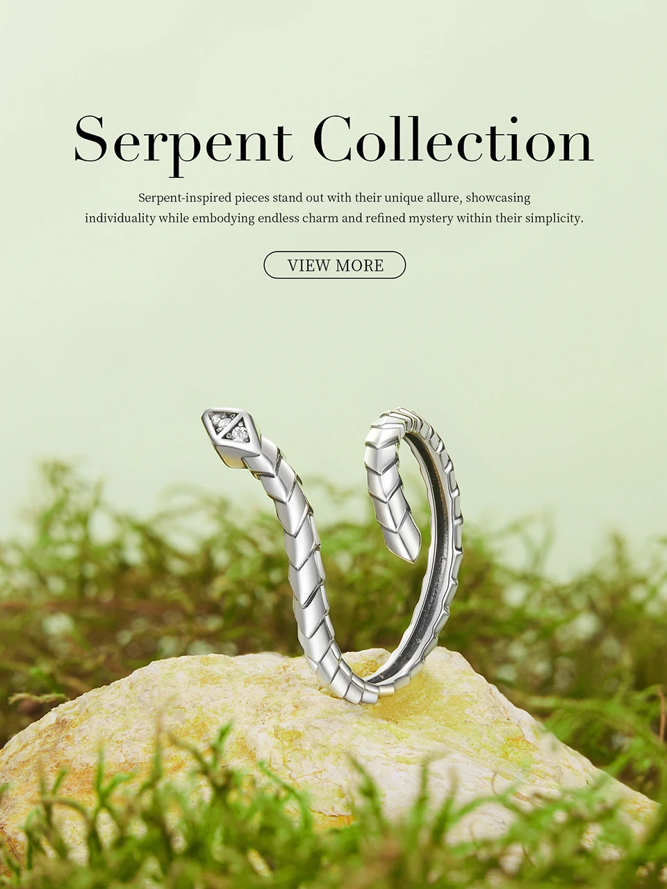 925 Sterling Silver Snake Ring for Women, Adjustable