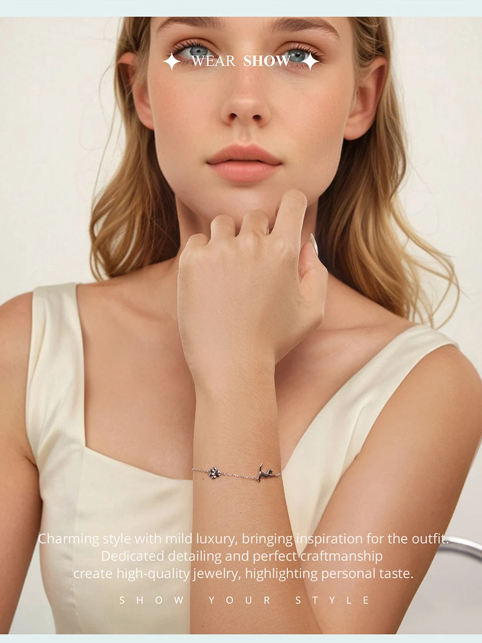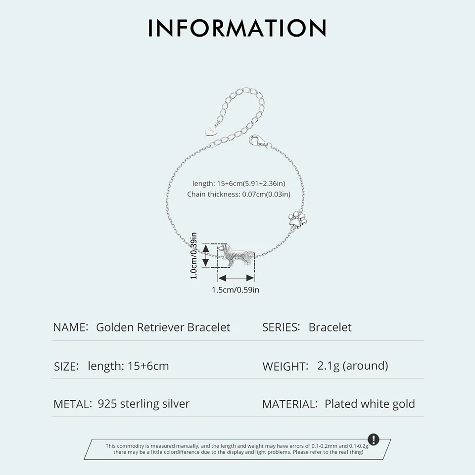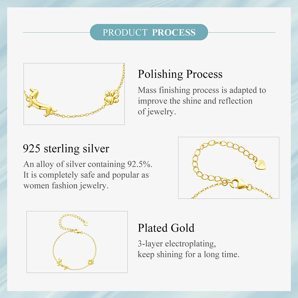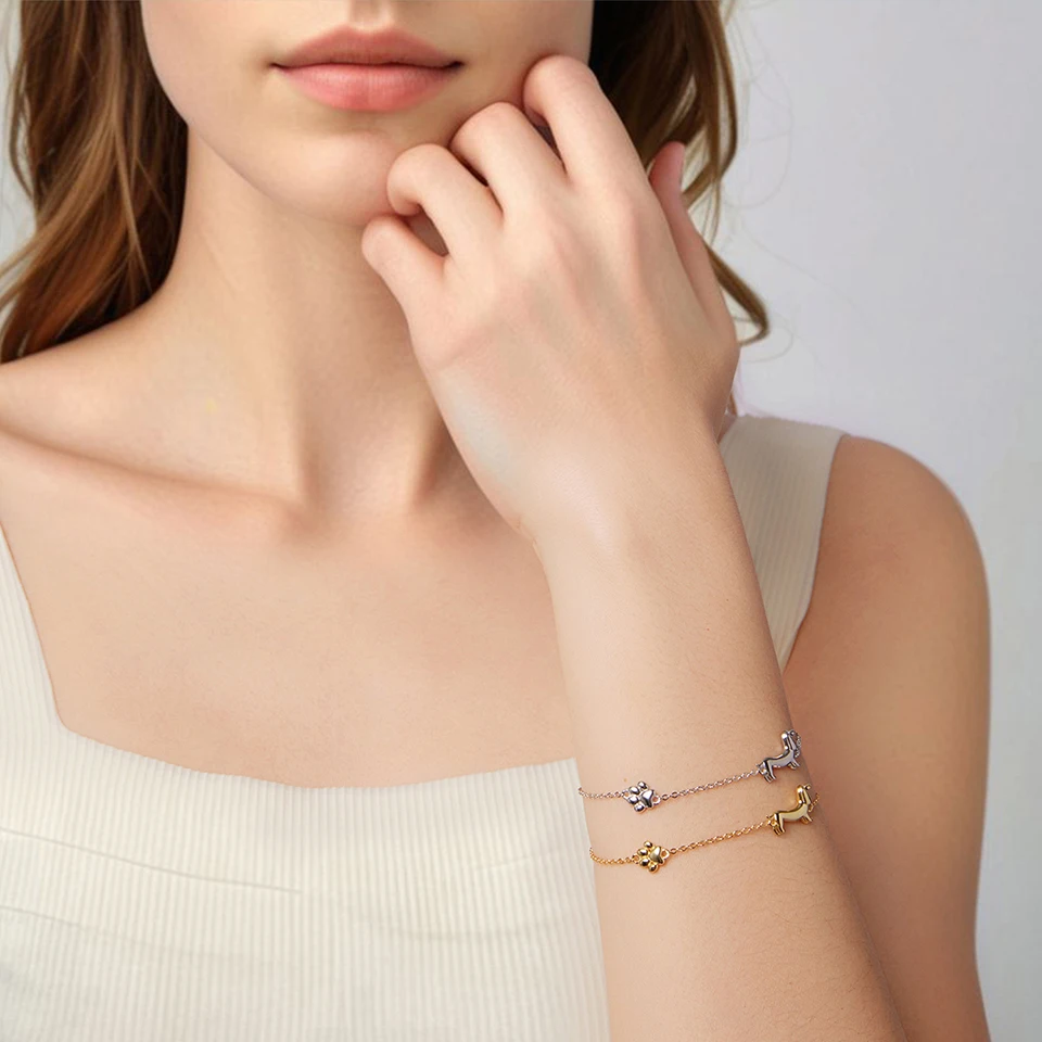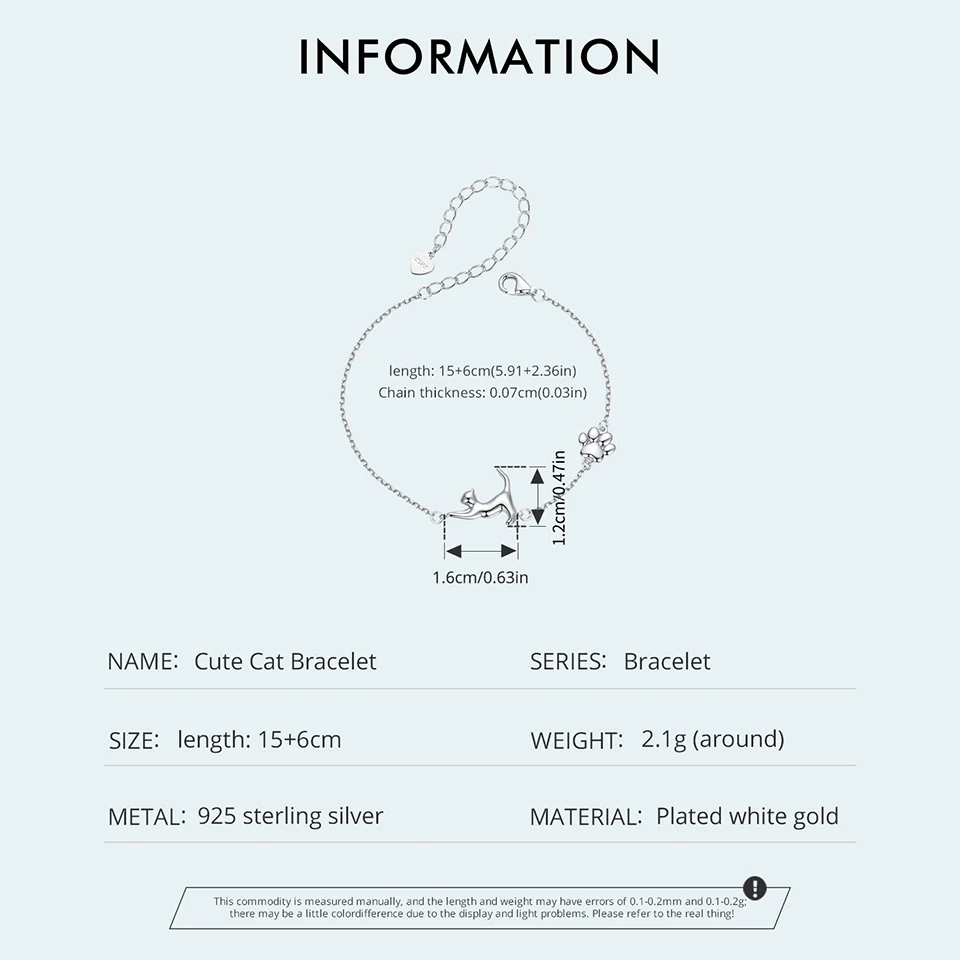 Solid 925 Sterling Silver Cute Cat / Dog Chain Bracelet for Women Delicate Jewelry Bracelet