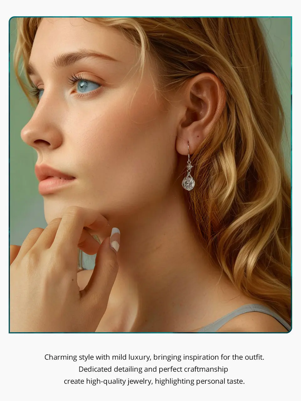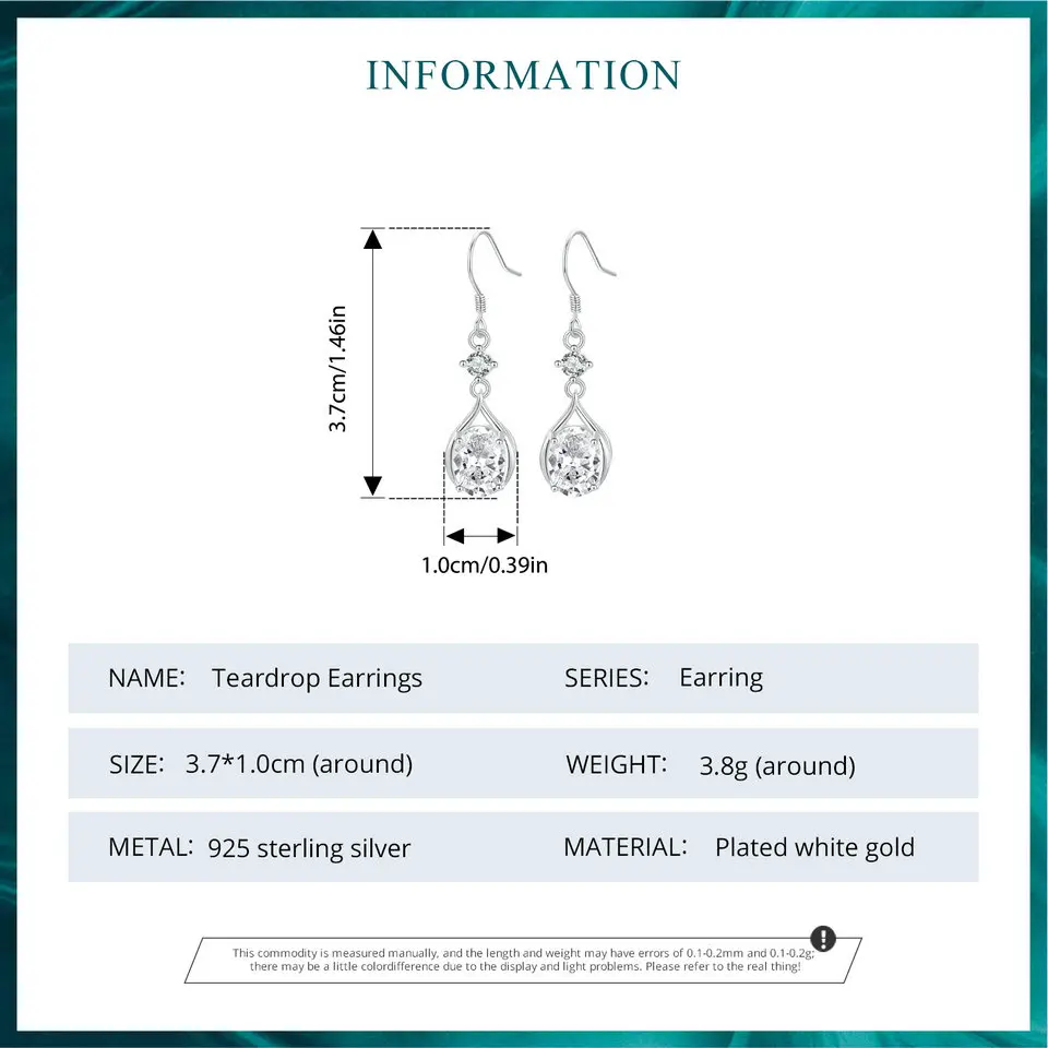 925 Sterling Silver Teardrop Earrings+Necklace for Women Cubic Zirconia Round