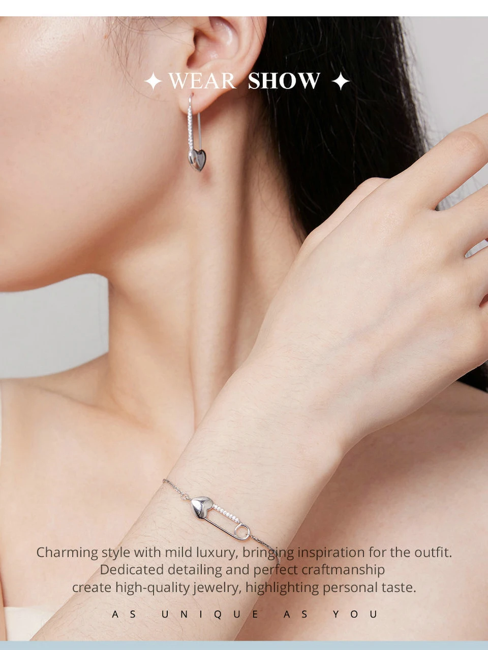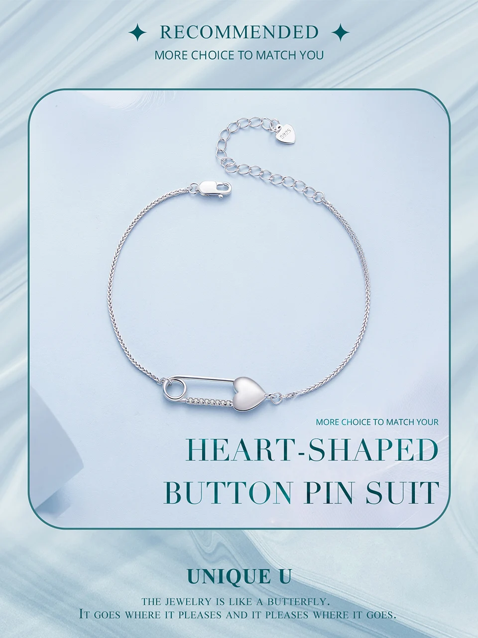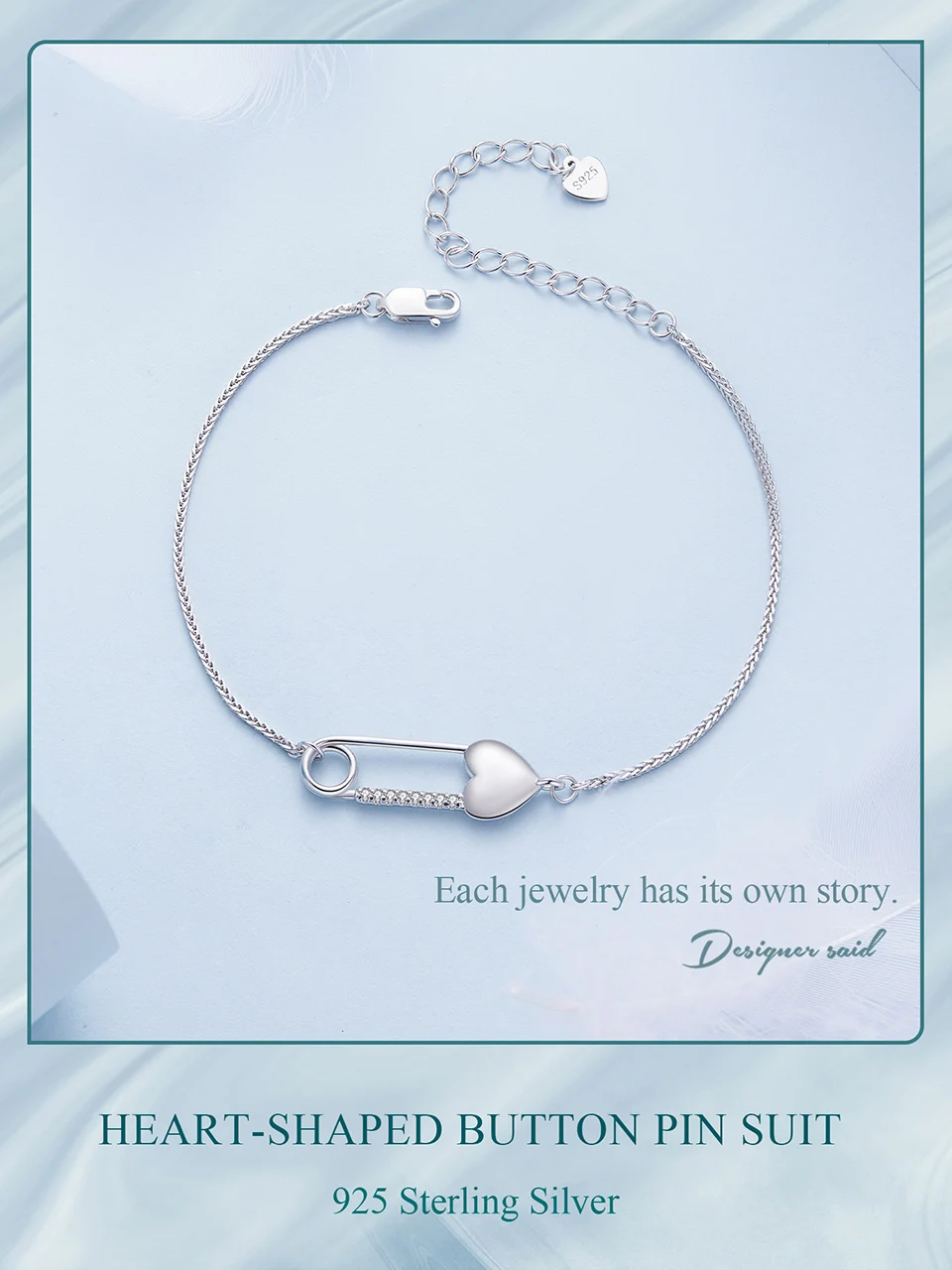 925 Sterling Silver Heart-Shaped Button Pin Bracelet and Earrings Jewelry Set for Women Original Design Fine Jewelry Gift