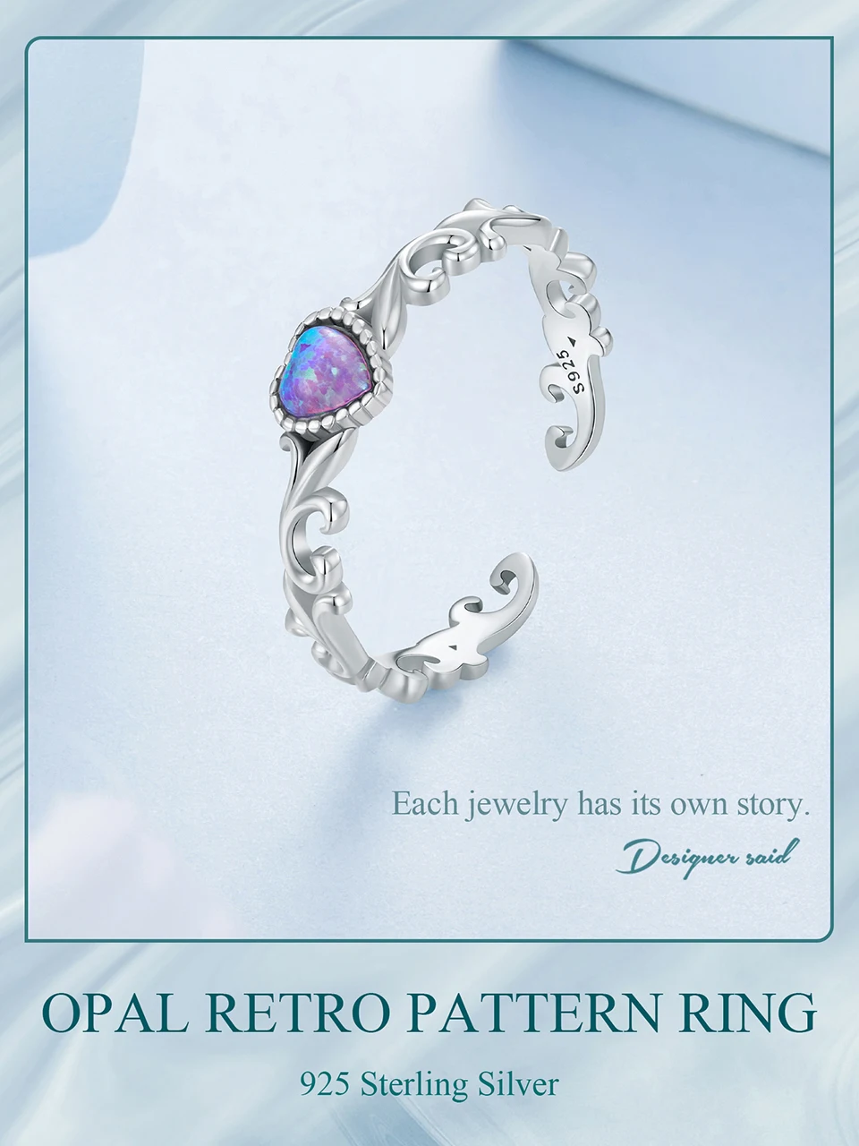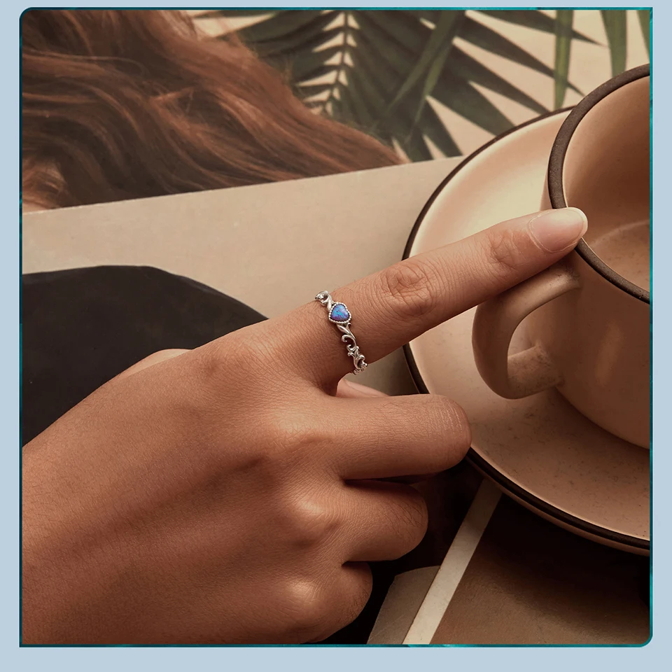 925 Sterling Silver Opal Retro Pattern Ring for Women