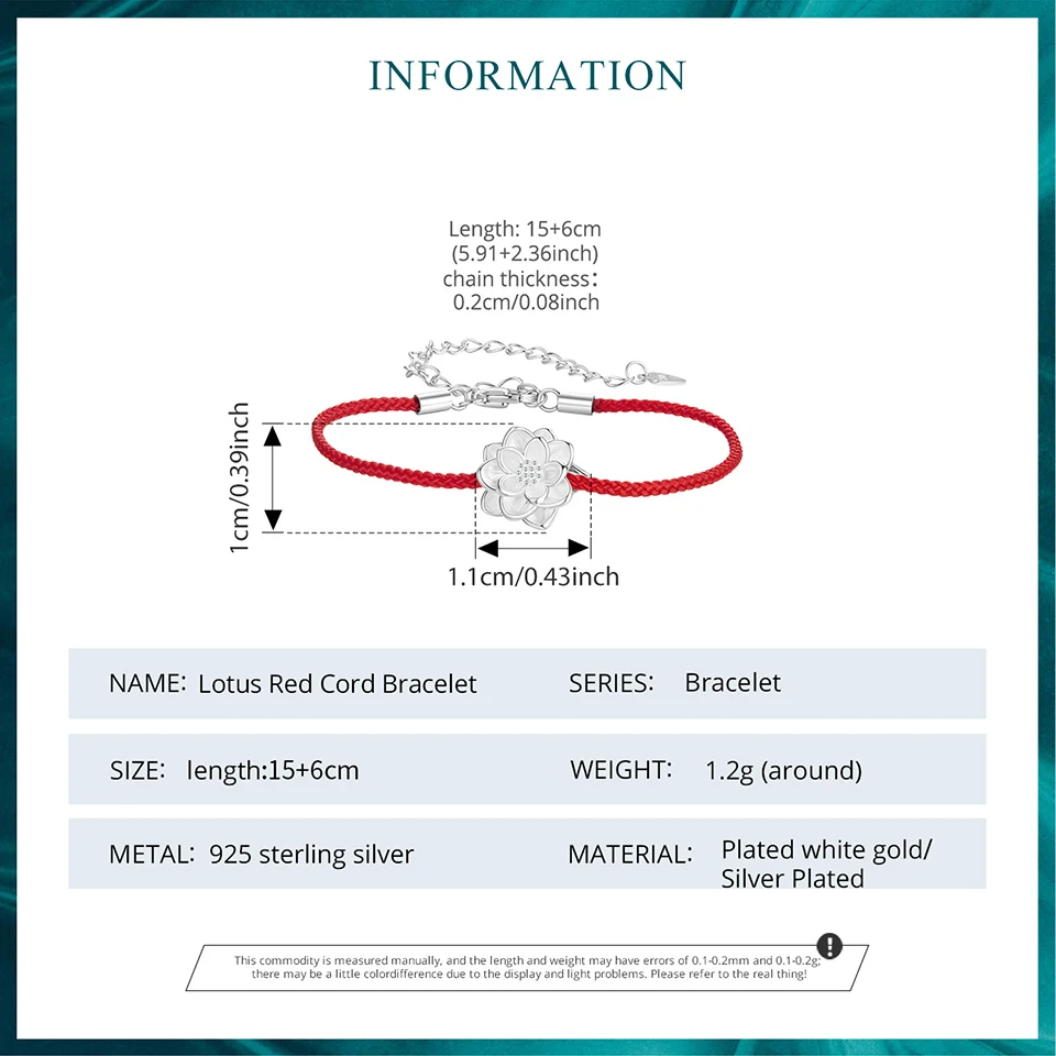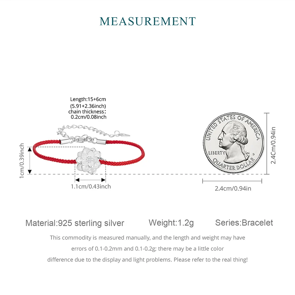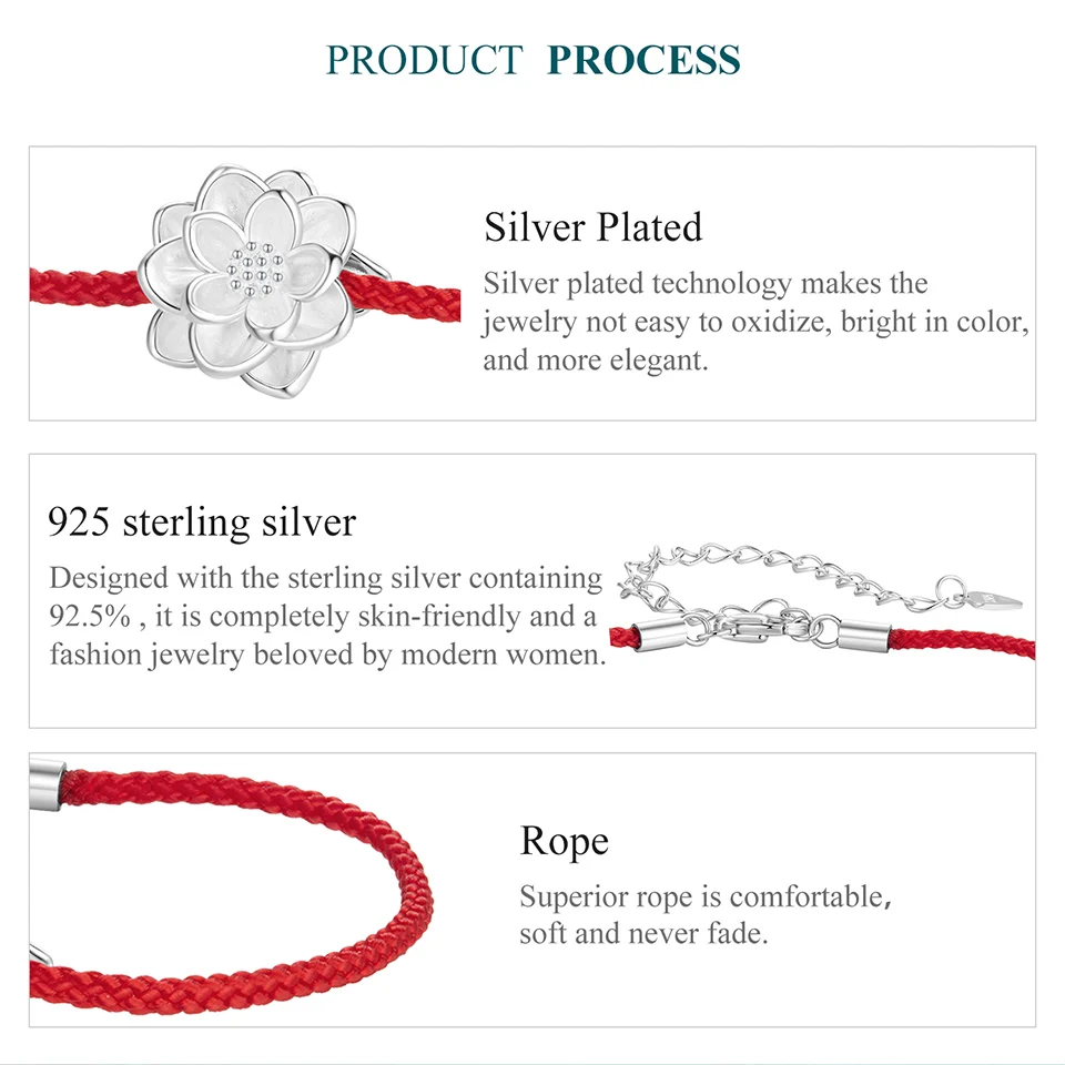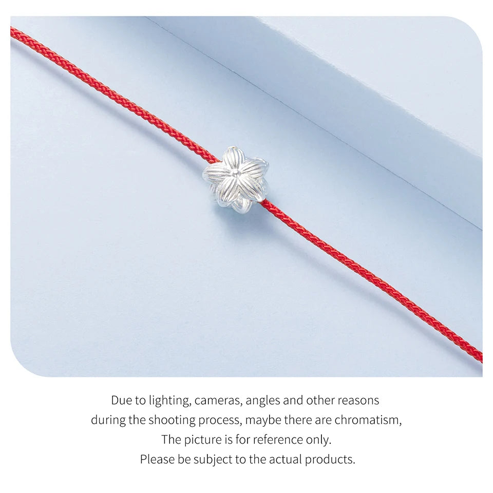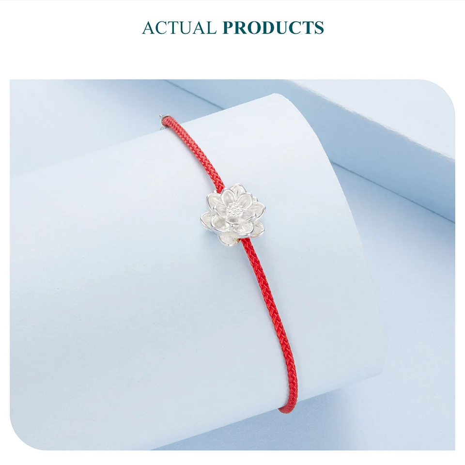 925 Sterling Silver Lotus Bracelet, White Gold Plated Dainty Red Rope Knotted Cotton Chain Bracelet for Women