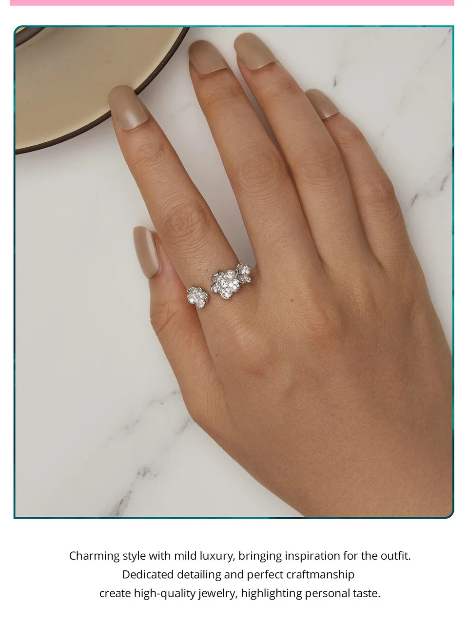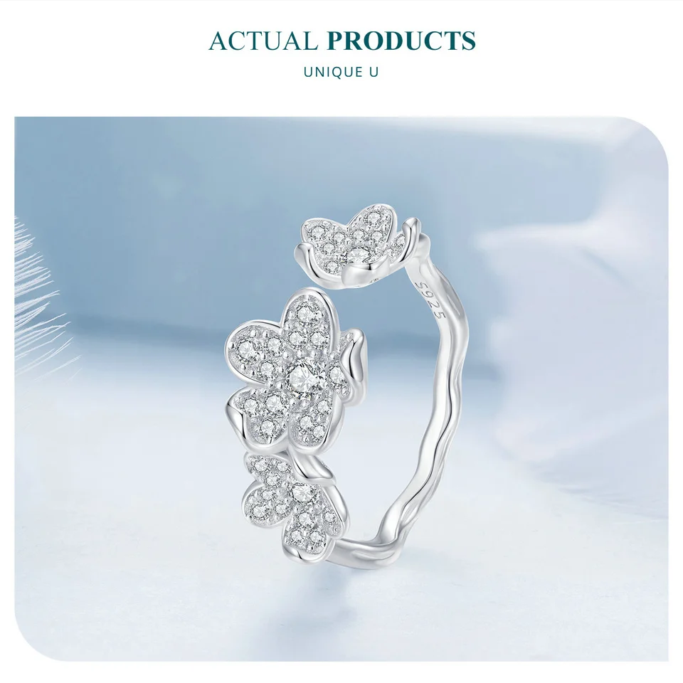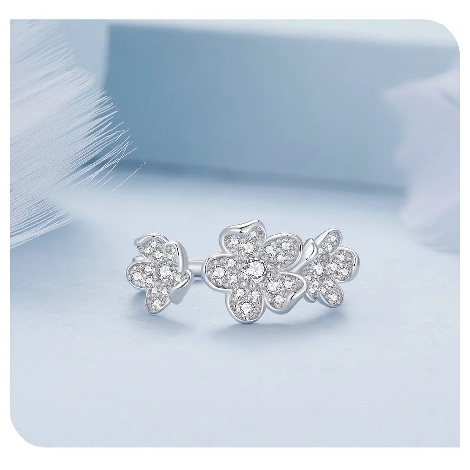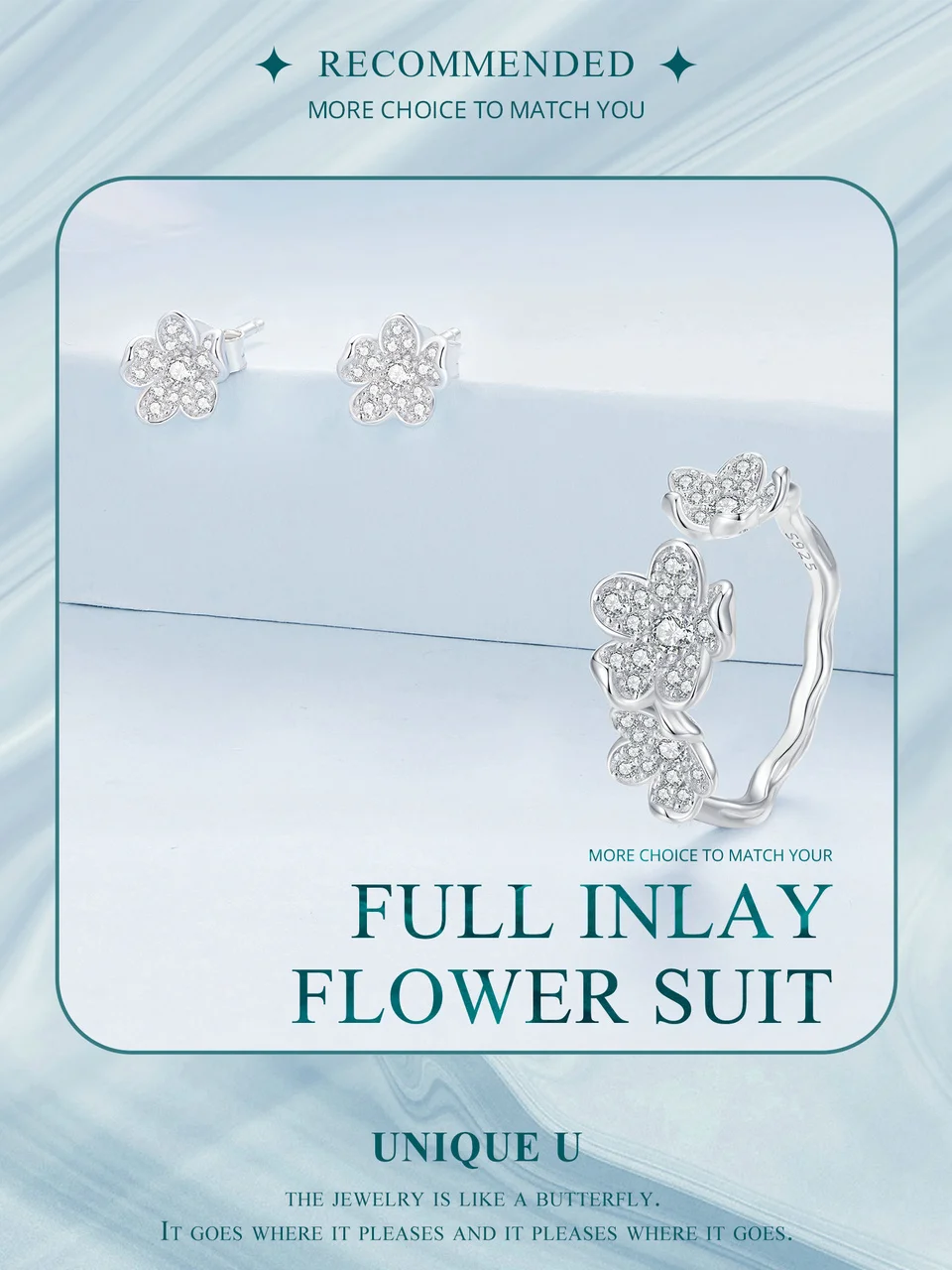 925 Sterling Silver Exquisite Flower Series Flower to Flower Ring & Earrings Jewelry for Women
