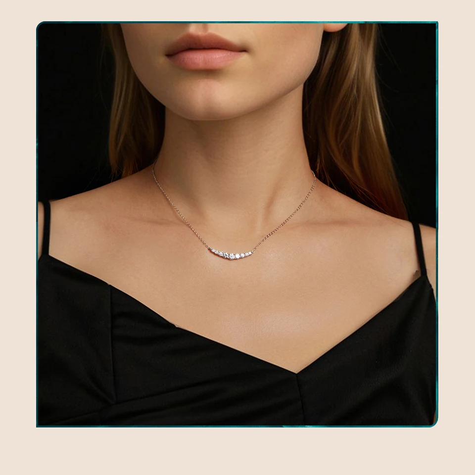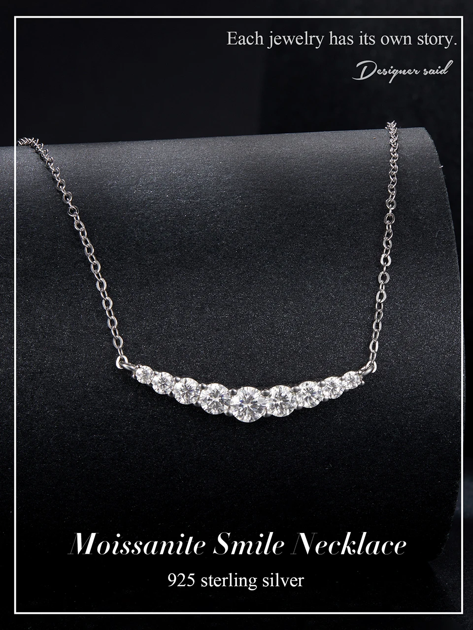 Moissanite Smile Necklace, Grown Diamond Gold Plated 43cm 925 Sterling Silver Necklaces