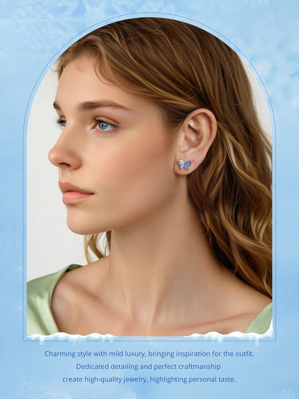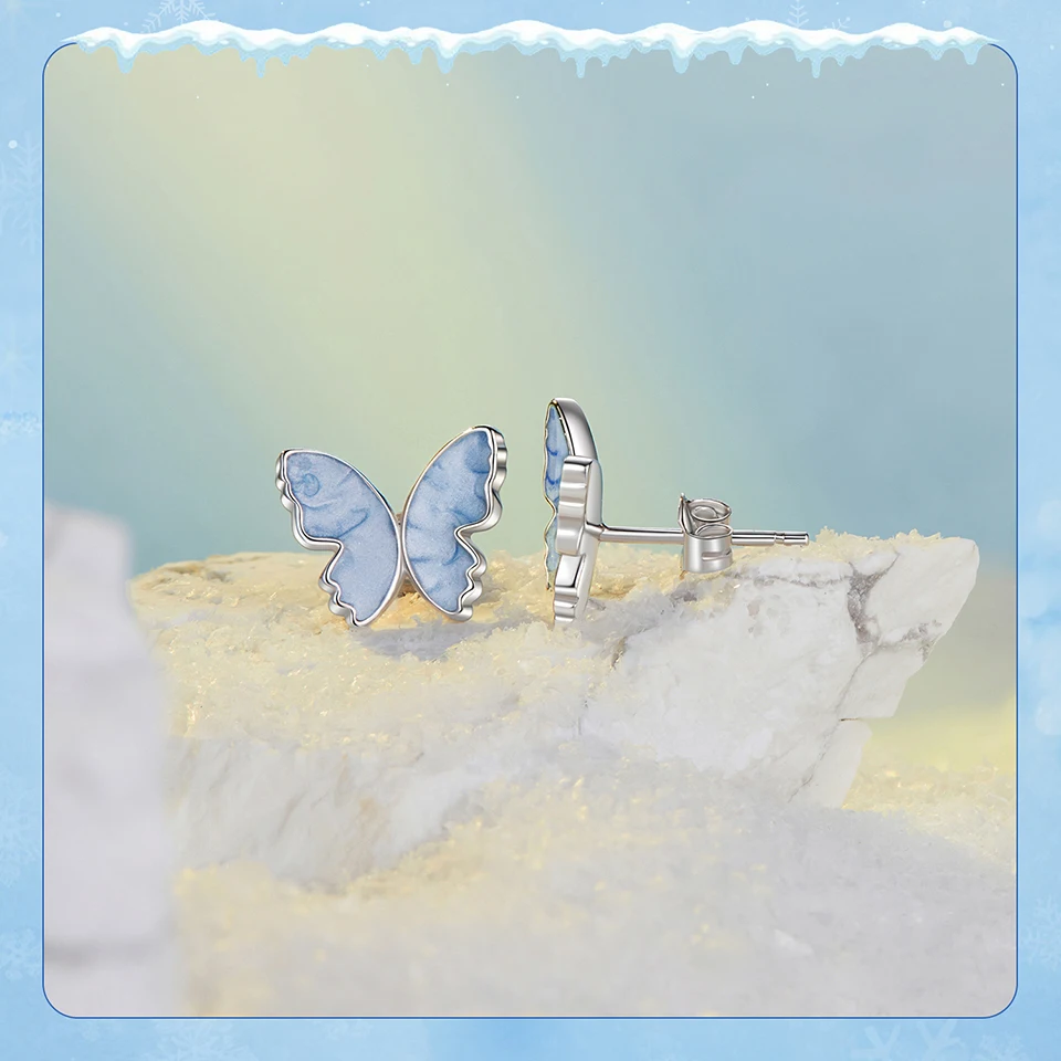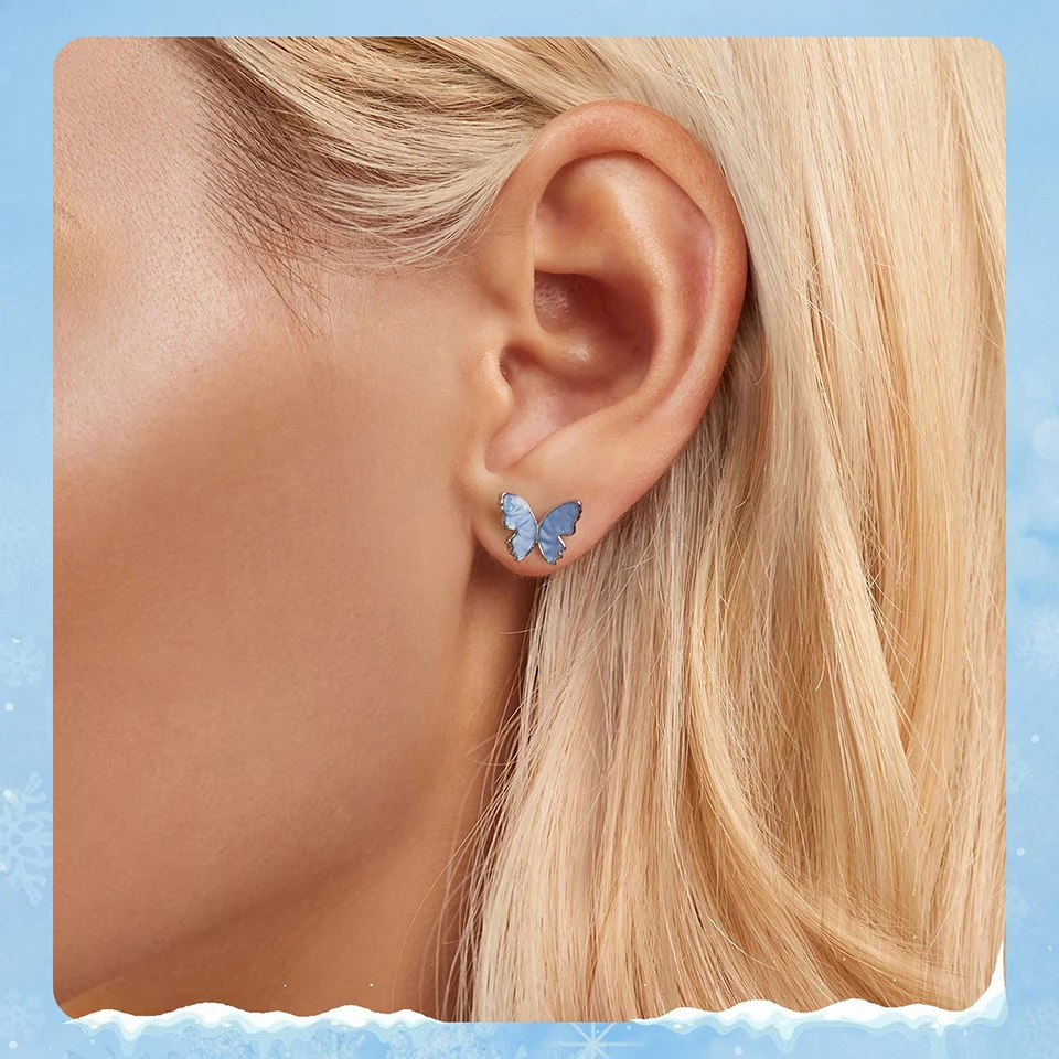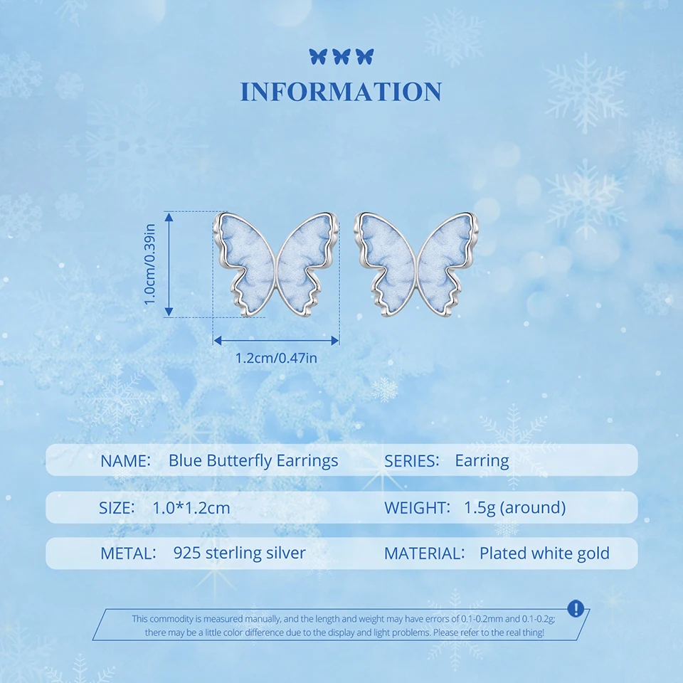 Authentic 925 Sterling Silver Blue Butterfly Stud Earrings
