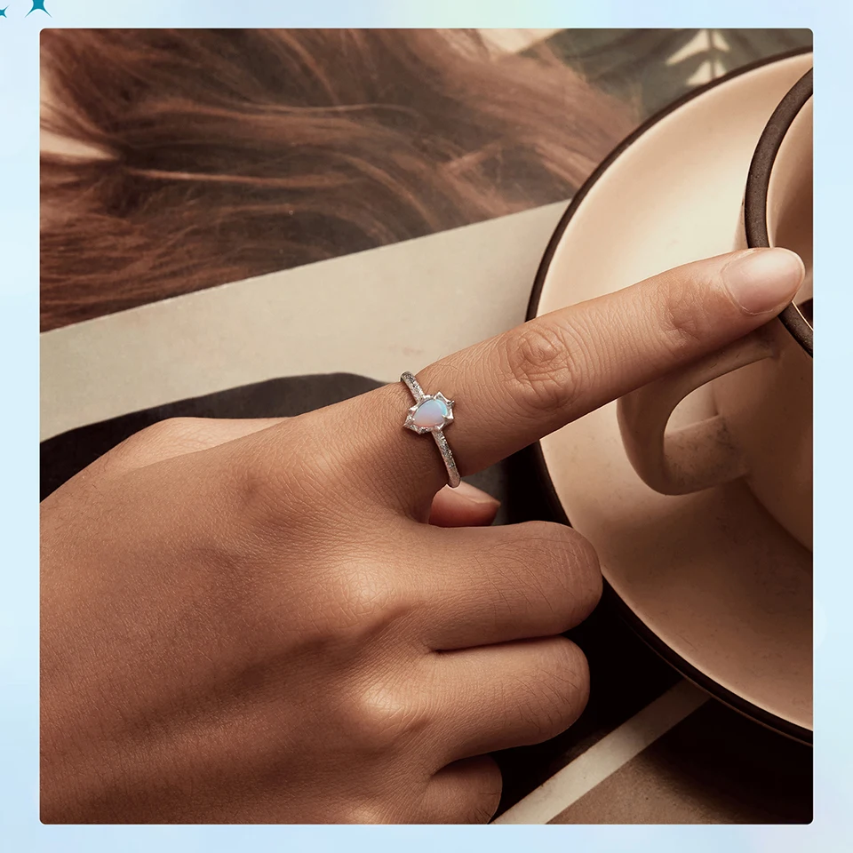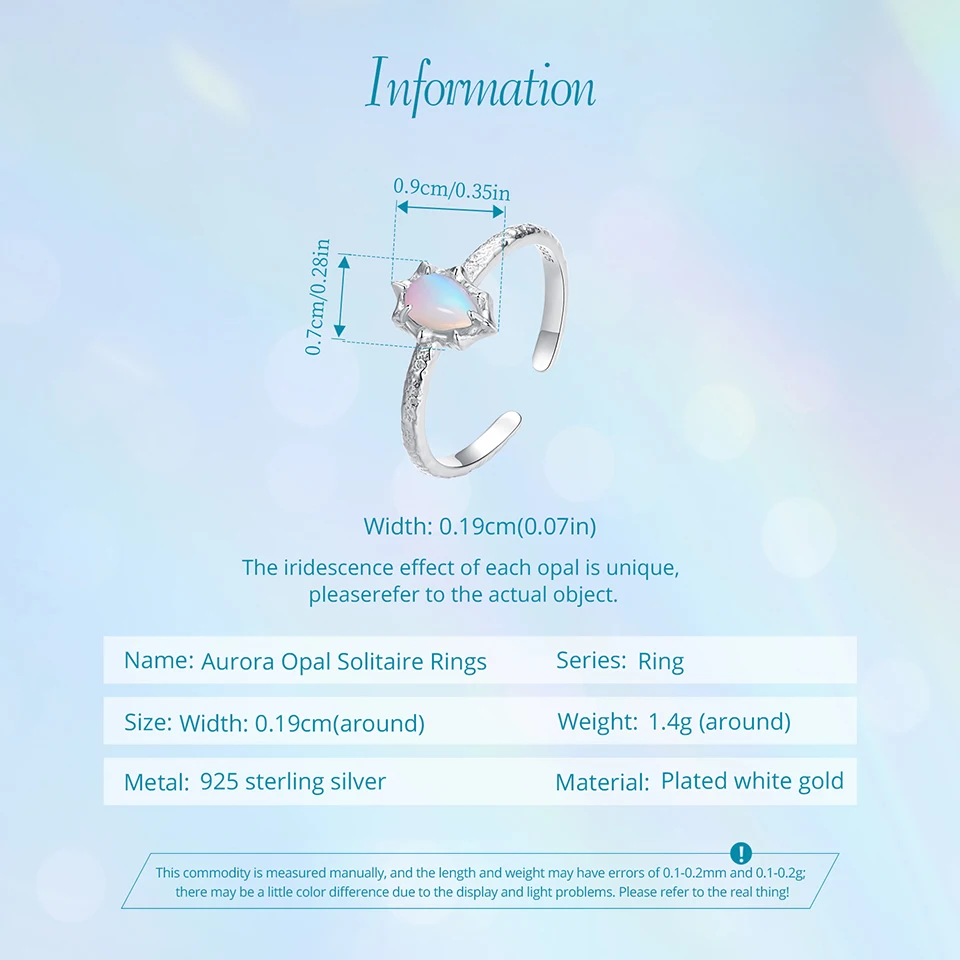925 Sterling Silver Aurora Opal Solitaire Ring, Gold Plated Adjustable