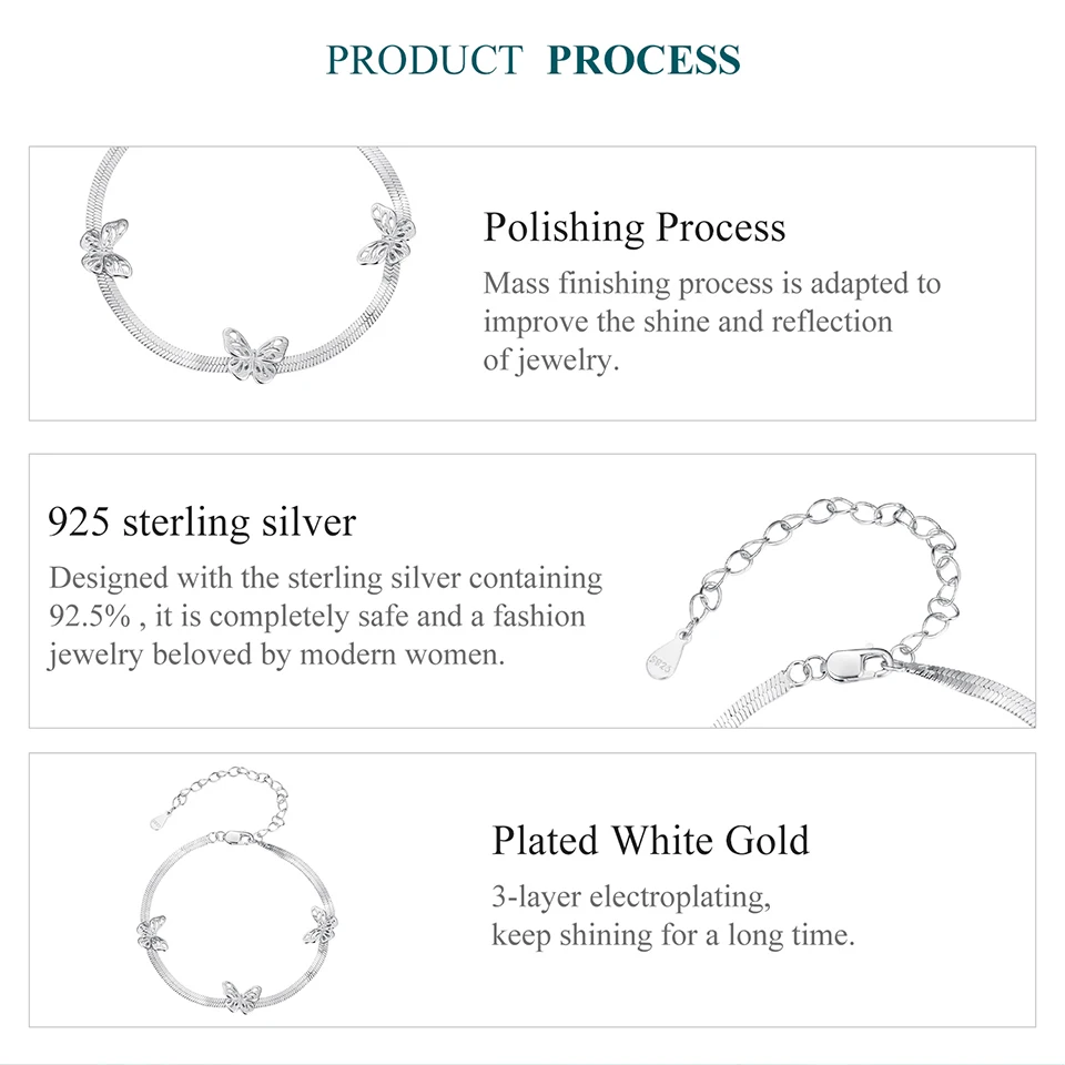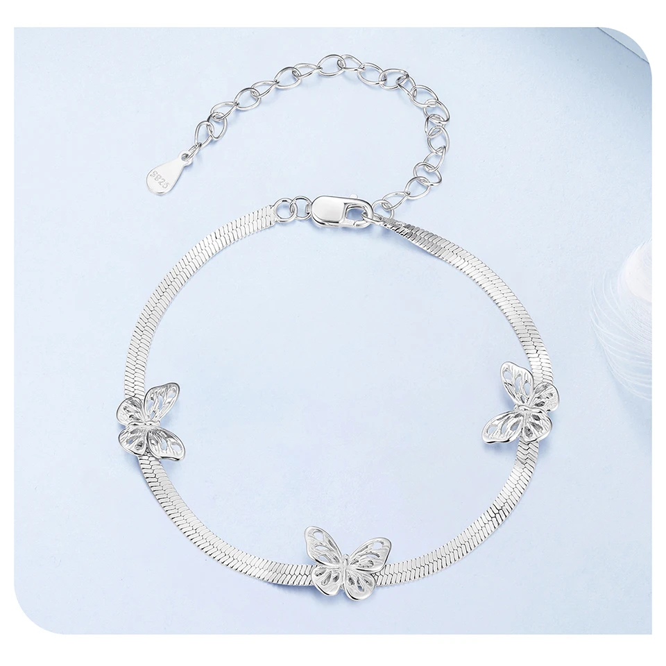 Hollow Butterfly Bracelets Wide Flat Snake Link Chain Charm Bangle Adjustable for Women Jewelry Gift 925 Sterling Silver
