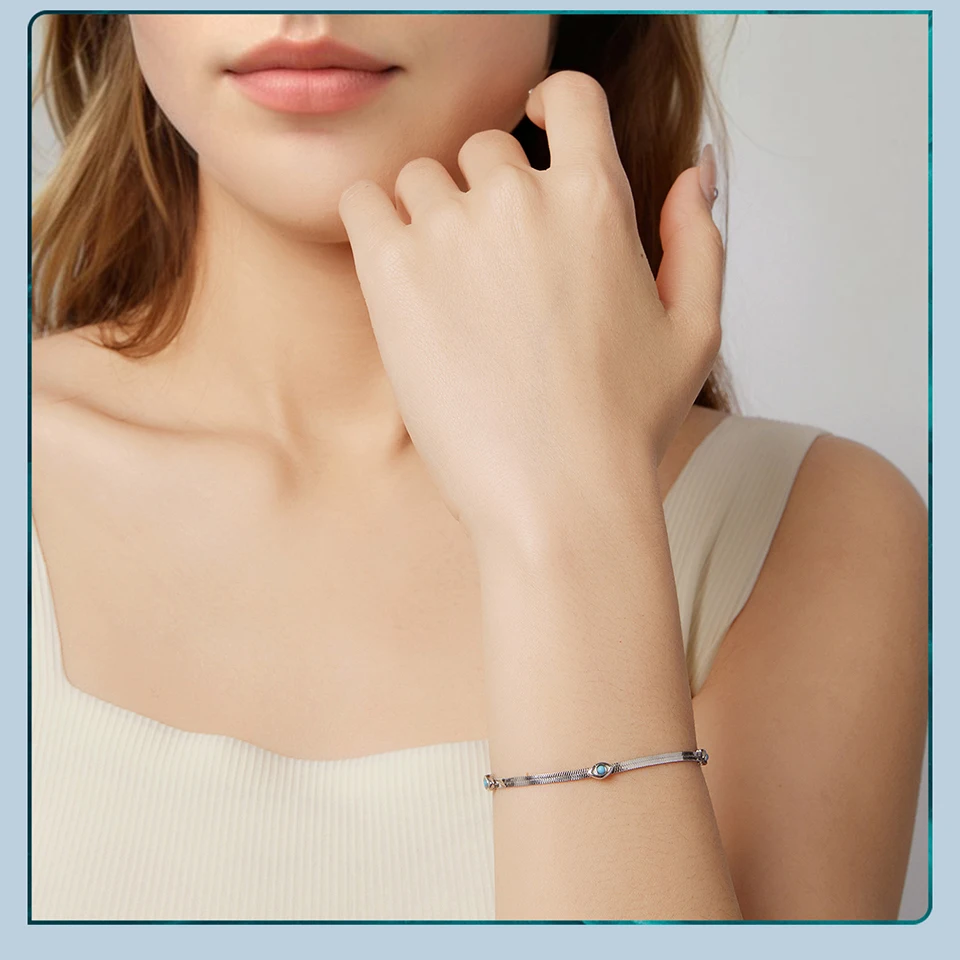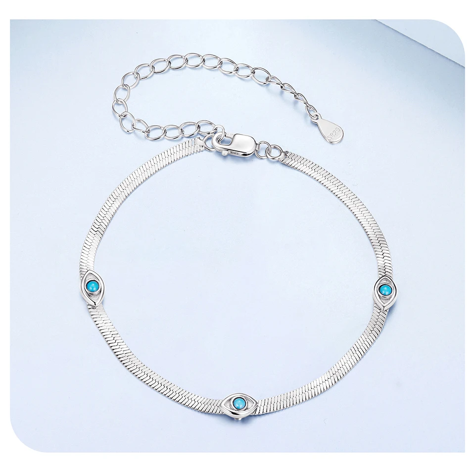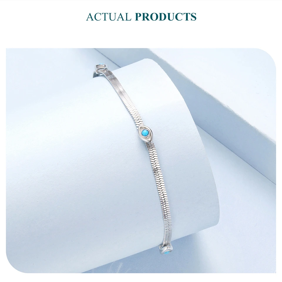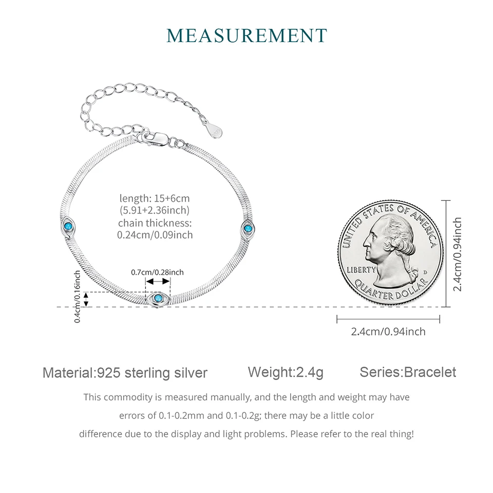 925 Sterling Silver Bracelets Wide Flat Snake Chain Turquoise Charm Bangle Adjustable for Women