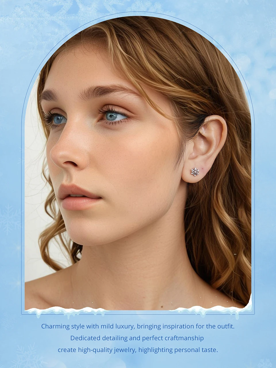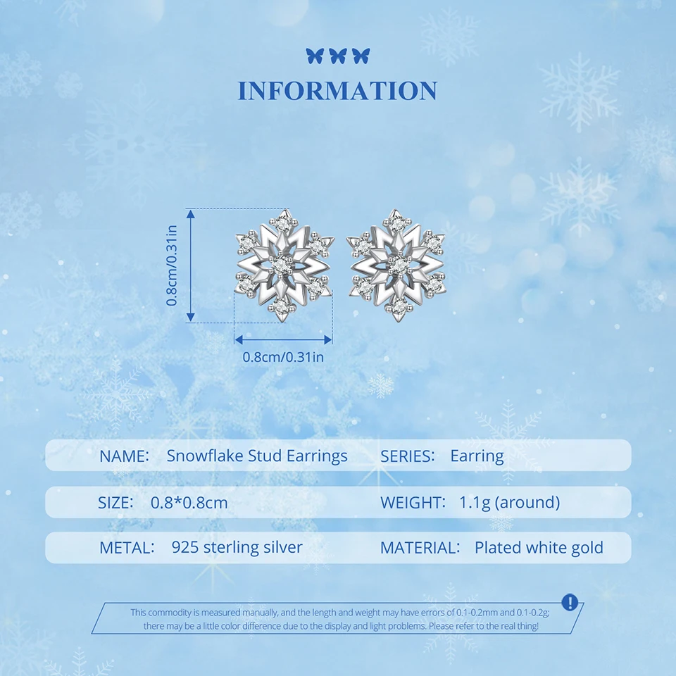Authentic 925 Sterling Silver Snowflake Stud Earrings