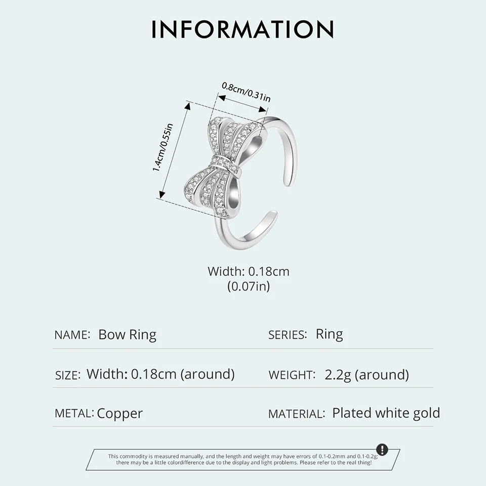White Gold Plated Bowknot Ring with Zircon, Adjustable Ring for Women