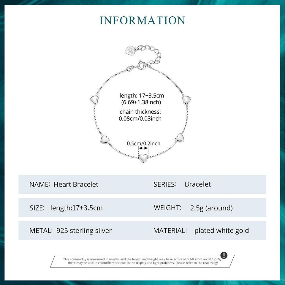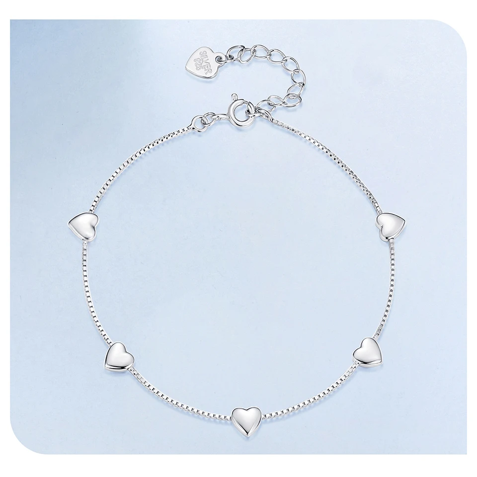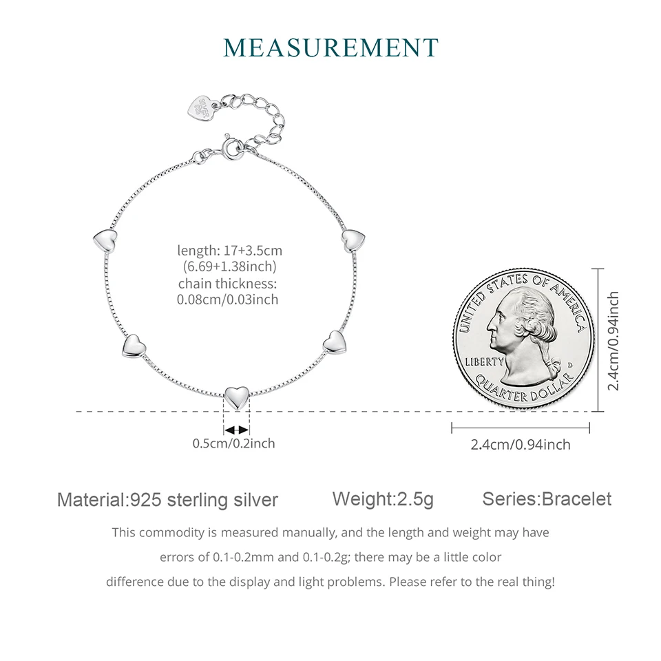 925 Sterling Silver Adjustable Heart Bracelet Dainty Box Chain Bracelet for Women