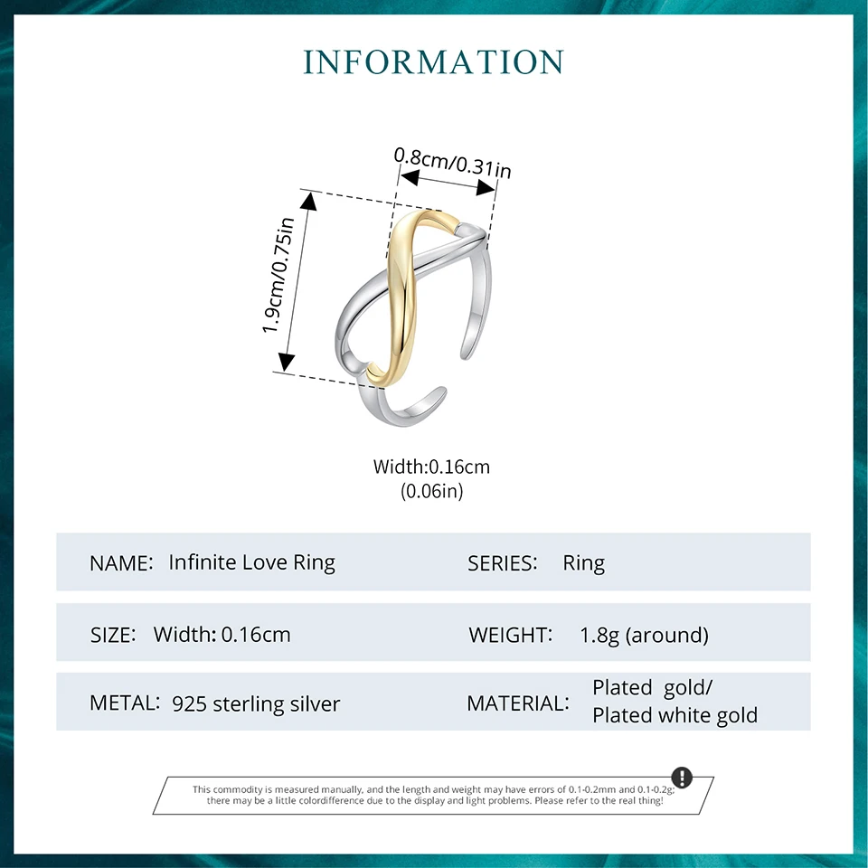 925 Sterling Silver Two-Tone Infinite Love Adjustable Ring
