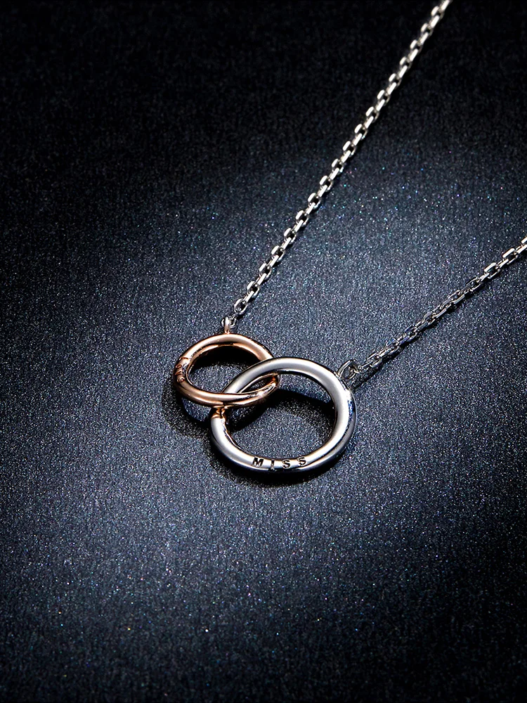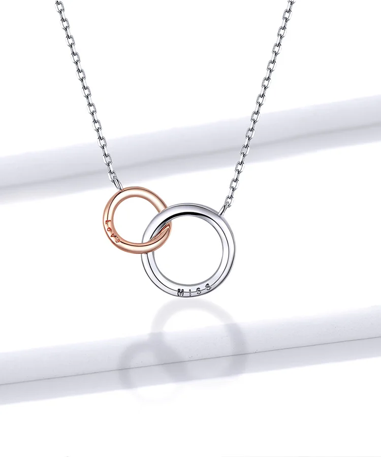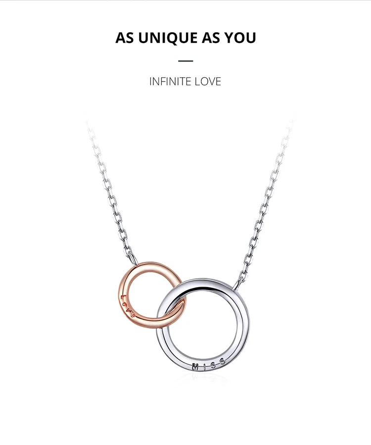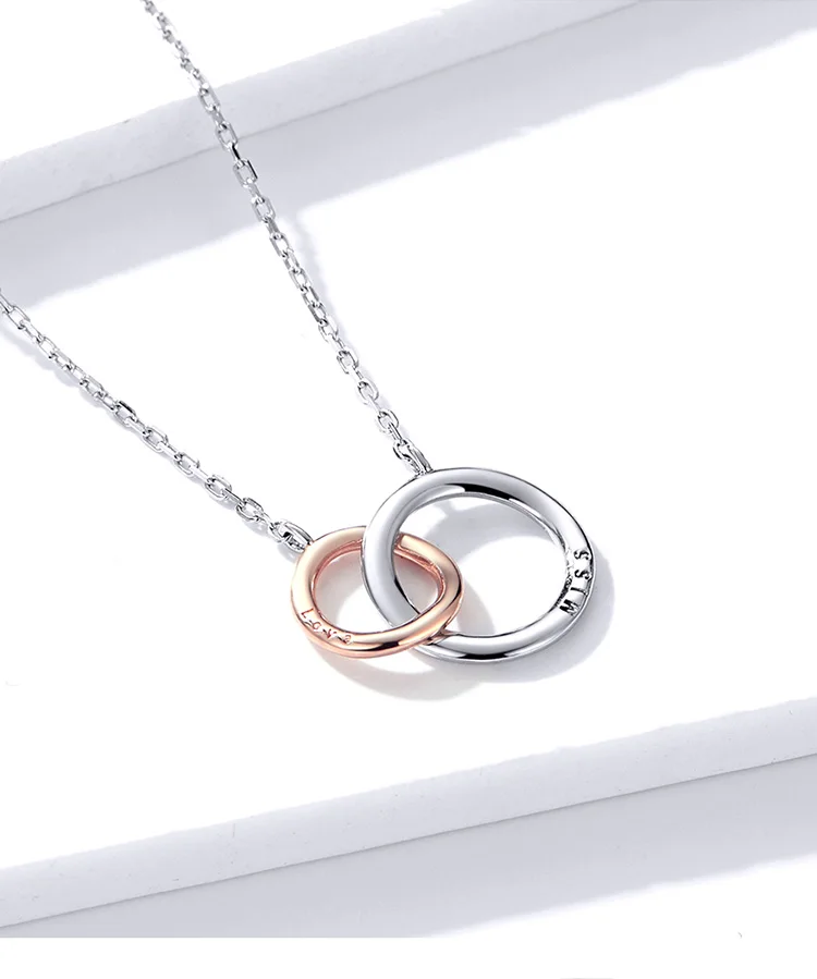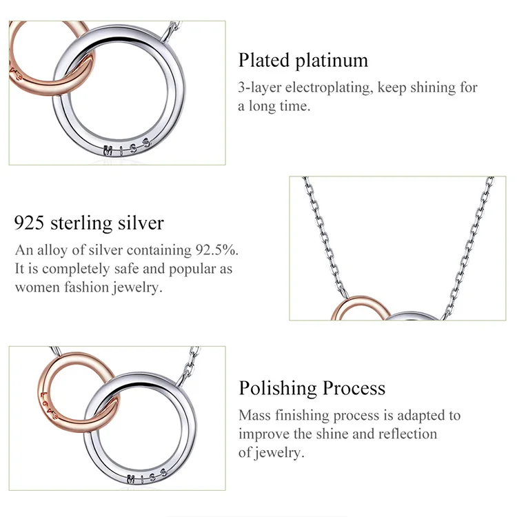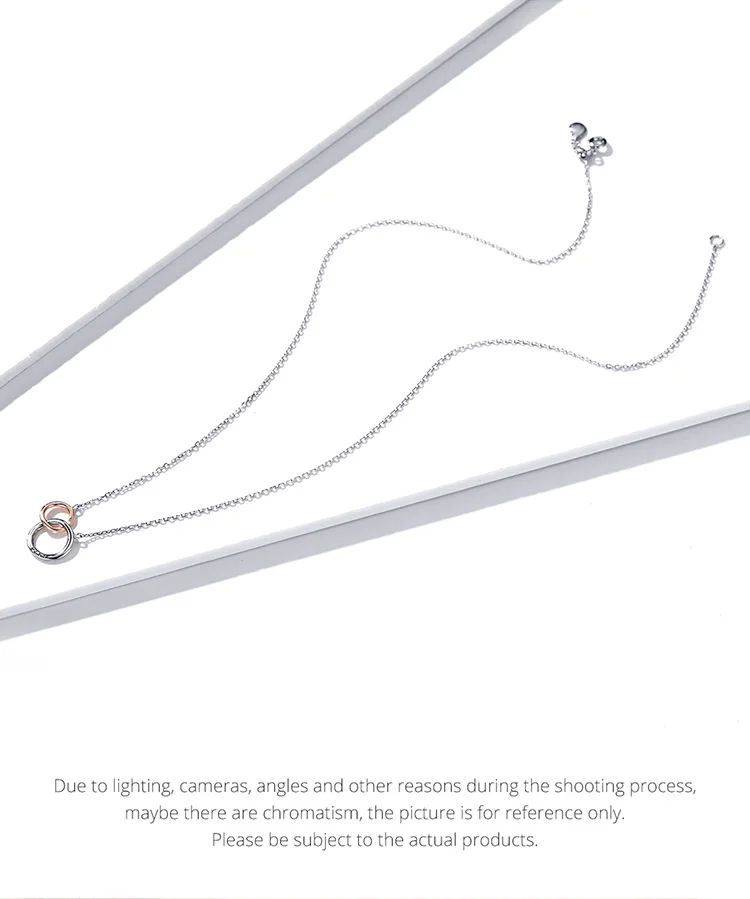 Double Circle Chain Necklace for Women Rose Gold Color 925 Sterling Silver