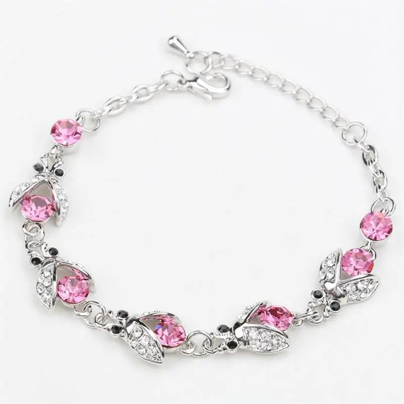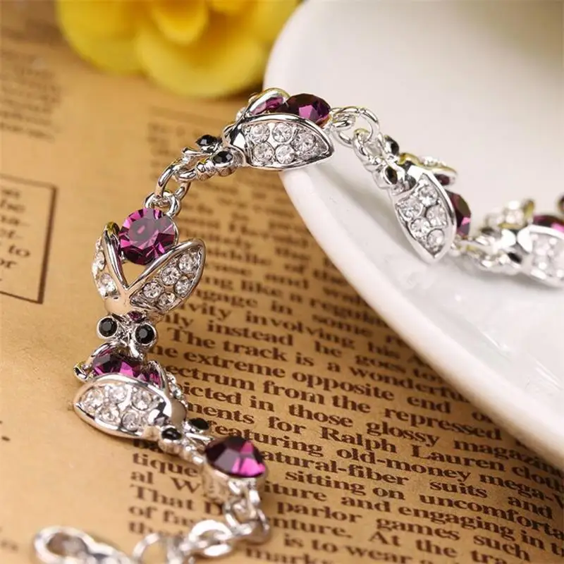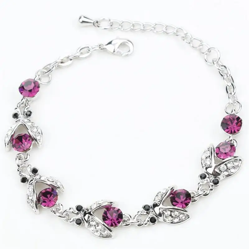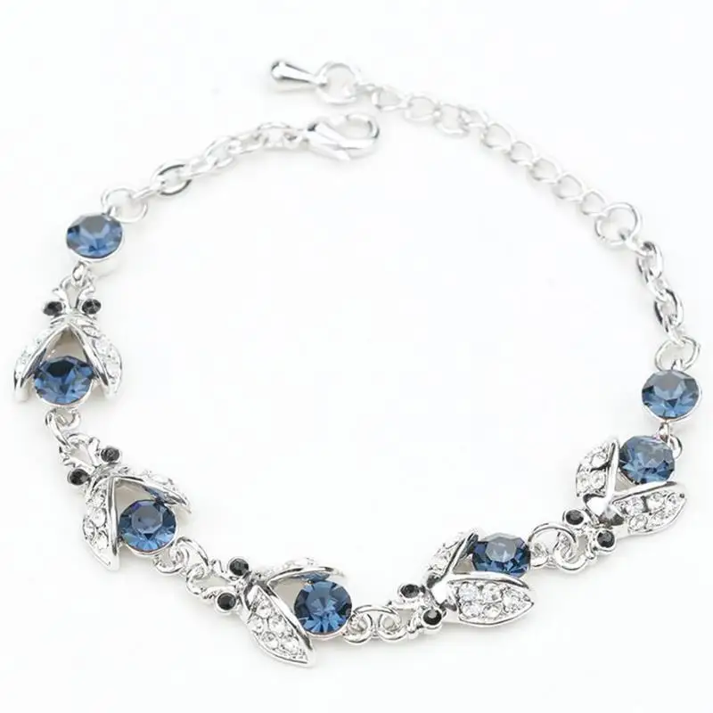 Popular Genuine 925 Sterling Silver Beetle Inspect Women Dazzling Crystal Bracelet