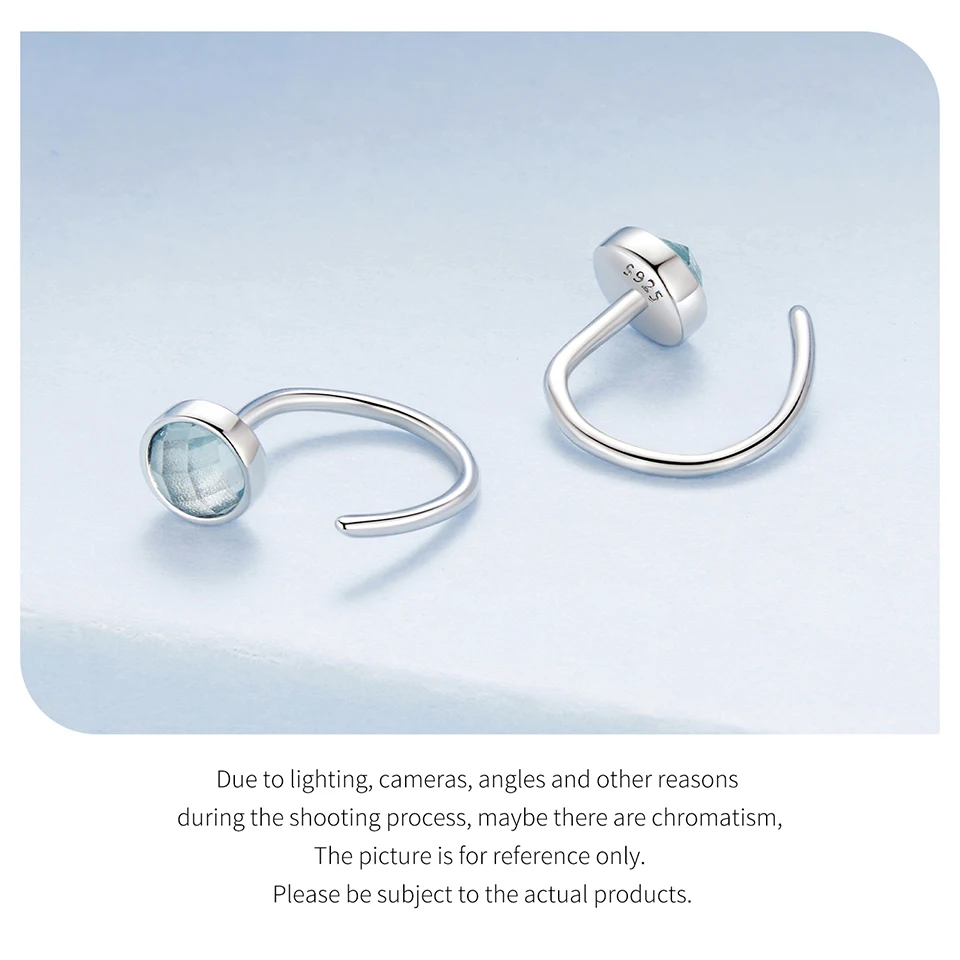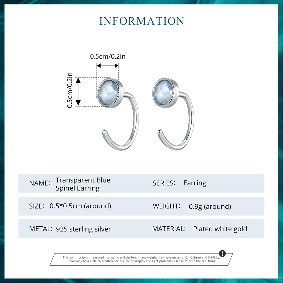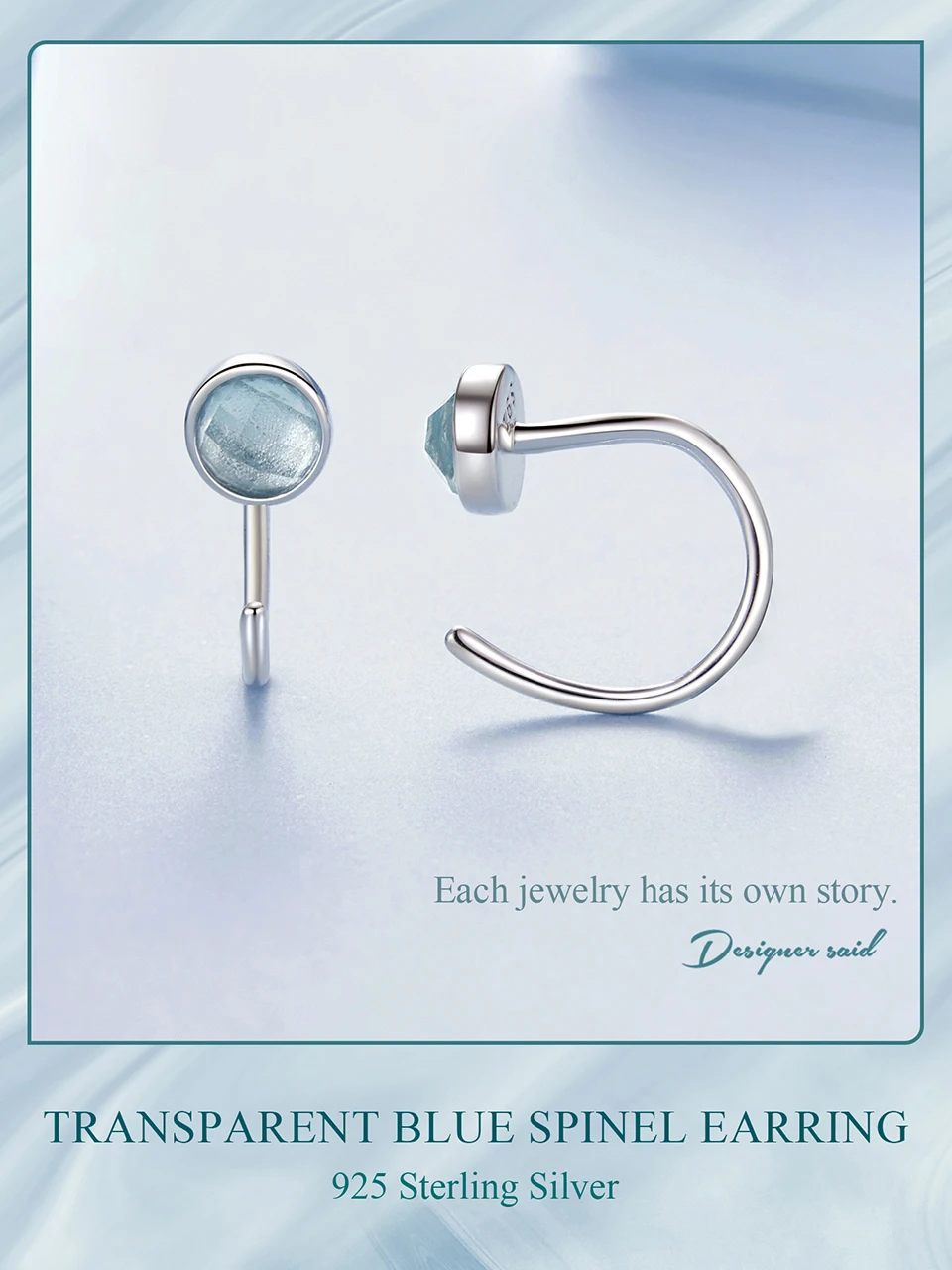 Solid 925 Sterling Silver Transparent Blue Spinel Stud Earrings
