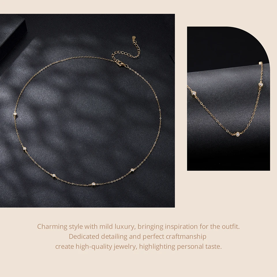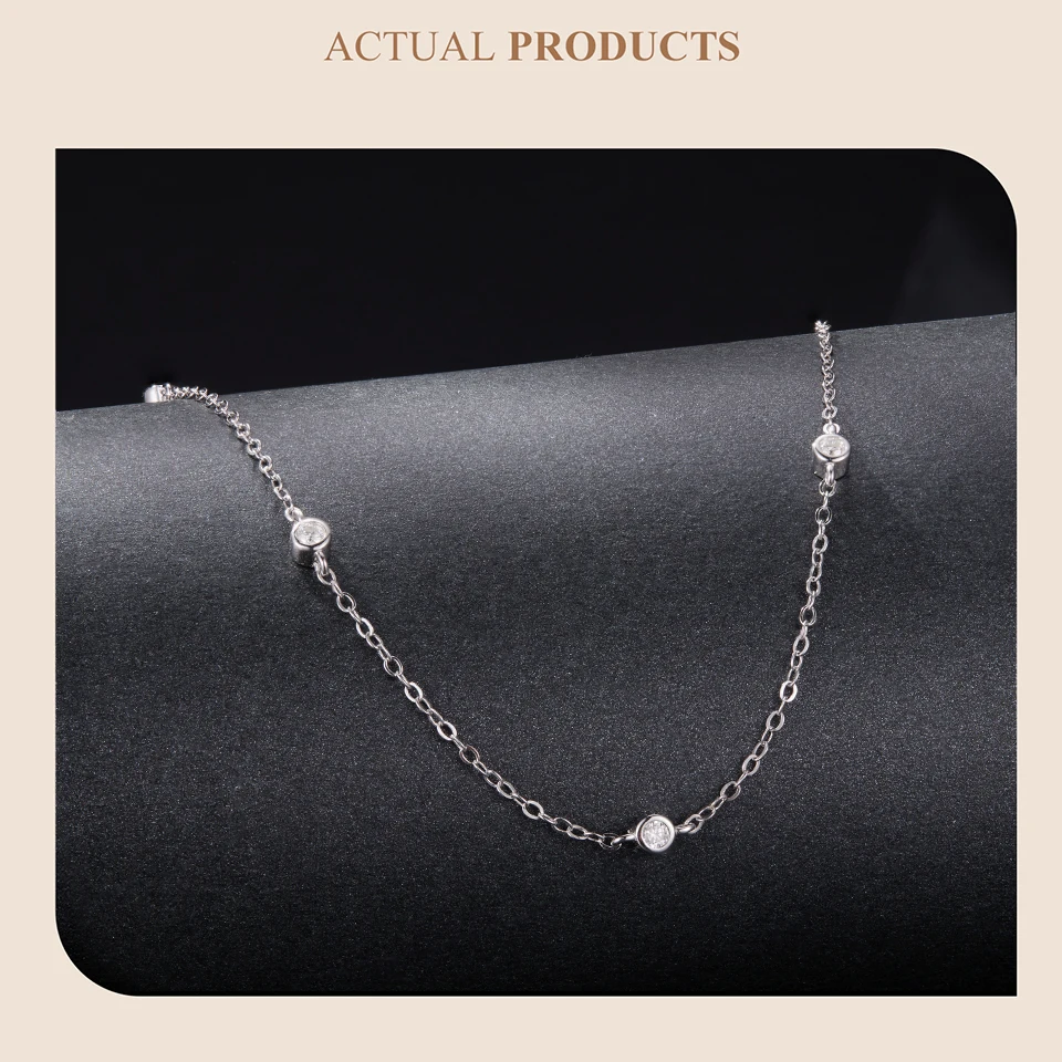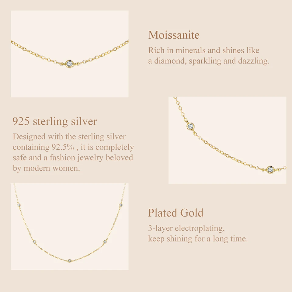 925 Sterling Silver Moissanite Layering Necklace, Gold Plated Adjustable Link Chain Necklace for Women