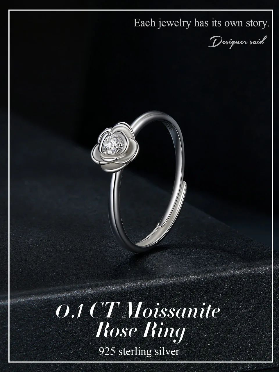 Flower Moissanite Engagement Rings for Women, 925 Sterling Silver