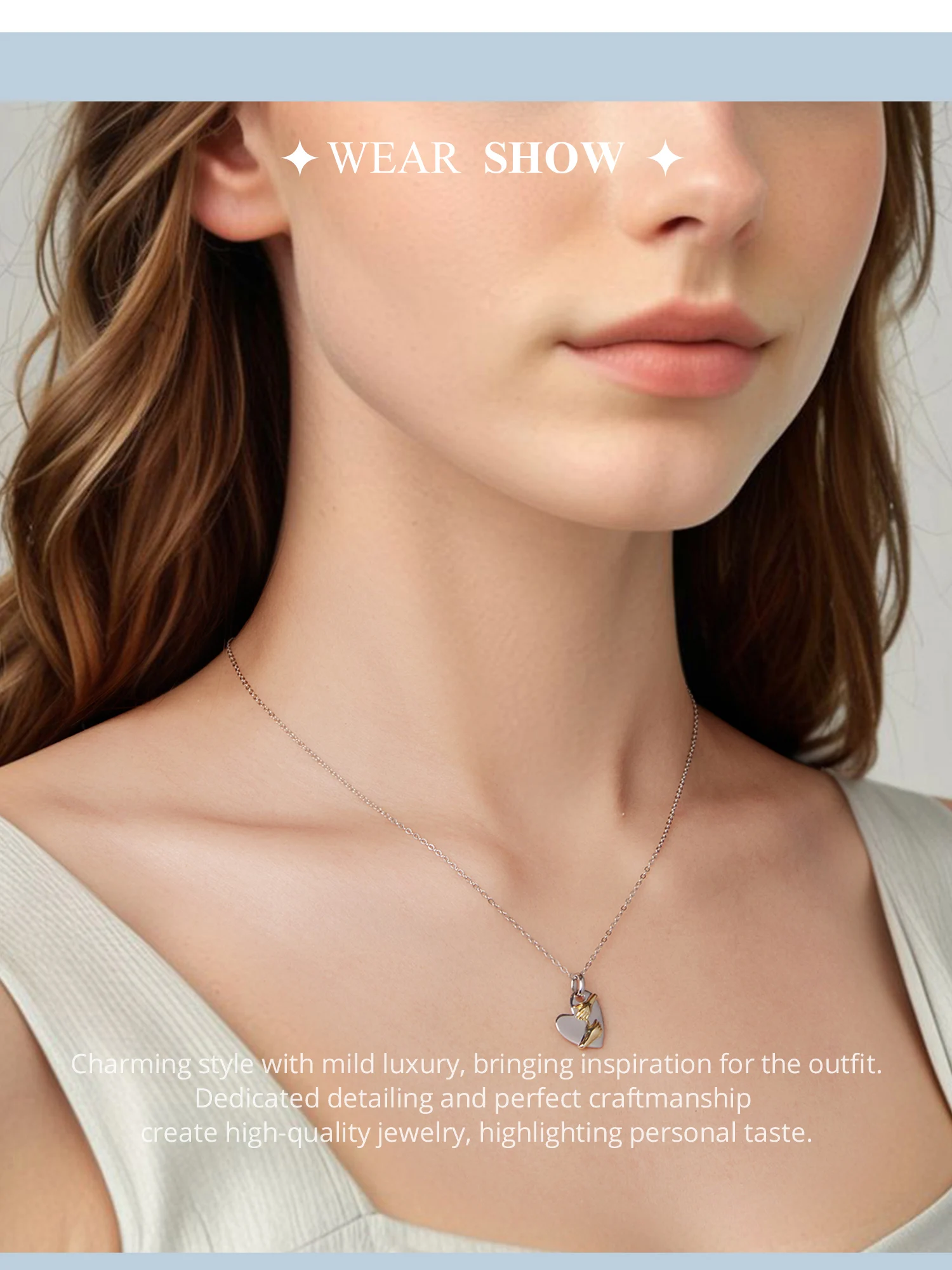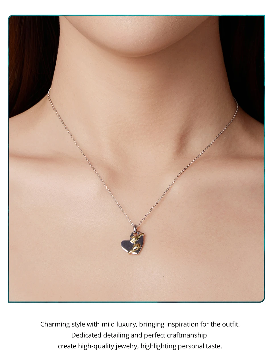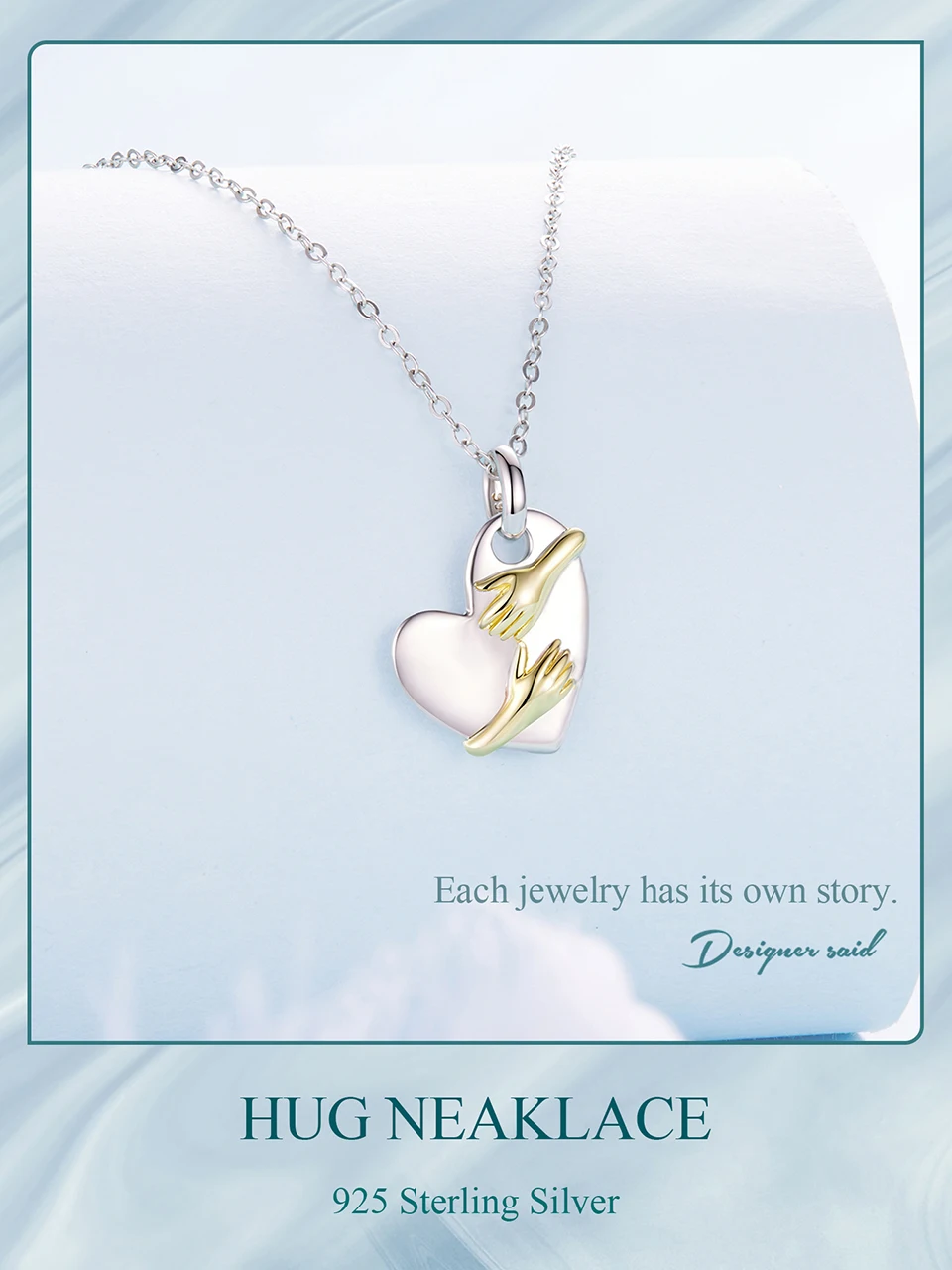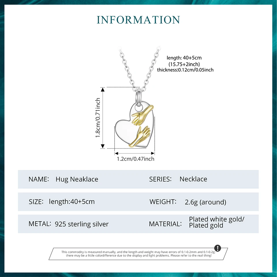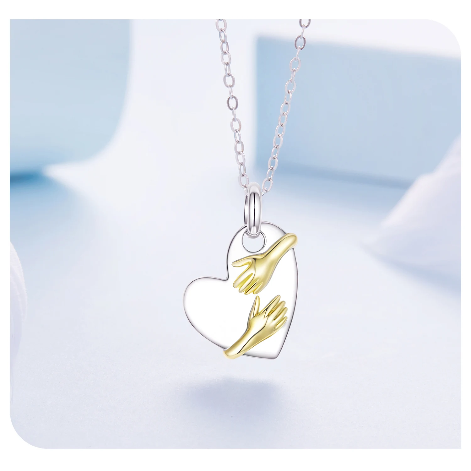 925 Sterling Silver Two-tones Hug Necklace Heart Pendant Chain Necklace for Women