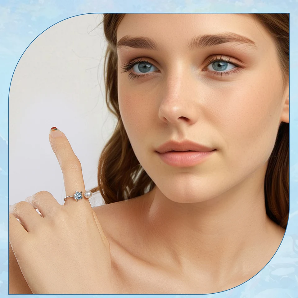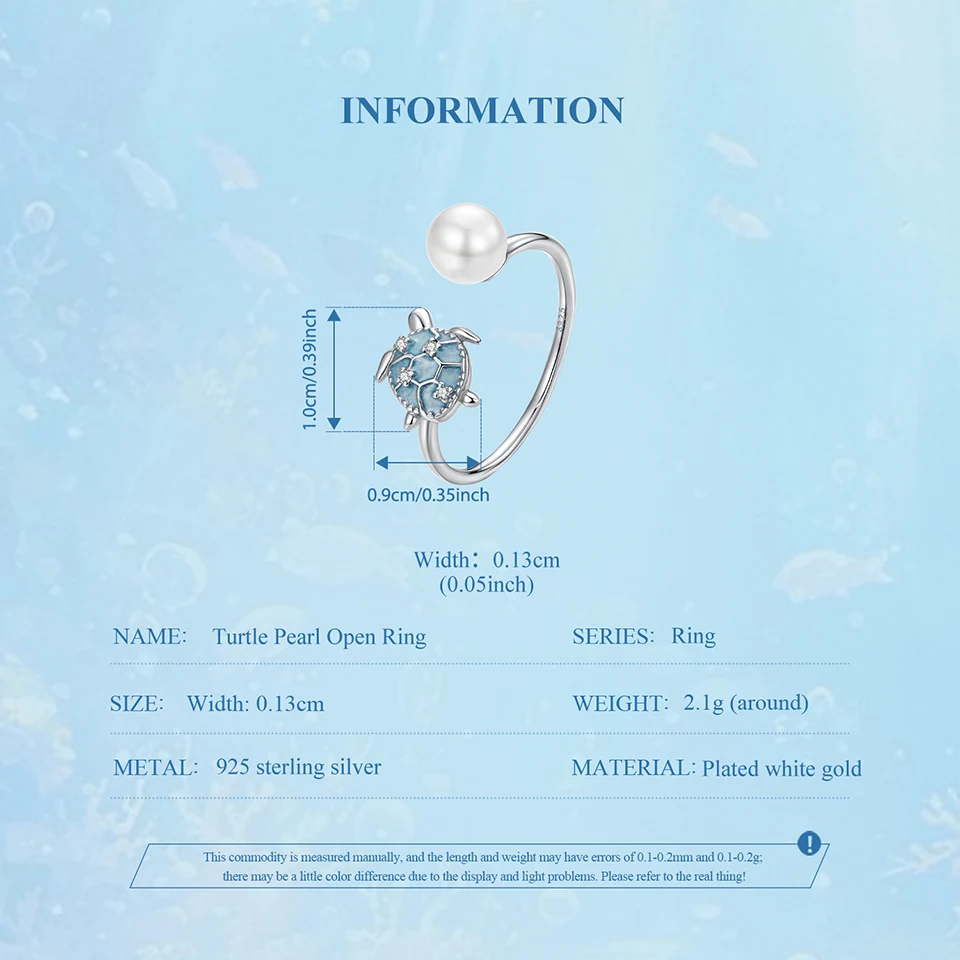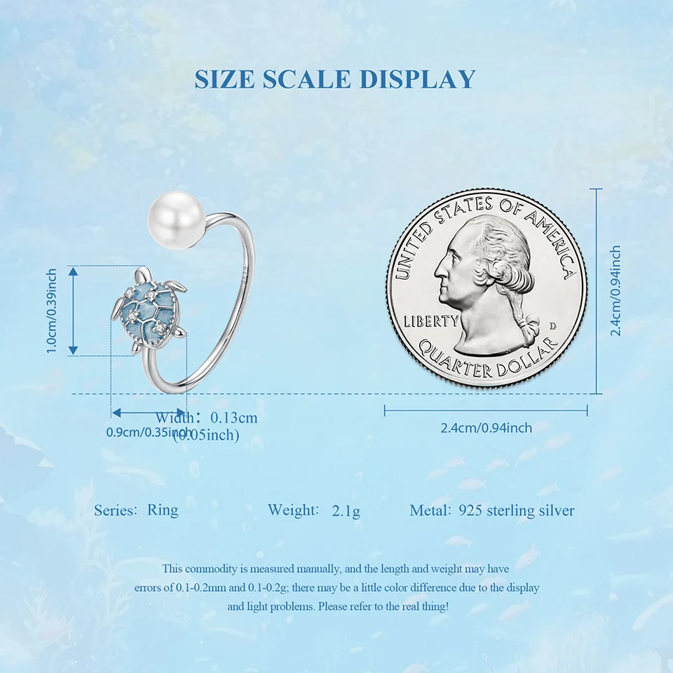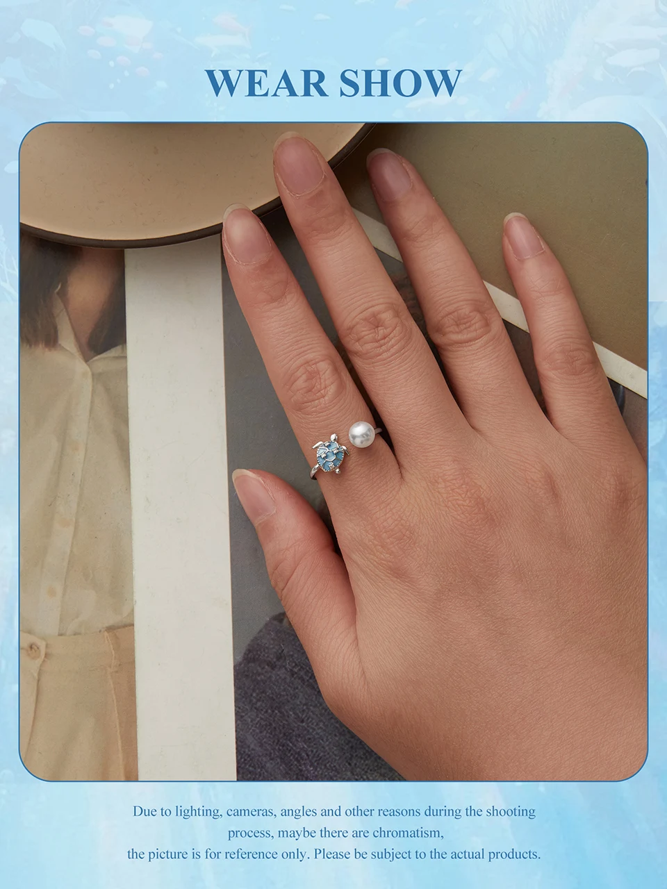 Solid 925 Sterling Silver Turtle Pearl Ring Stacking Finger Ring