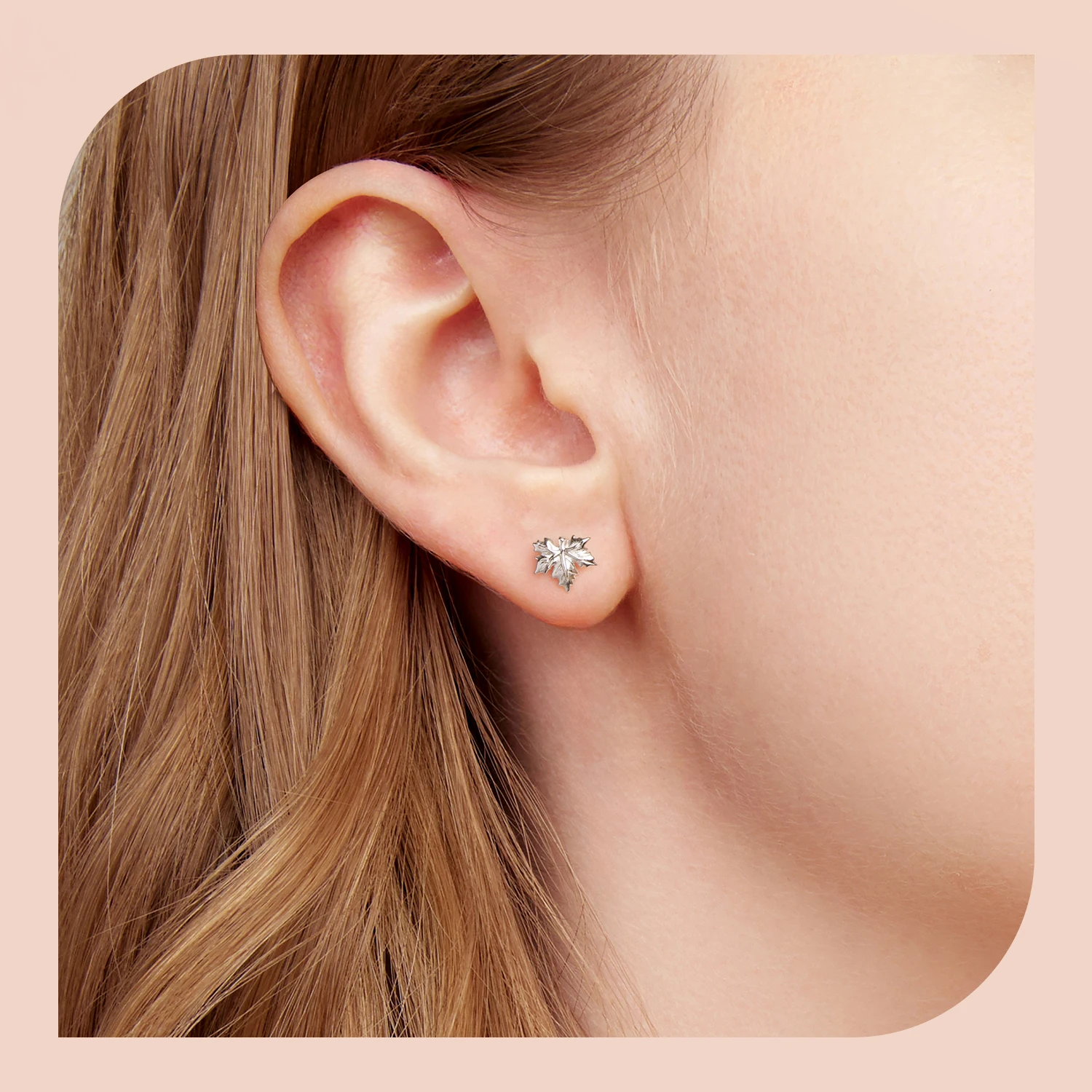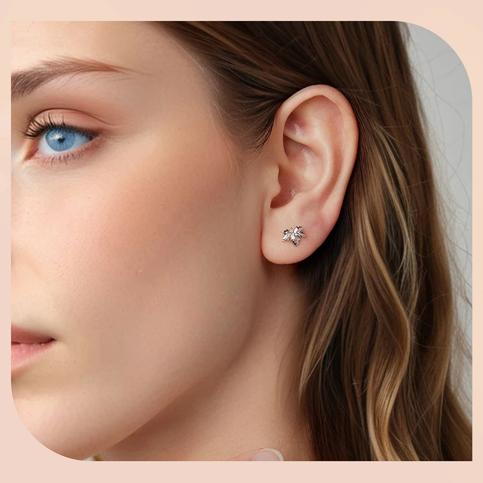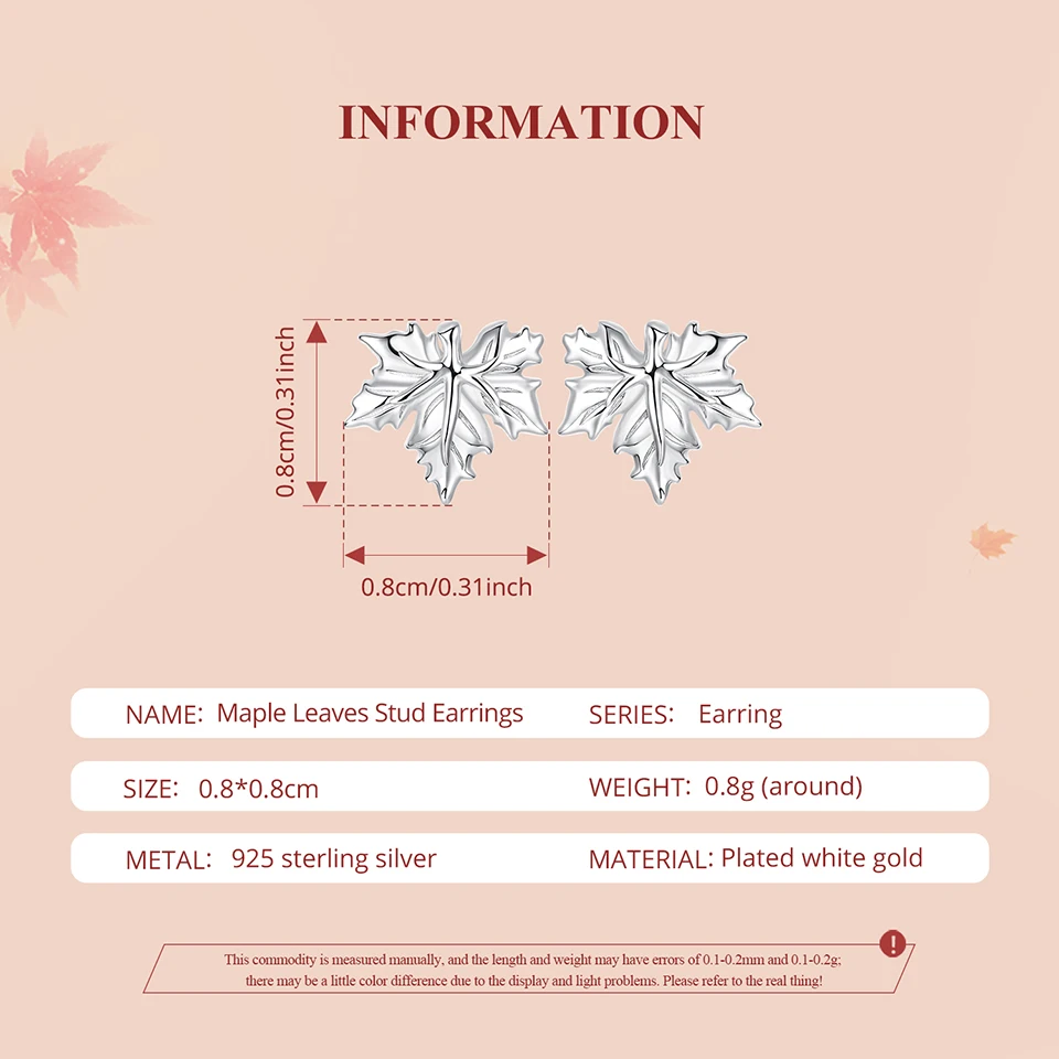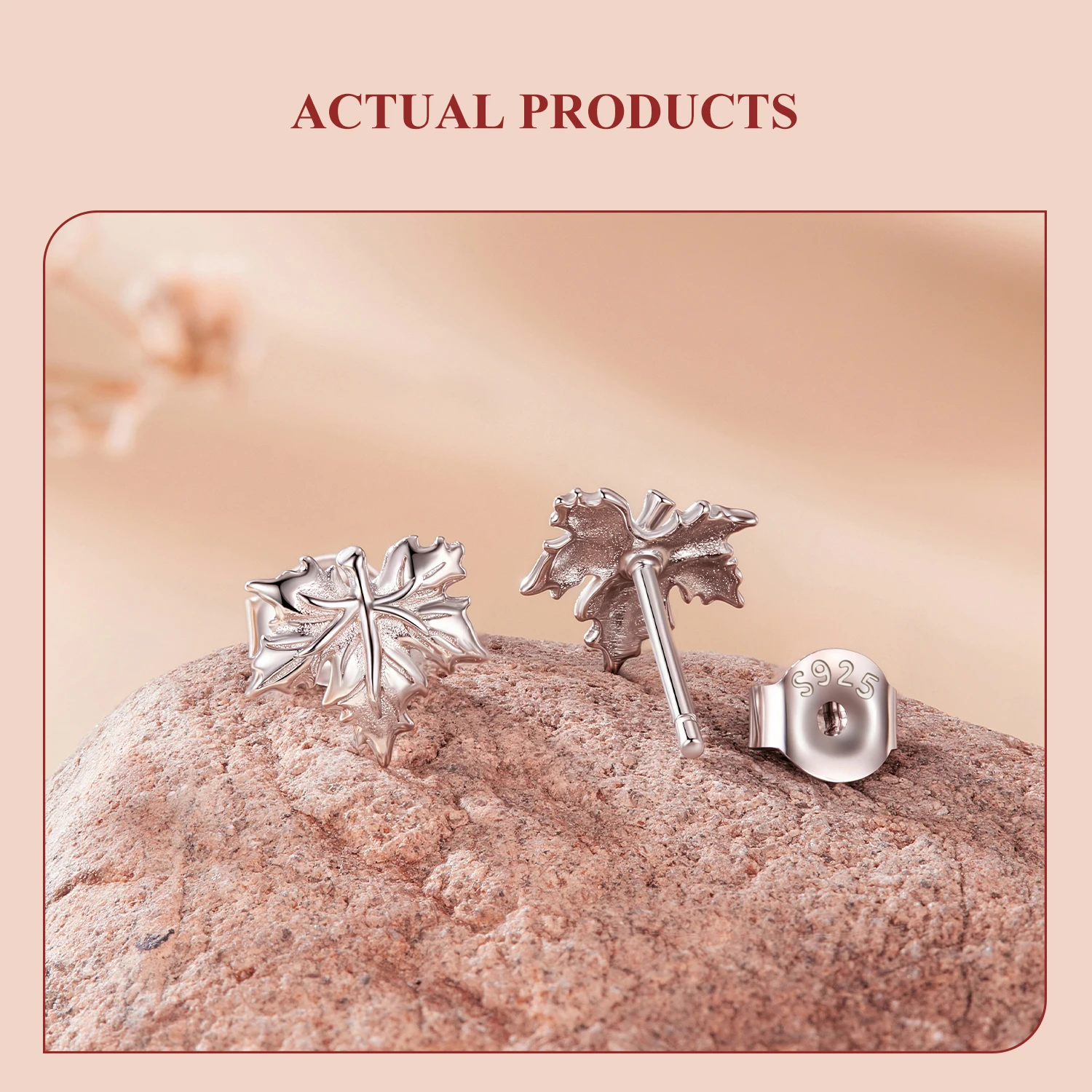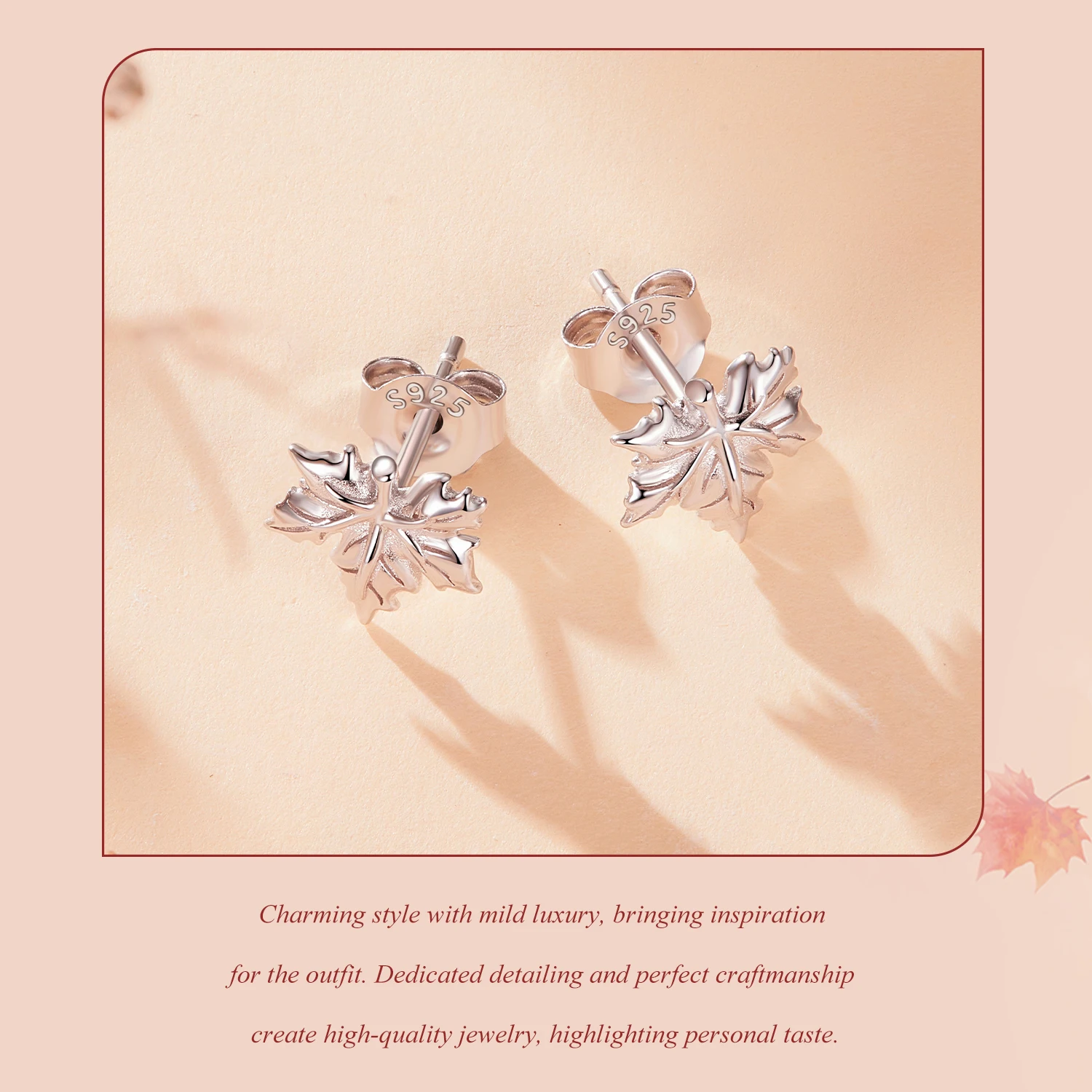 925 Sterling Silver Falling Maple Leaves Stud Earrings For Women , Autumn Themed Flower