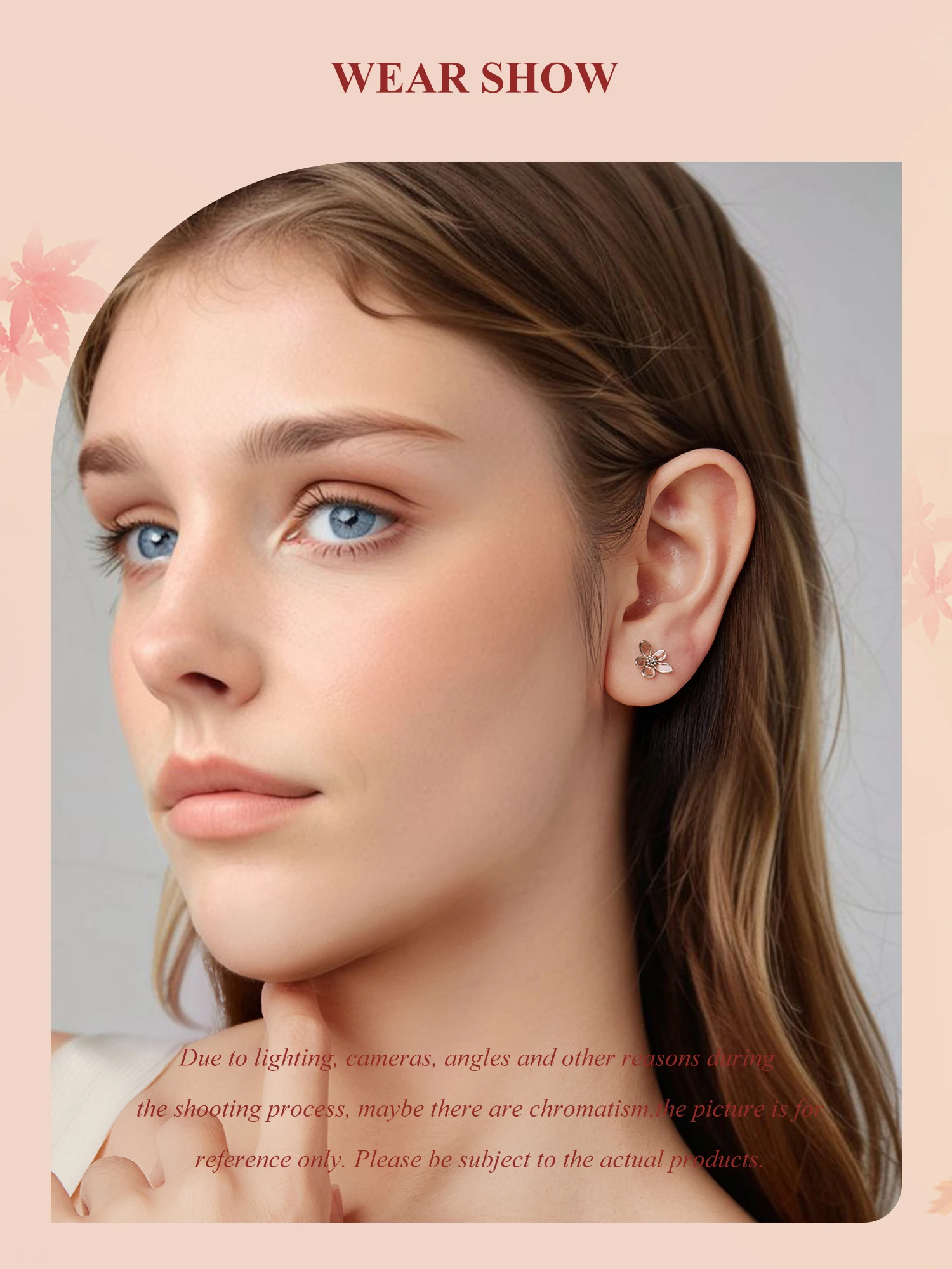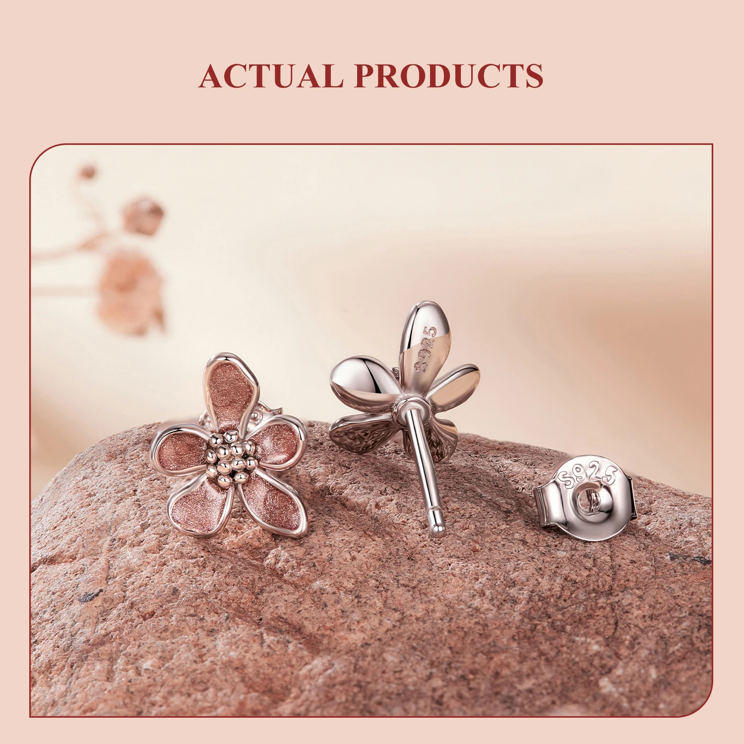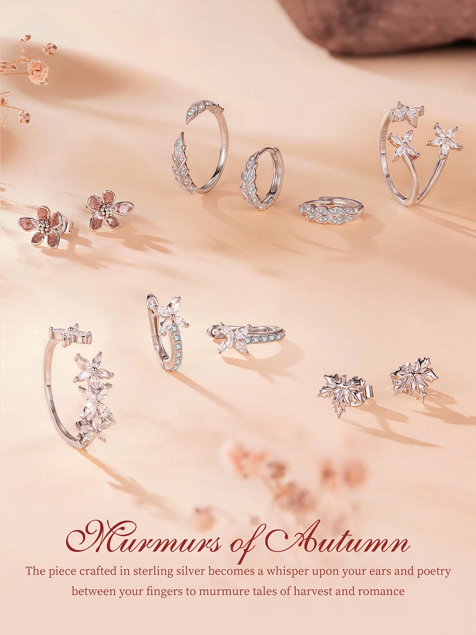 925 Sterling Silver Autumn Flowers Stud Earrings with Zircon Buds Blooming Statement Earrings for Women Teens Decor Gift
