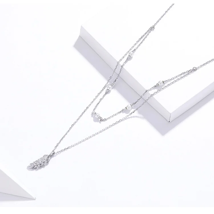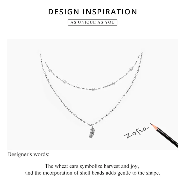 Sterling Silver 925 Shiny Wheat Ears Pendant Necklace for Women Chain Necklaces Plated platinum women Jewelry
