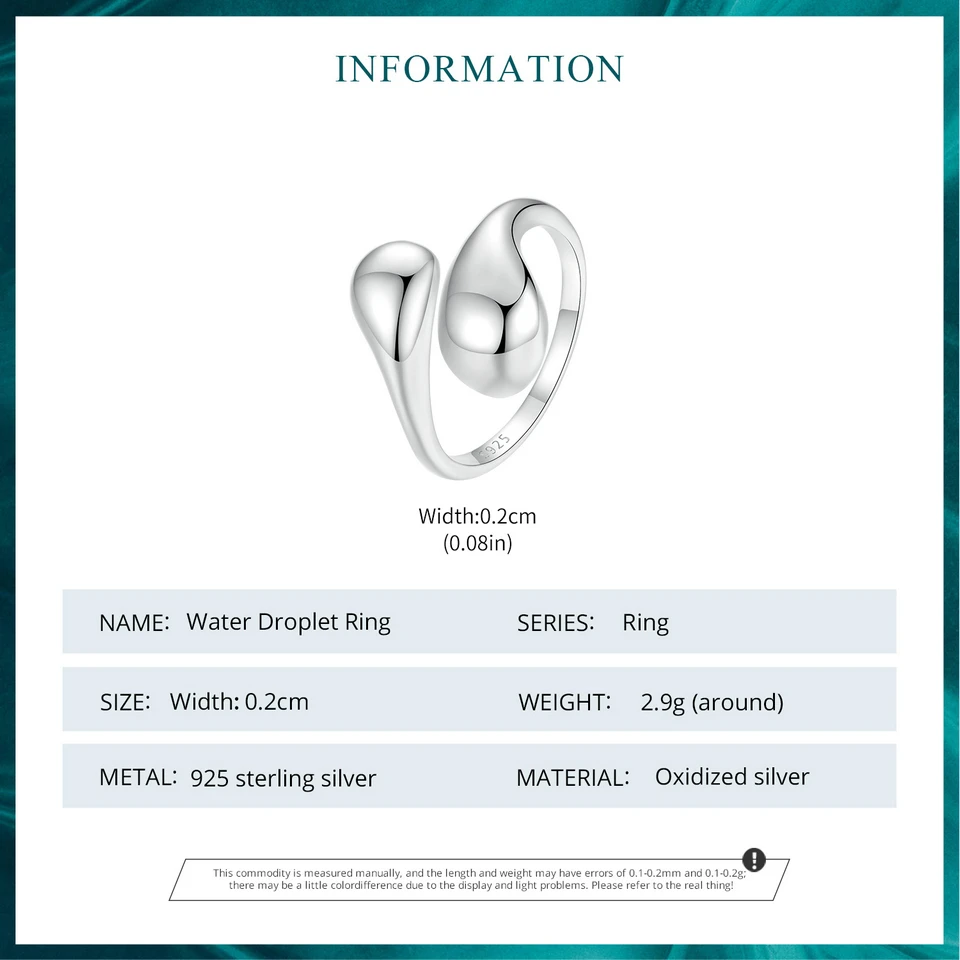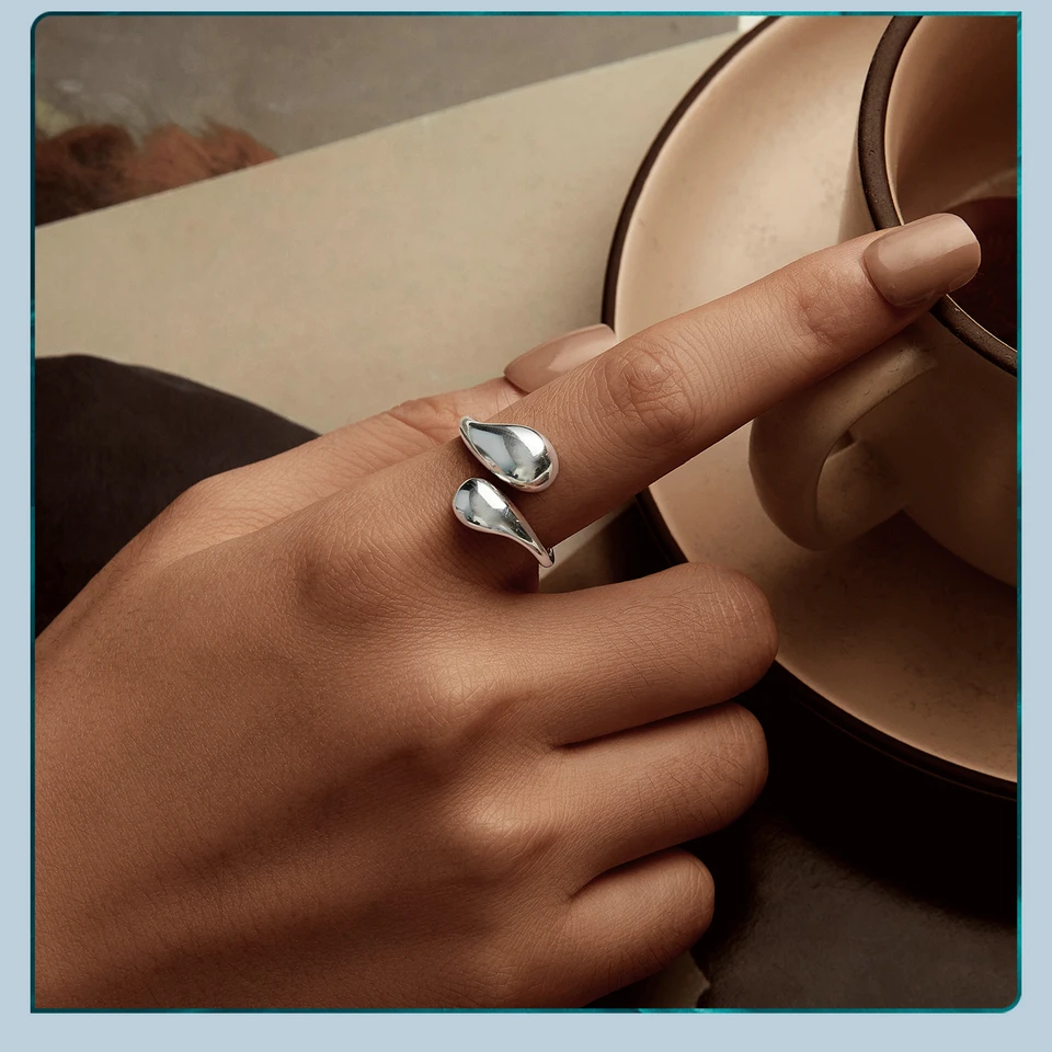 Chunky Water Droplet Ring, 925 Sterling Silver Handmade