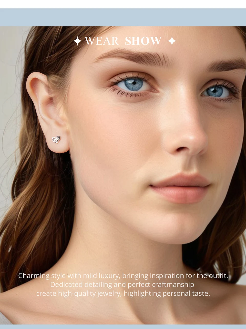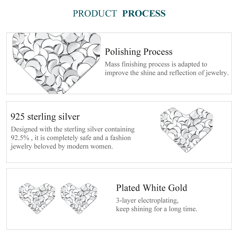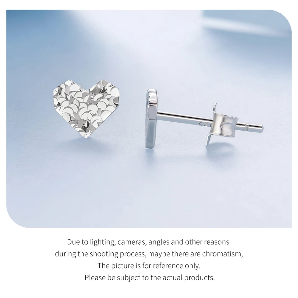 Dazzling Polished Heart Stud Earrings Glossy Scale Earrings for Pierced Women Girl Glittering Jewelry Fashion Accessories