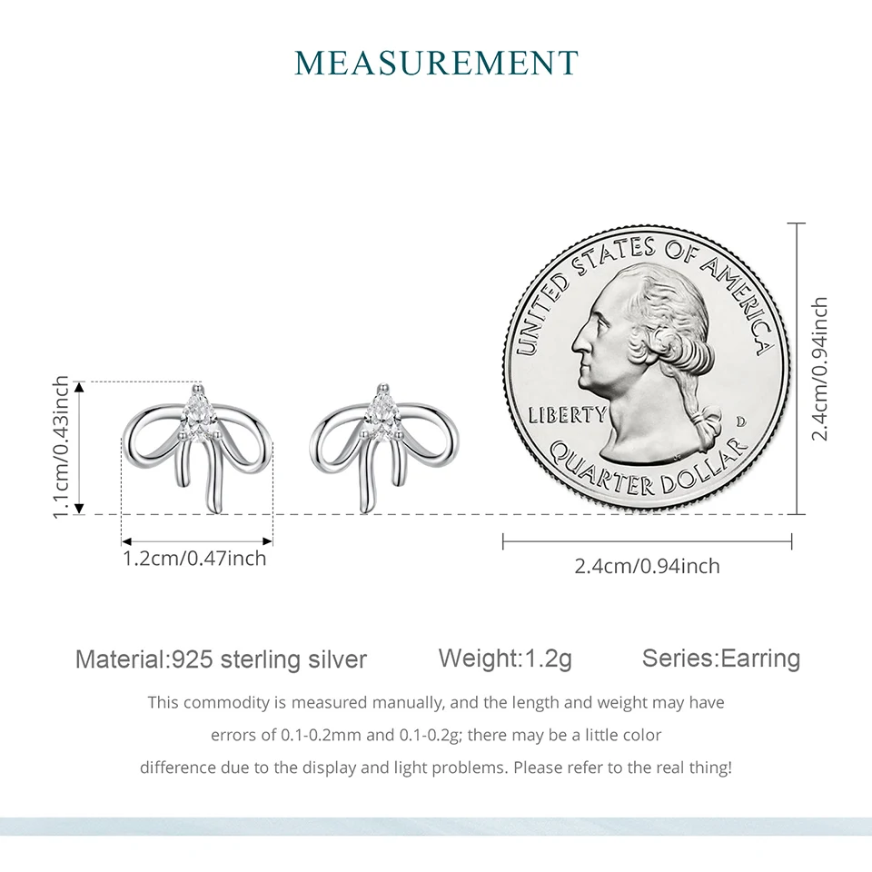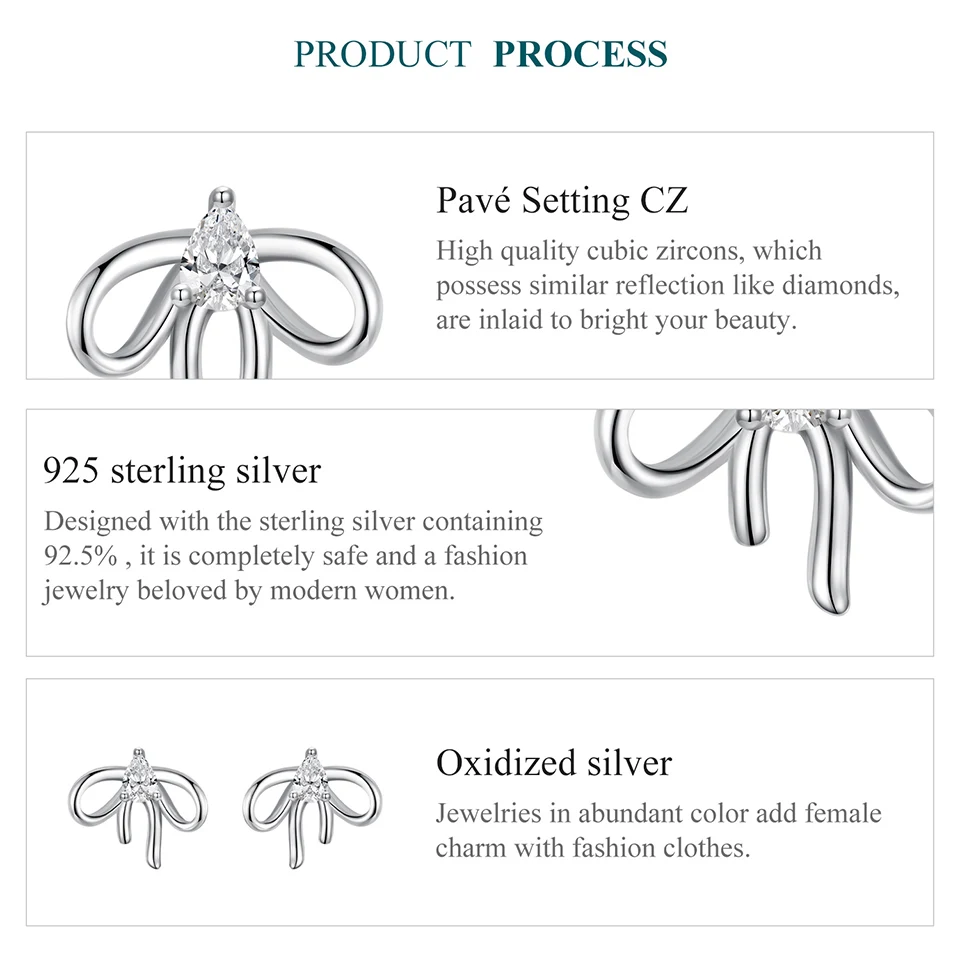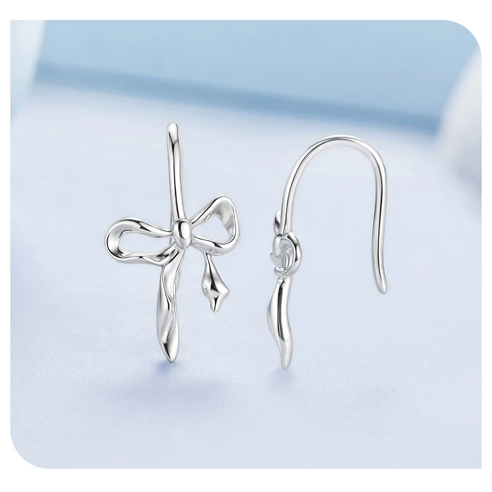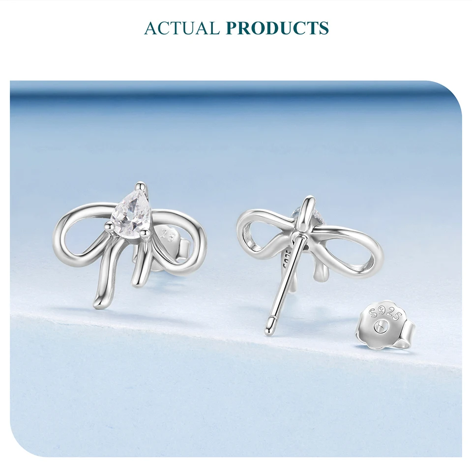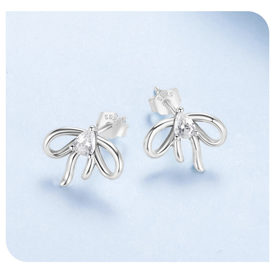 Bow CZ Stud Earrings Romantic Bowknot Hook Earrings for Women Earrings 925 Sterling Silv