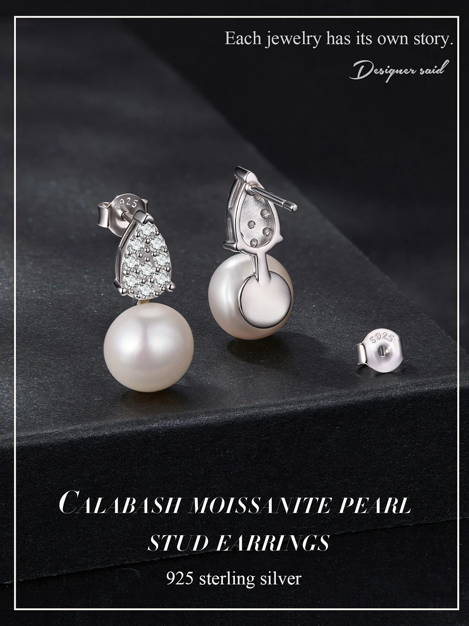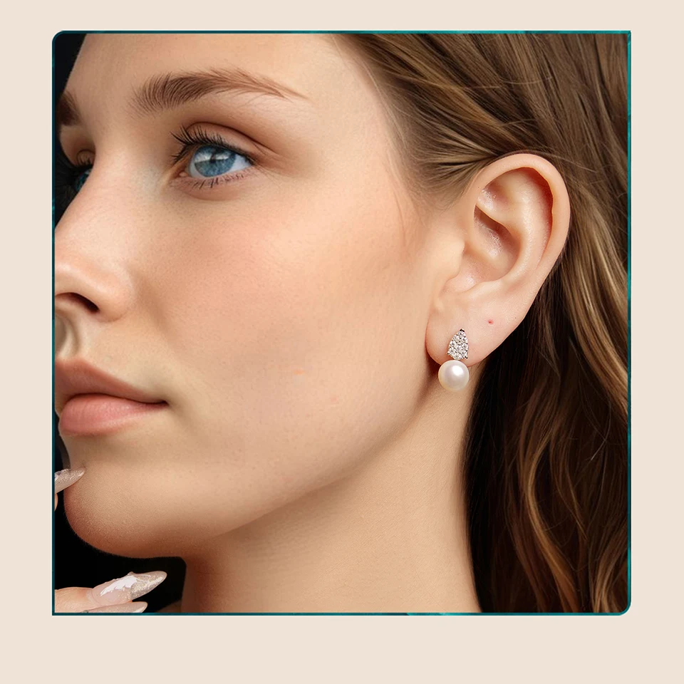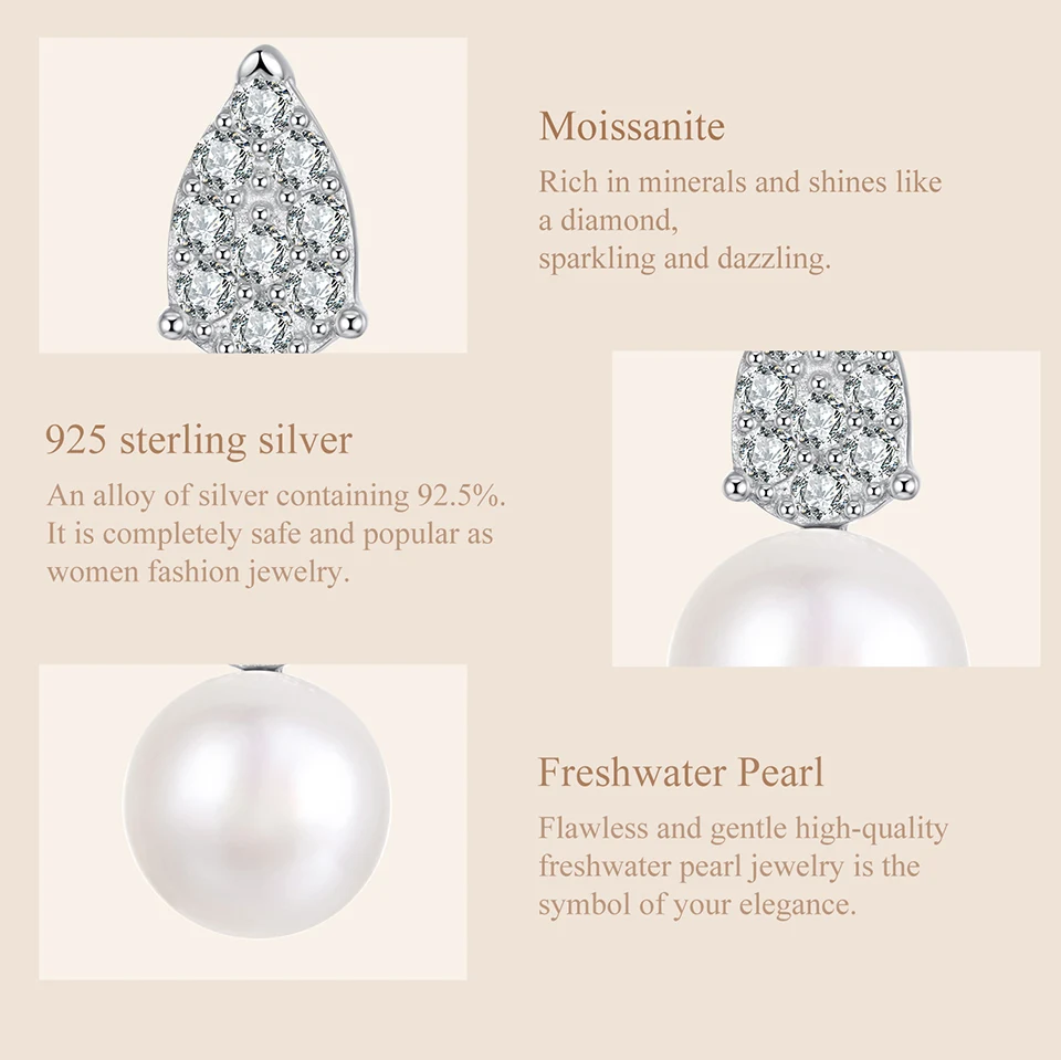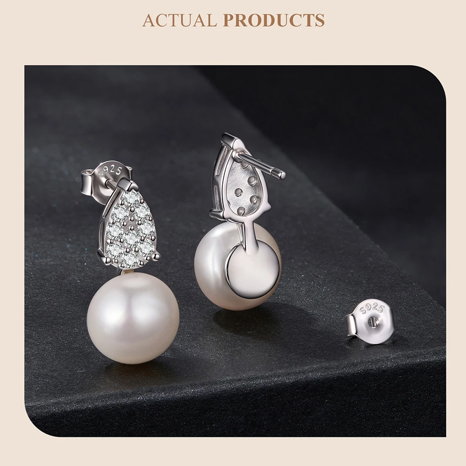 925 Sterling Silver Moissanite Pearl Stud Earrings, Elegant Freshwater TearDrop Diamond Earrings Engagement Jewelry