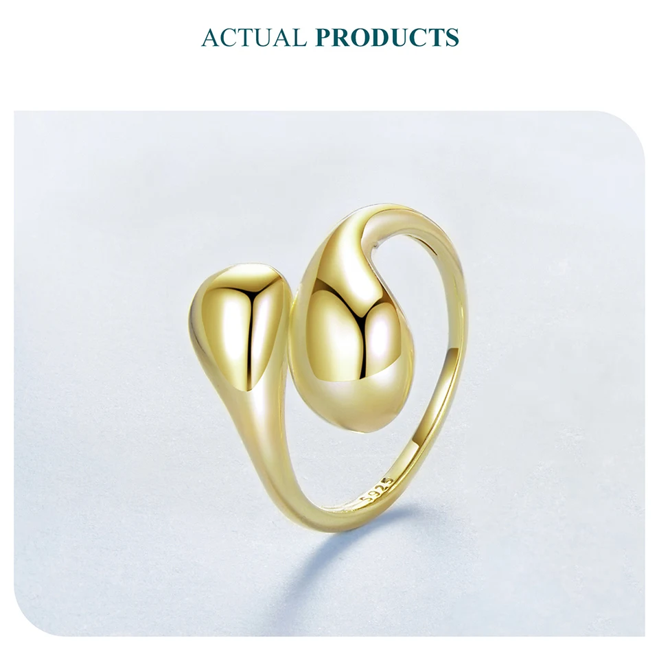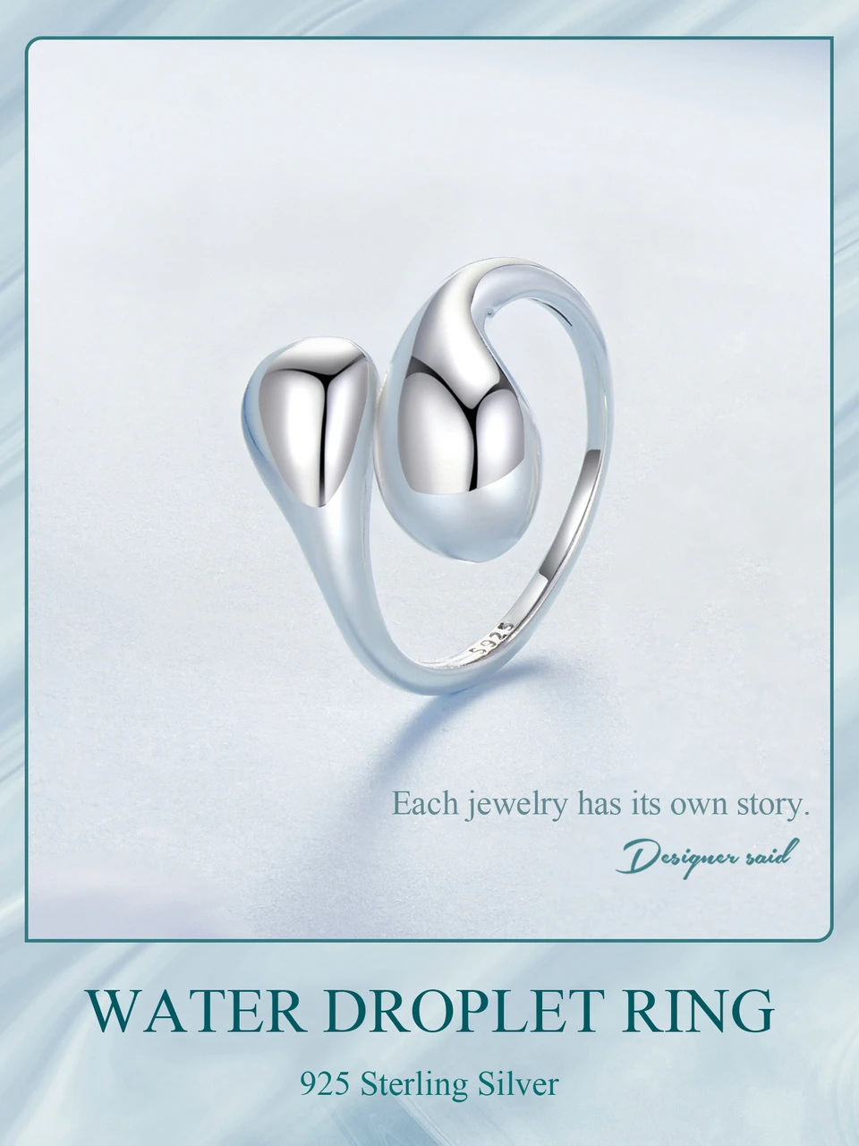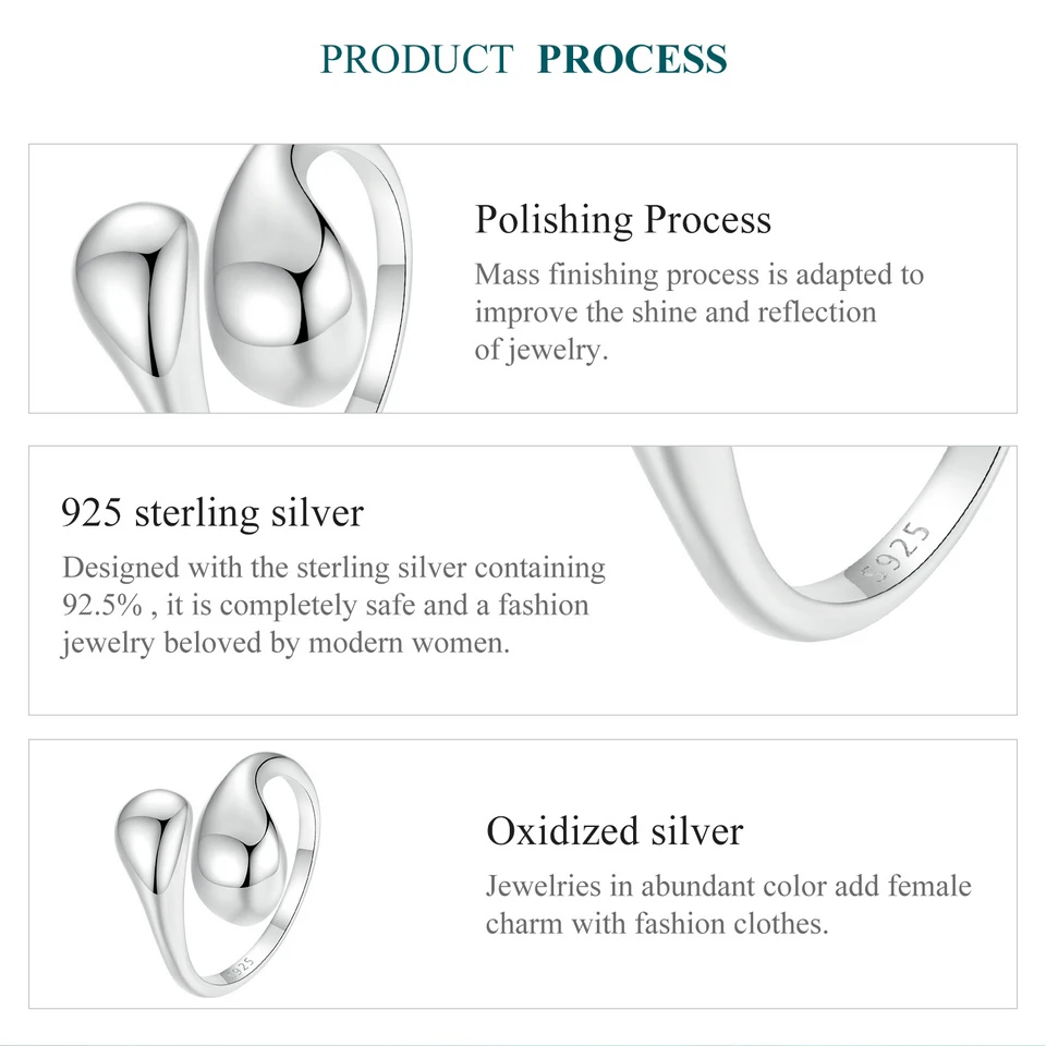925 Sterling Silver Chunky Adjustable Water Droplet Rings Handmade High Polished Thumb