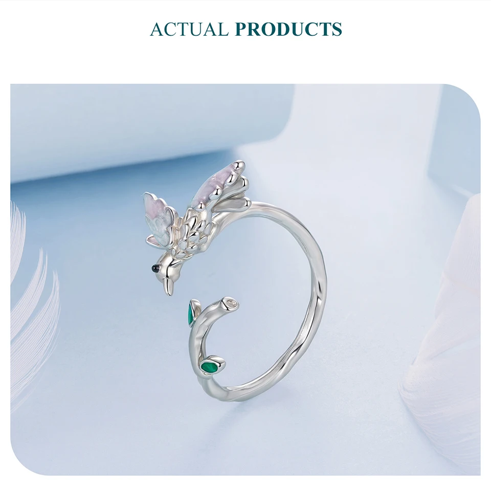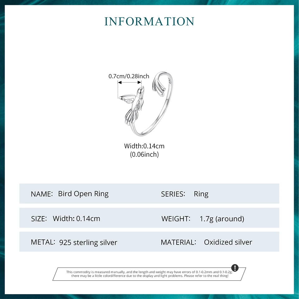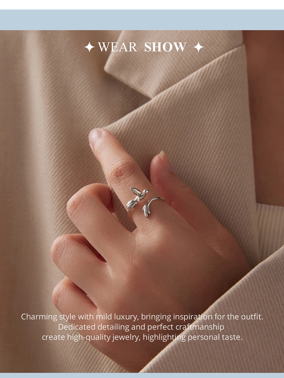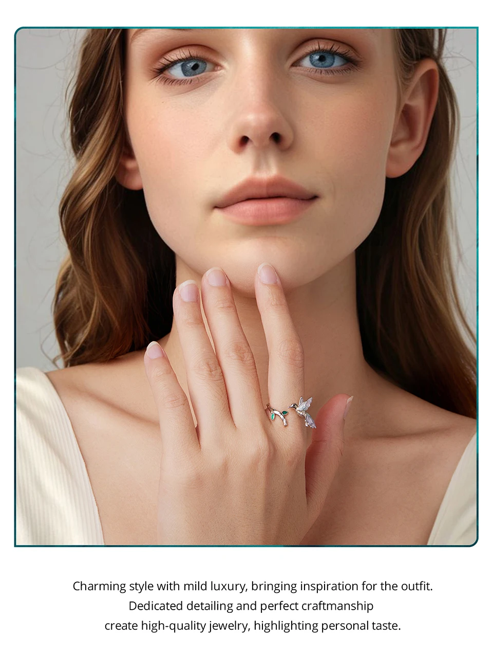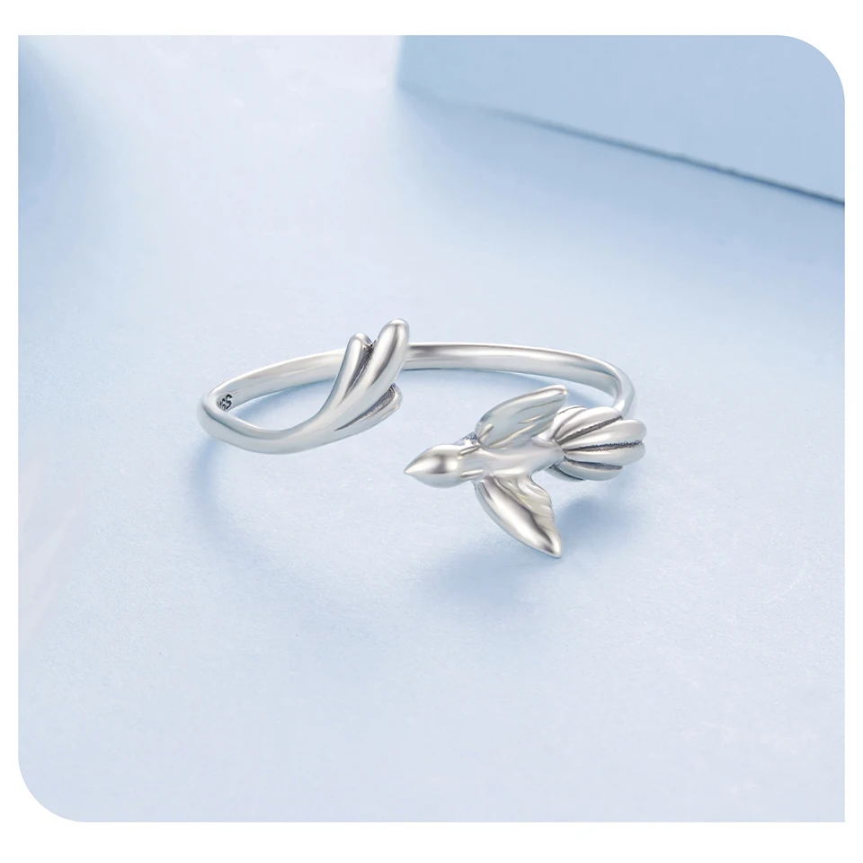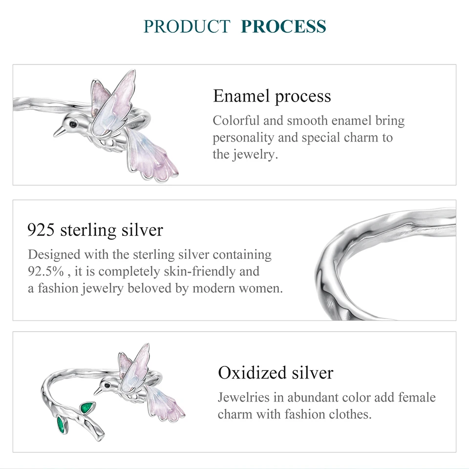 925 Sterling Silver Kingfisher Enamel Open Ring Adjusable 3D Bird Shape Ring for Women