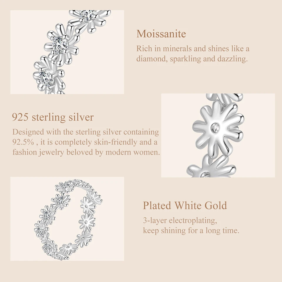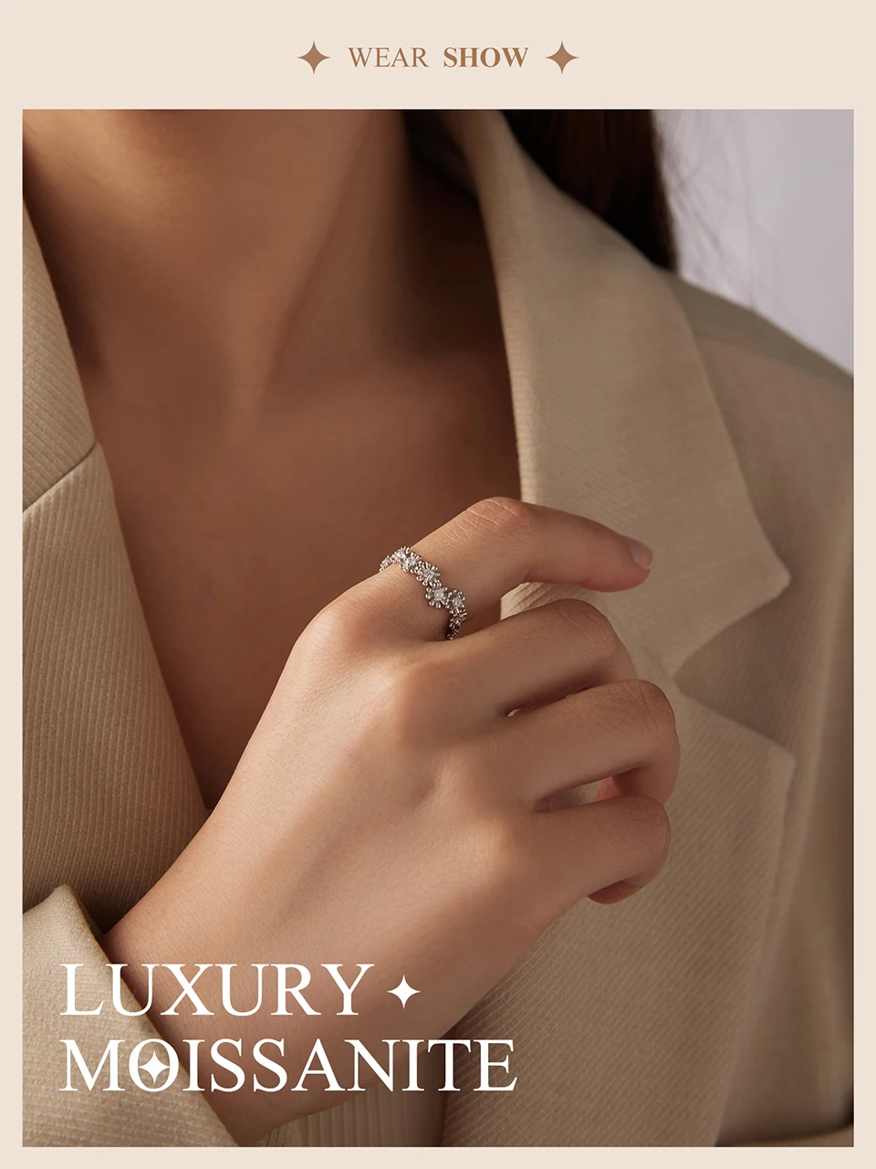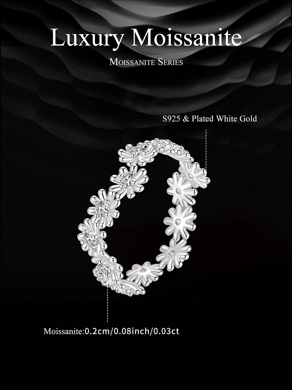 Array Daisy Moissanite Ring Engagement Flower Band Ring for Women Teens Anniversary Purity Love Jewelry