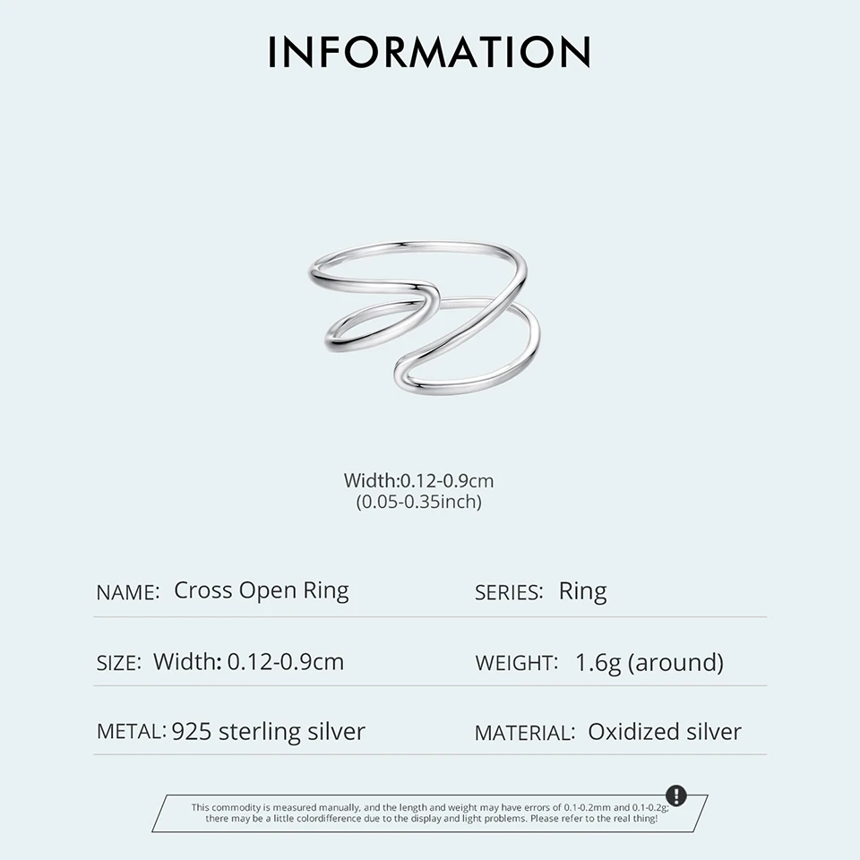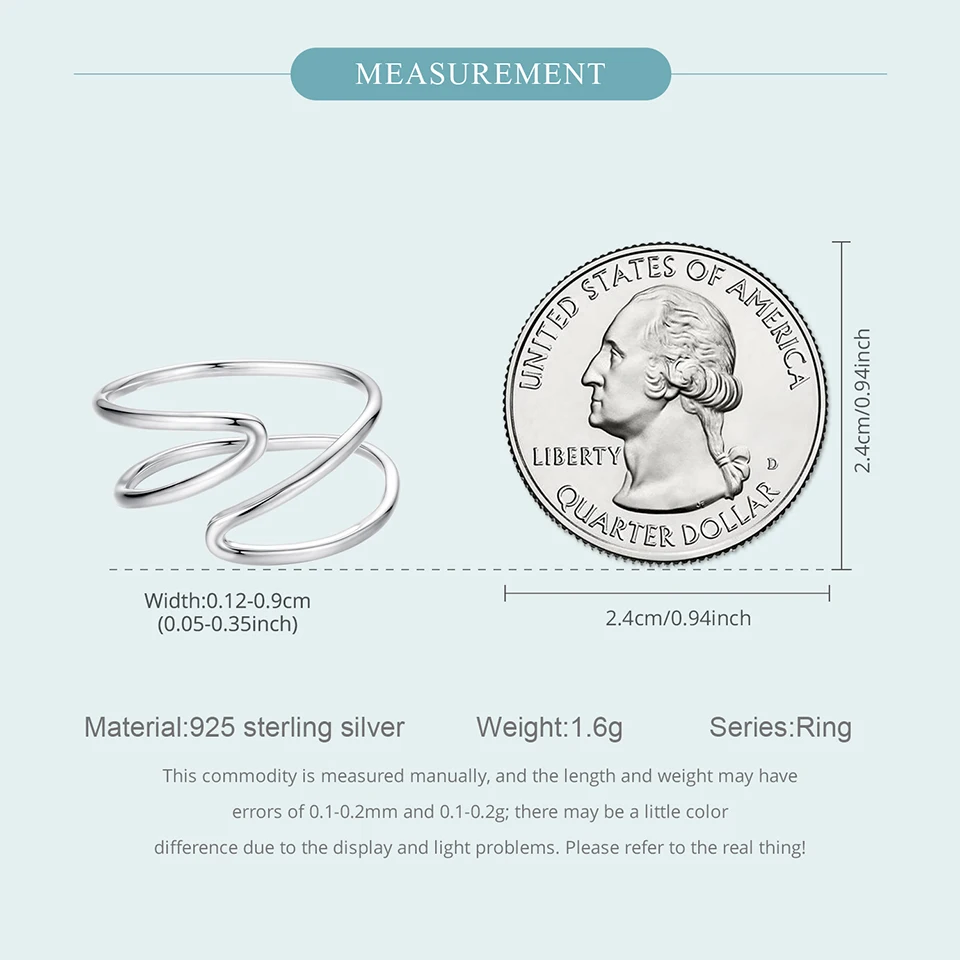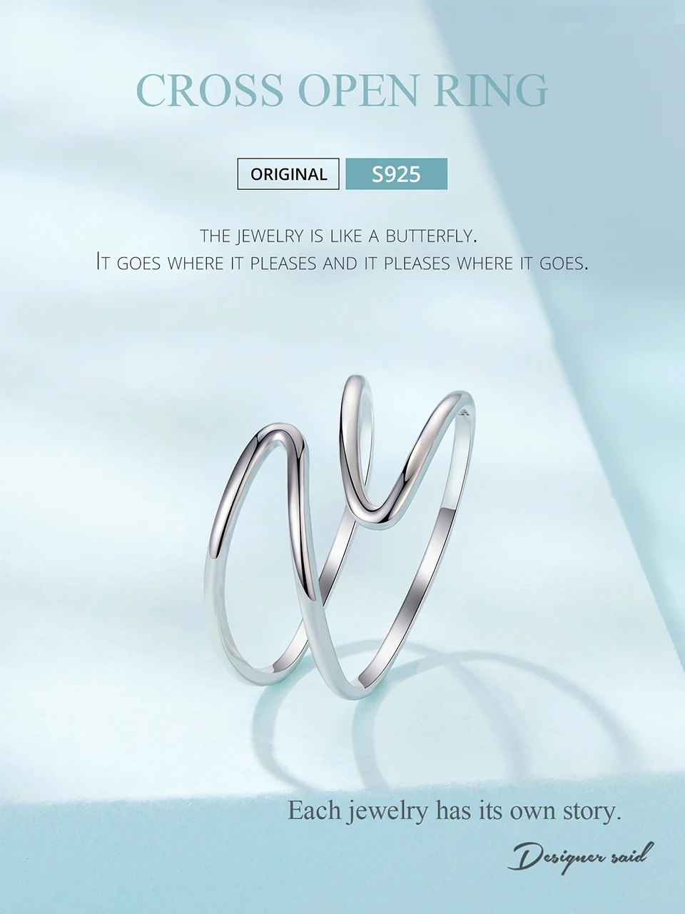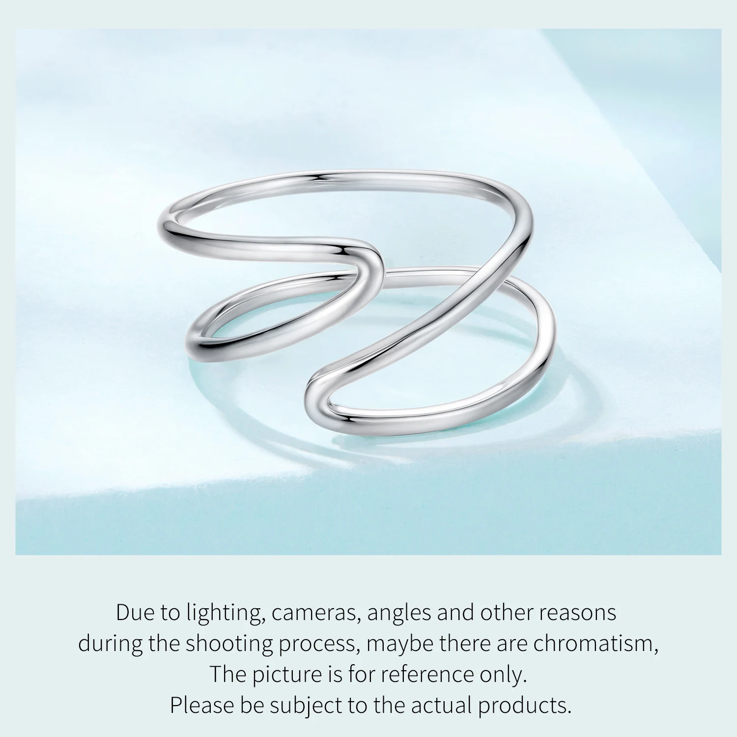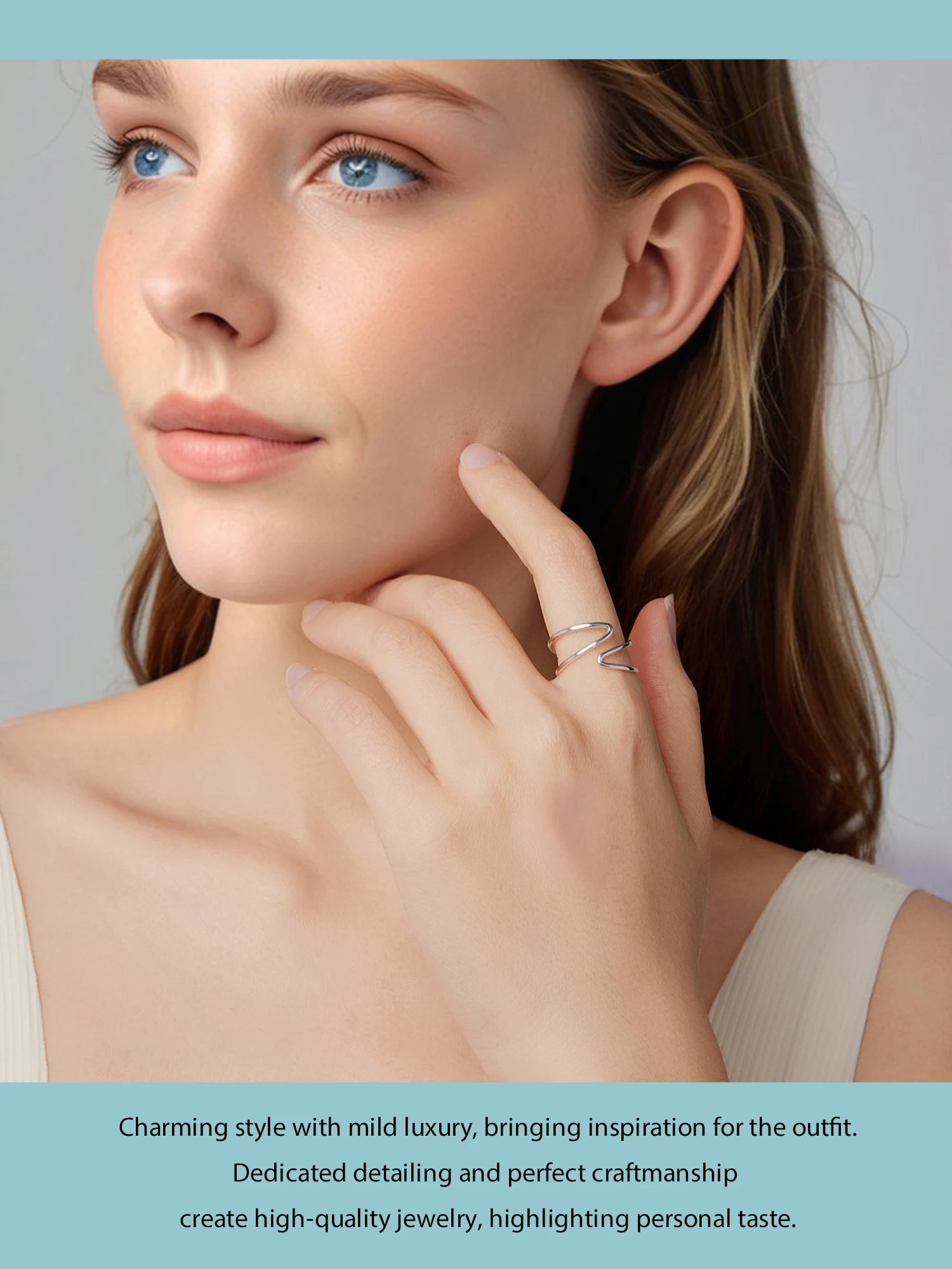 925 Sterling Silver Two-Layered Open Ring Curved Line Simple Ring for Women