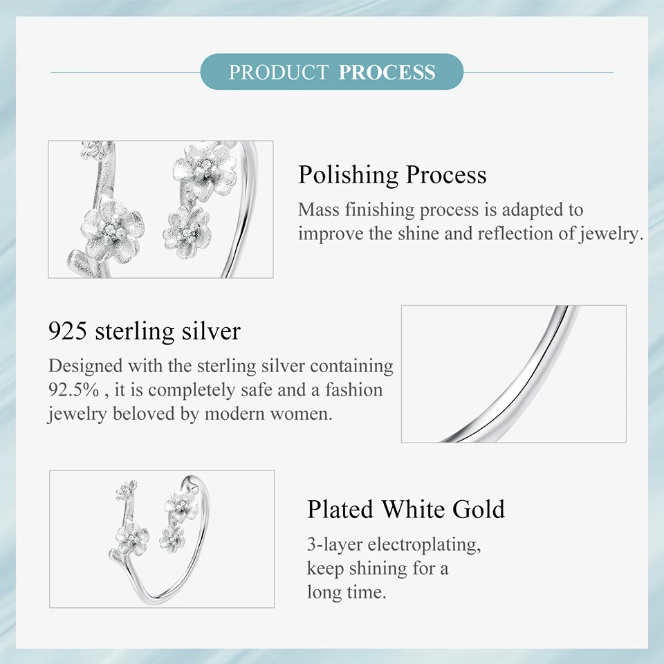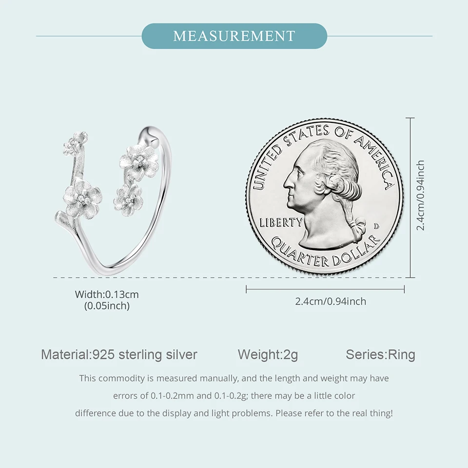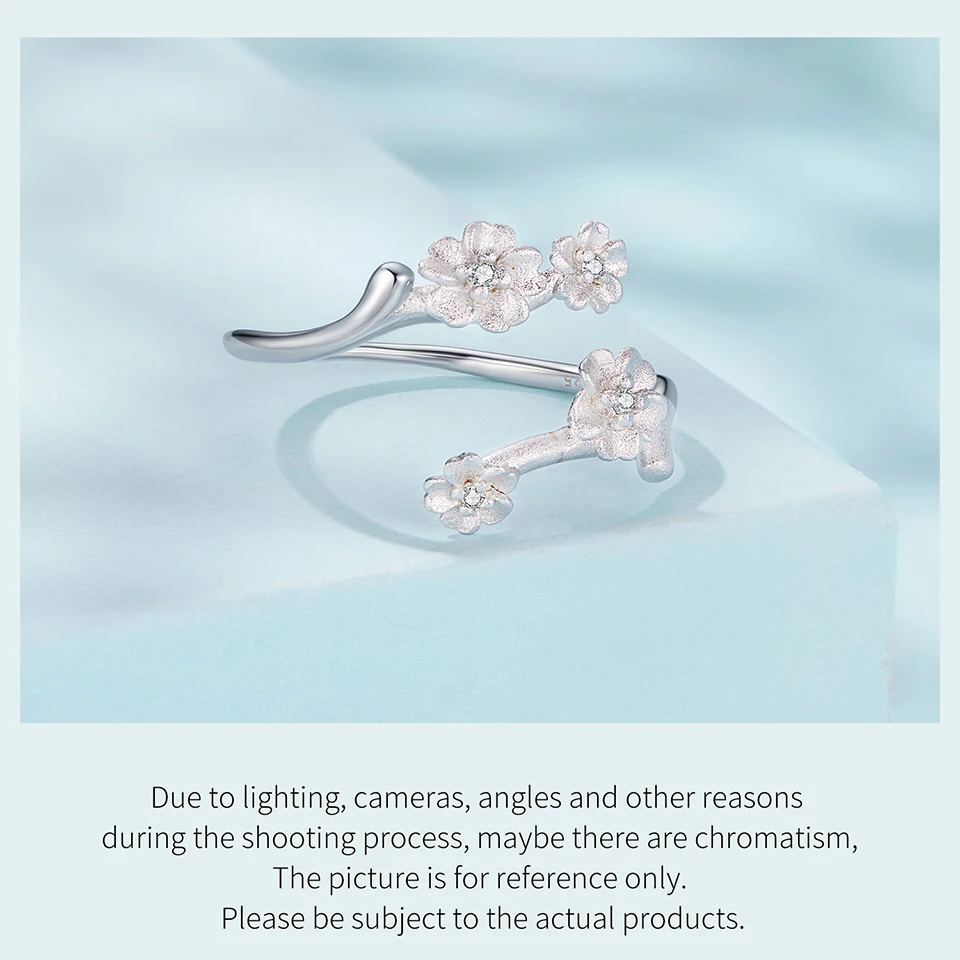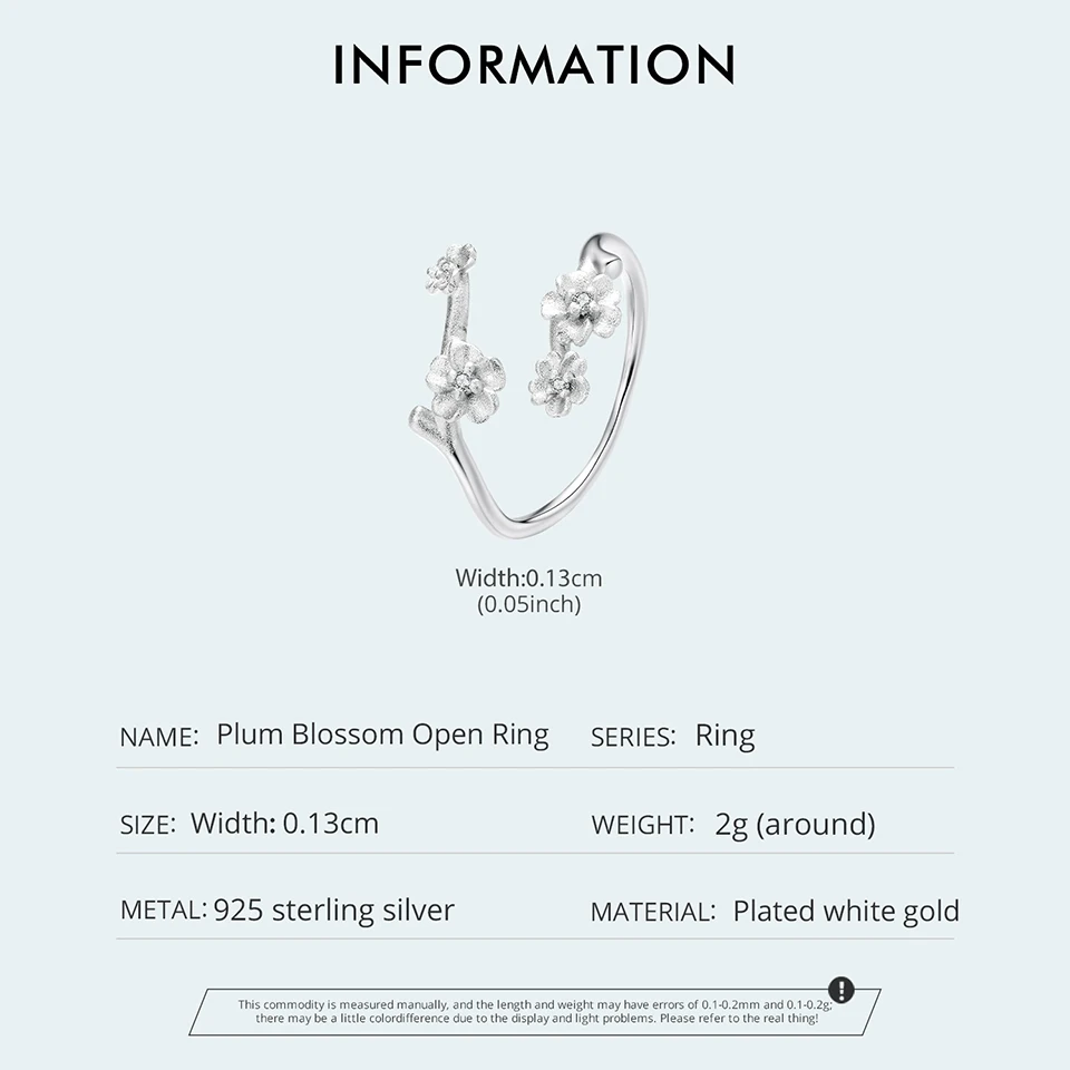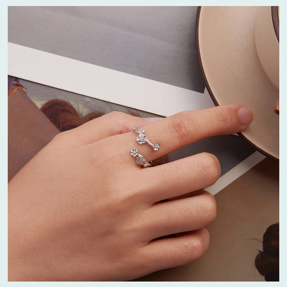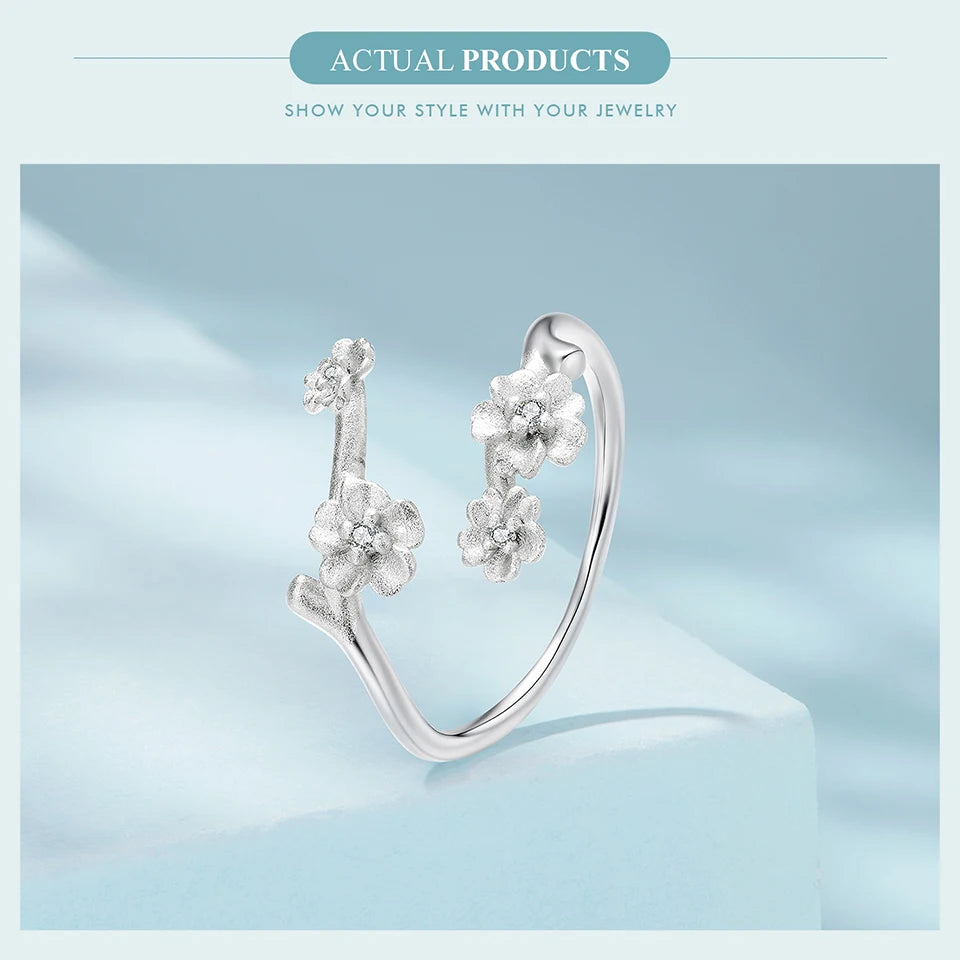 925 Sterling Silver Plum Blossom Open Ring Winter Flower Adjustable Ring with Frosted Texture for Women Elegant Giften