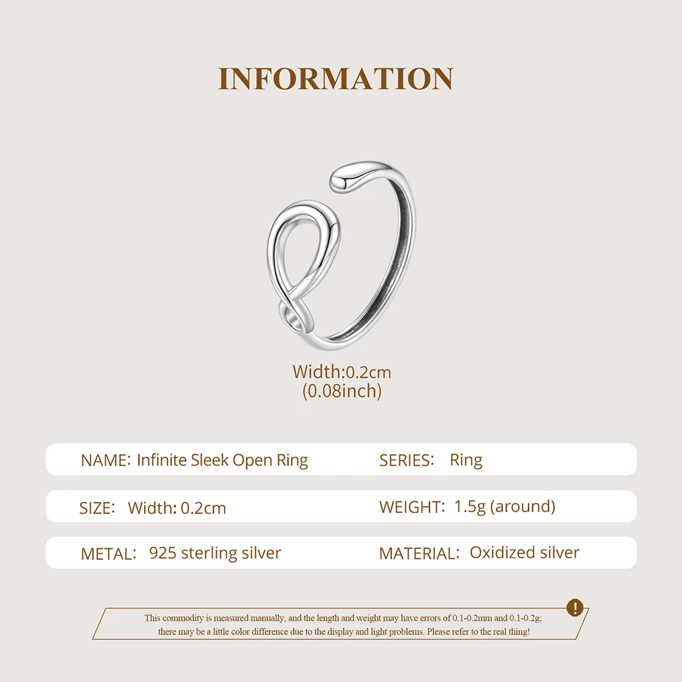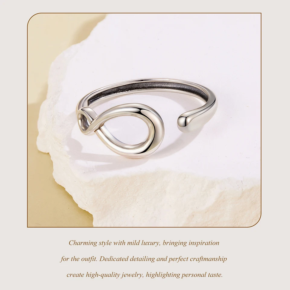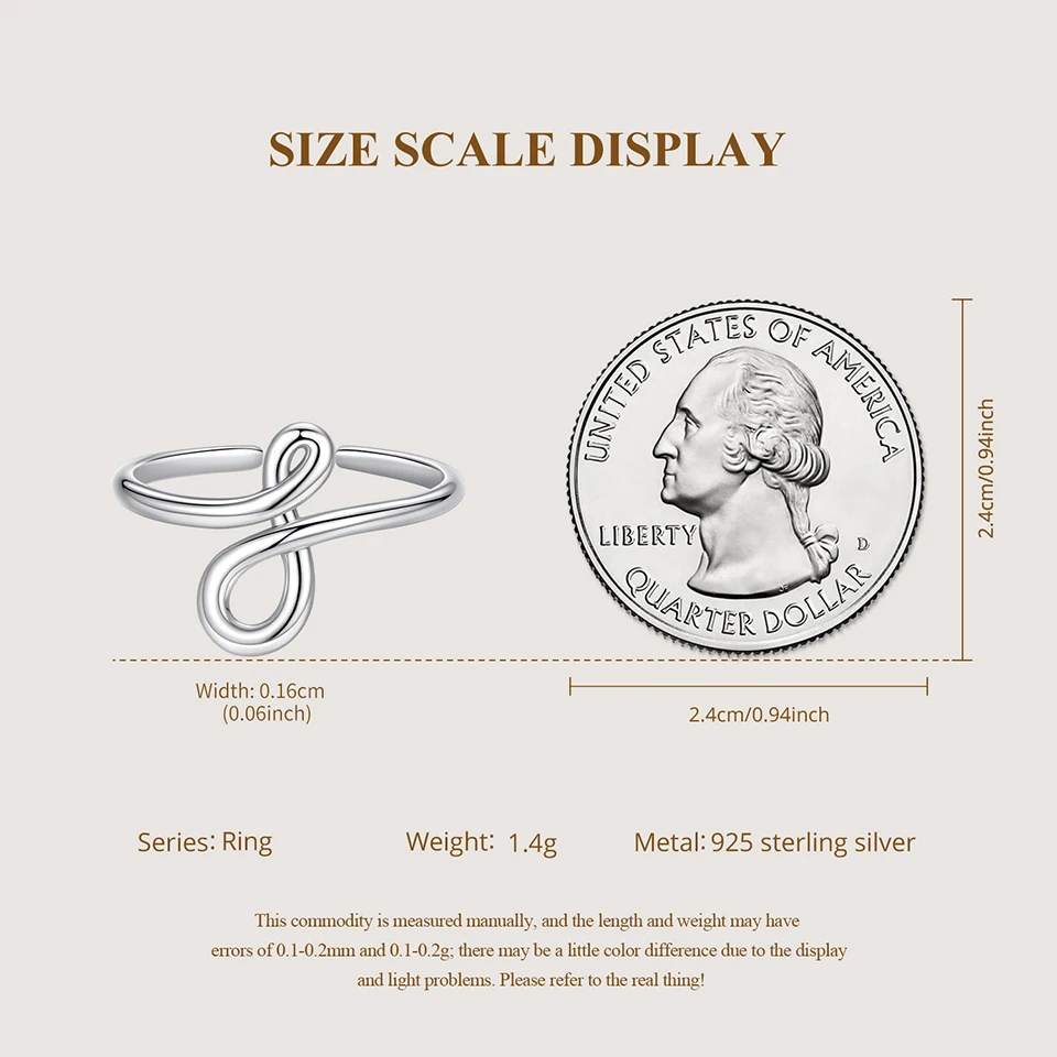 925 Sterling Silver Infinite Sleek Open Ring, Twisted Love Ring for Women