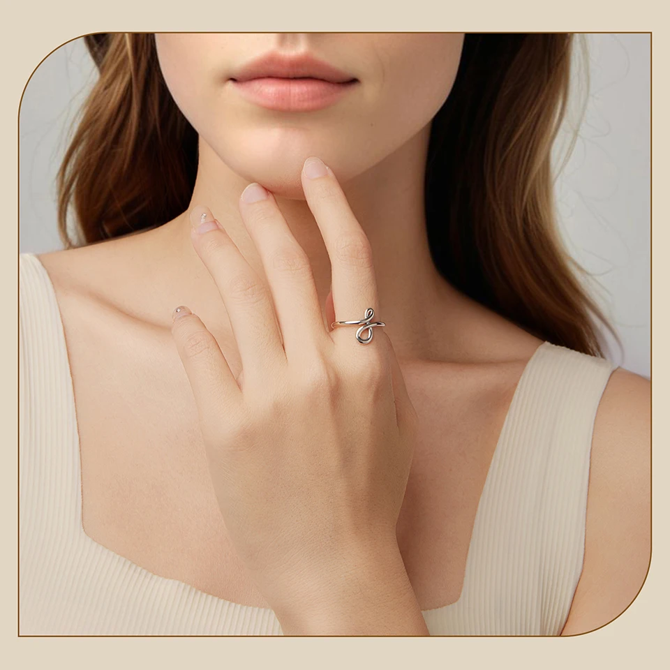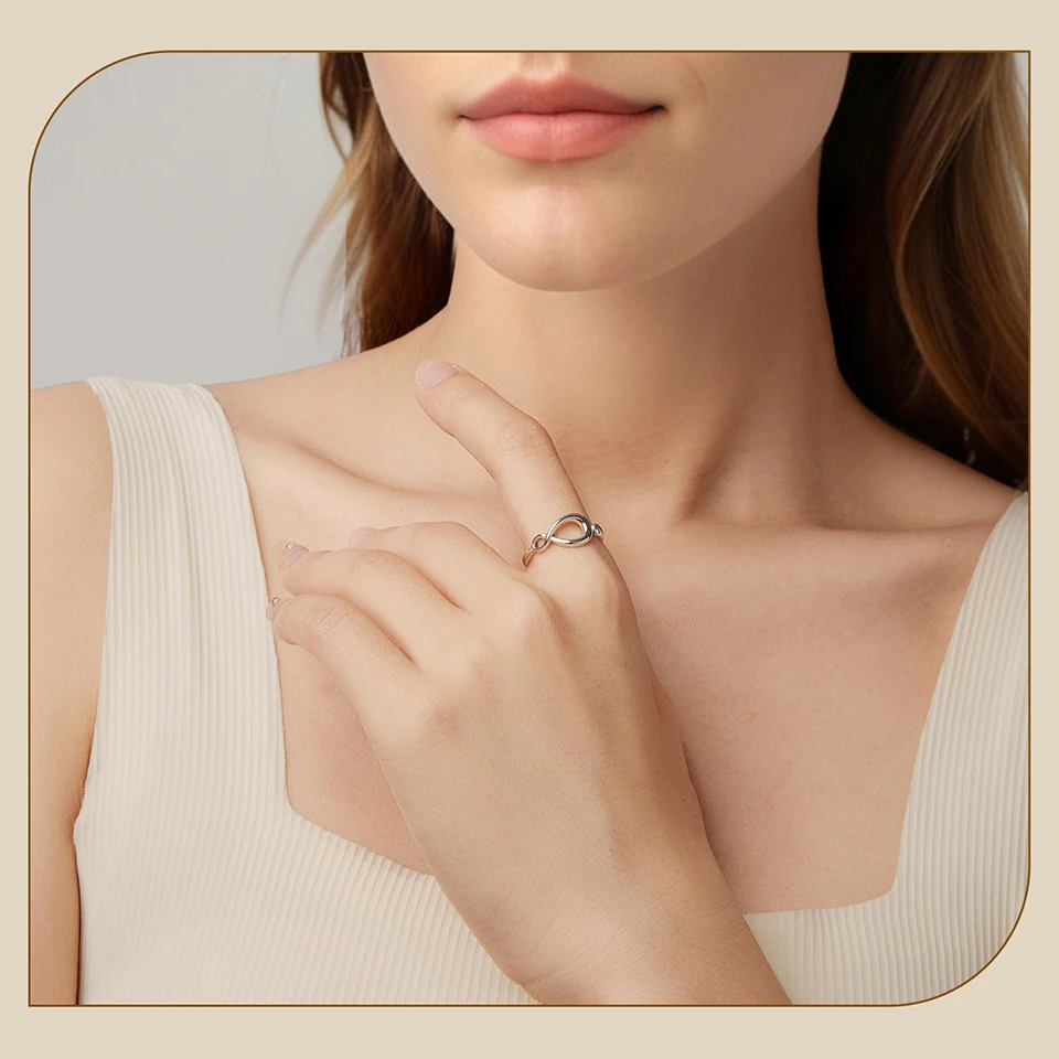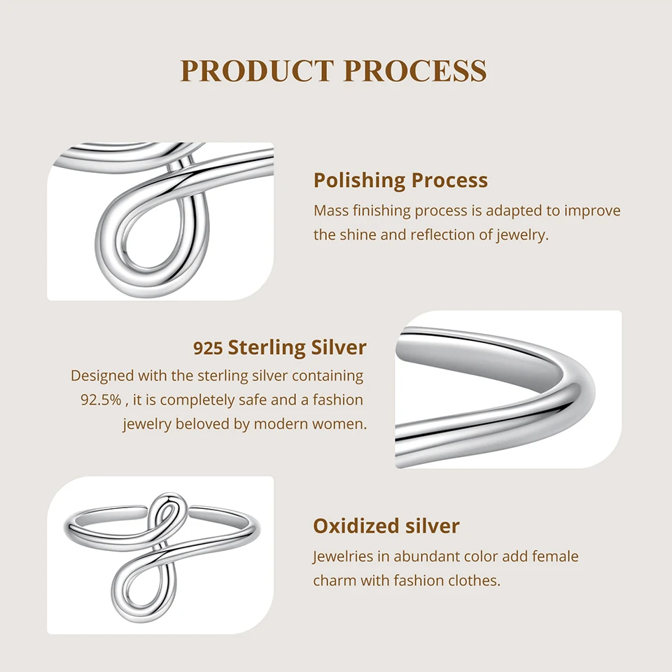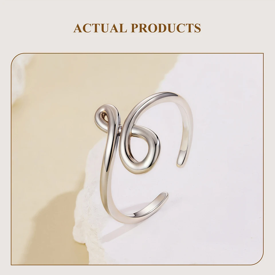 925 Sterling Silver Infinite Sleek Open Ring, Twisted Love Ring for Women