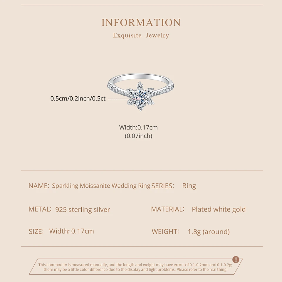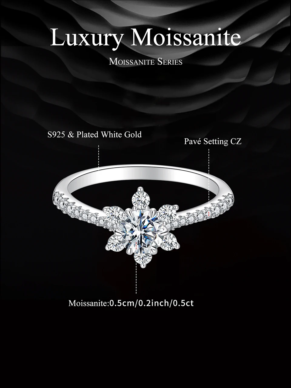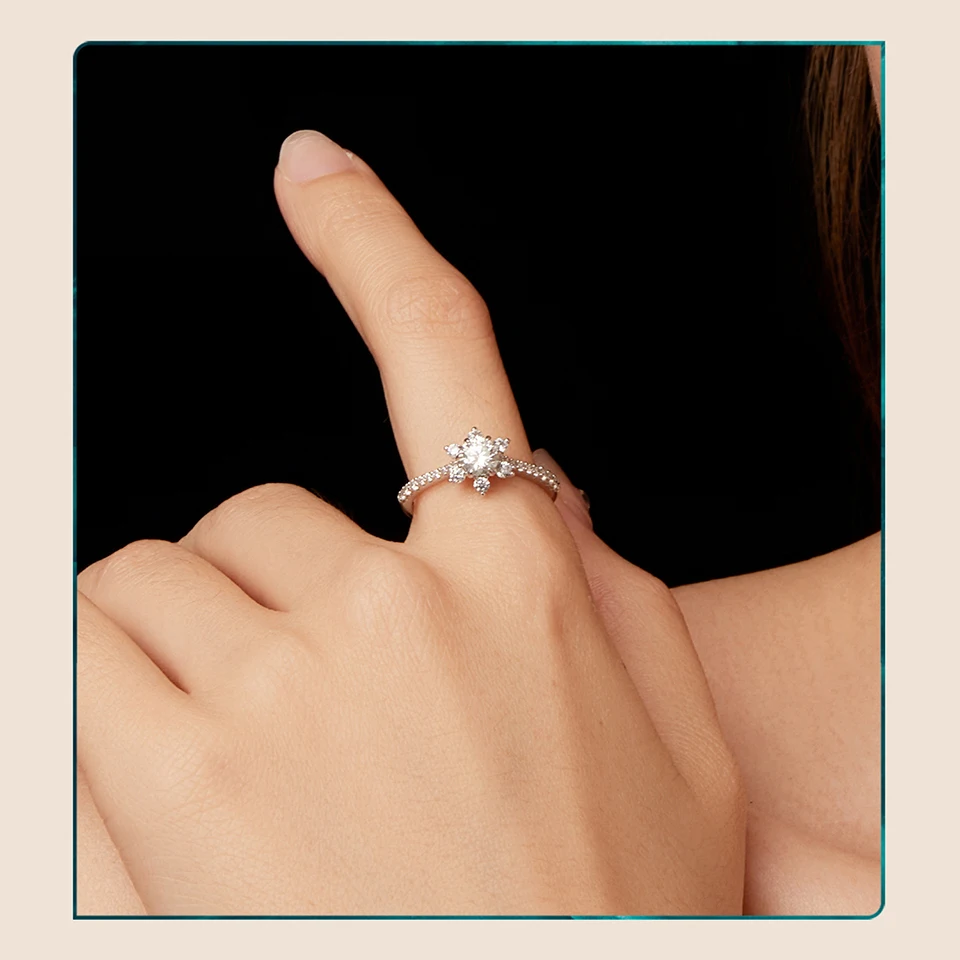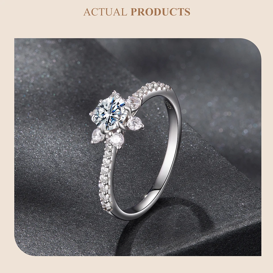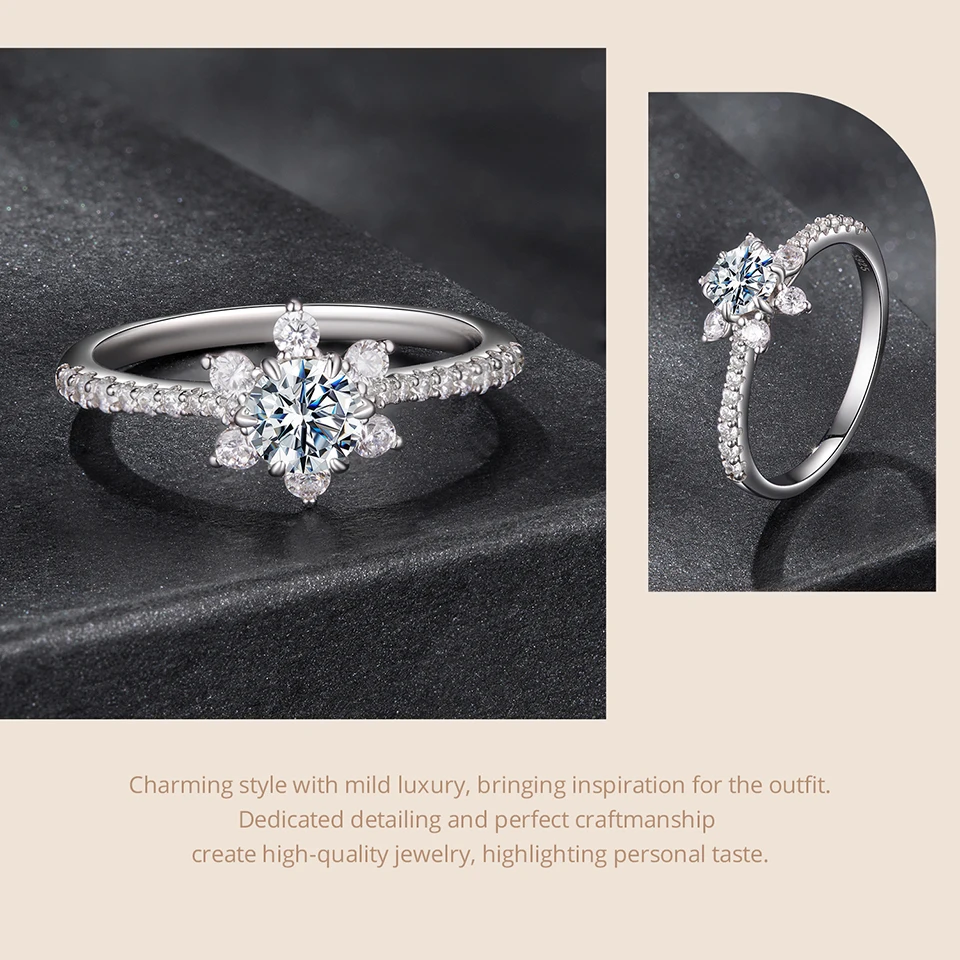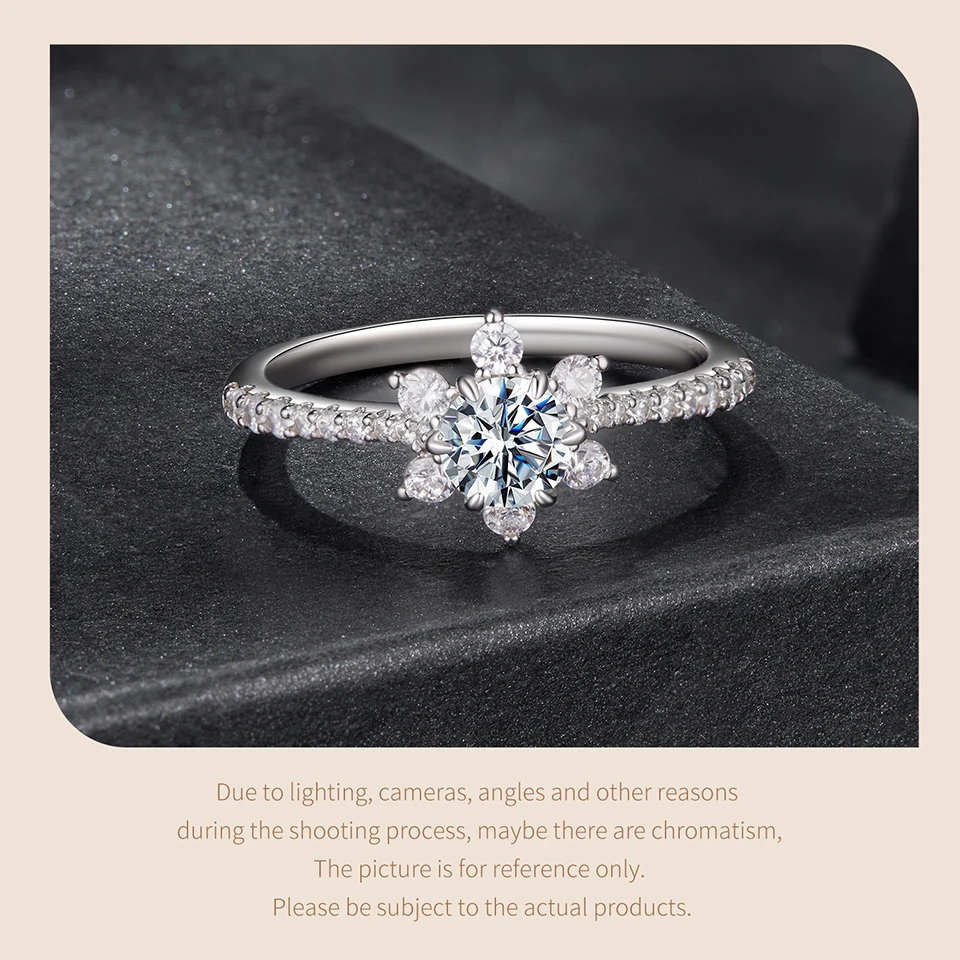 Round Cut Moissanite Wedding Ring VVS1 D Color, 925 Sterling Silver Snowflake 6-Prongs Setting Band Ring