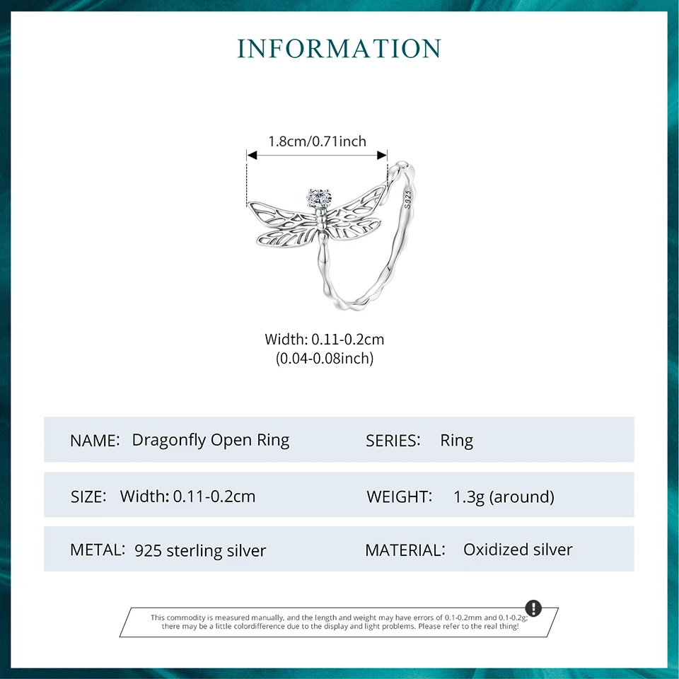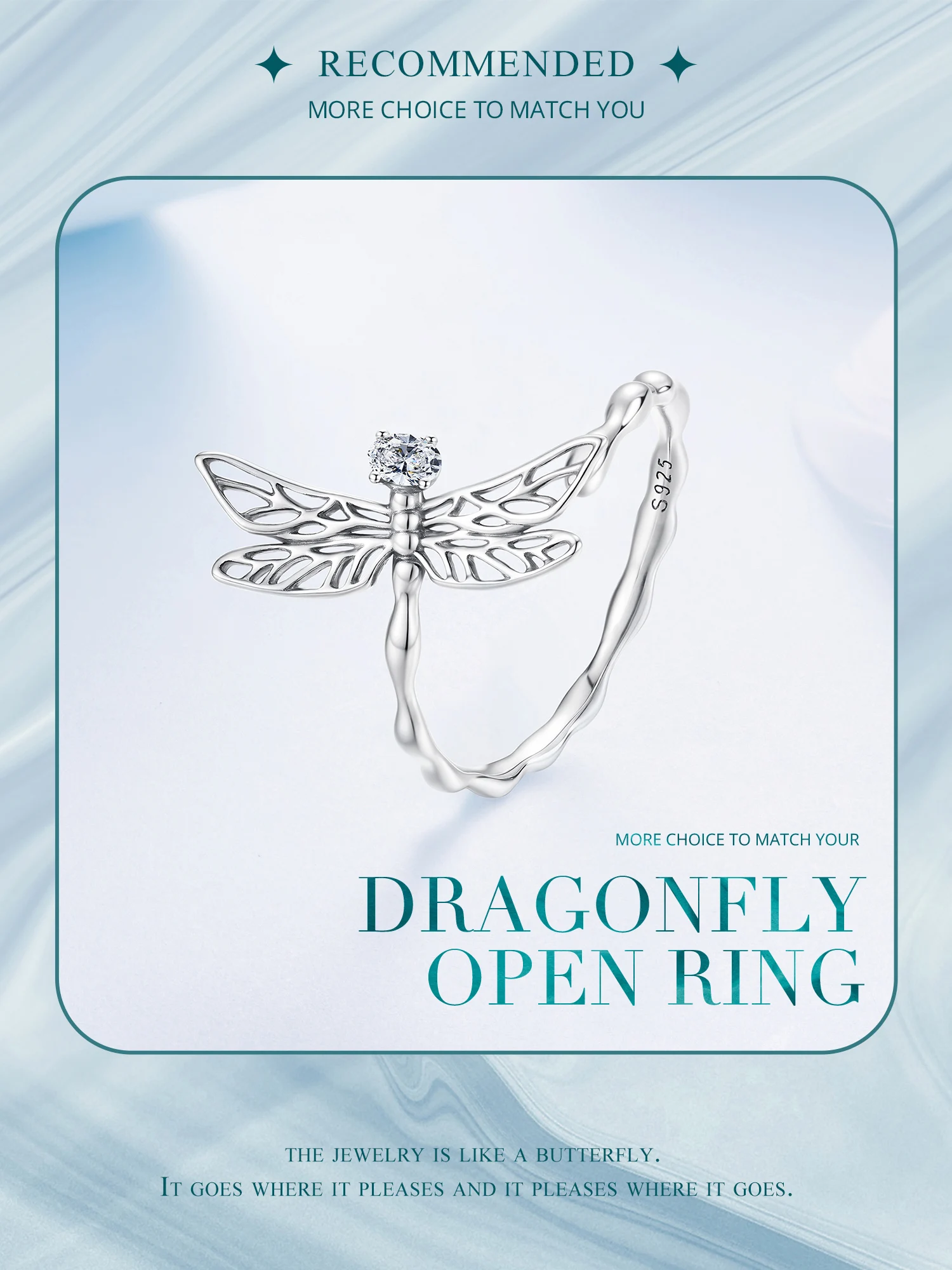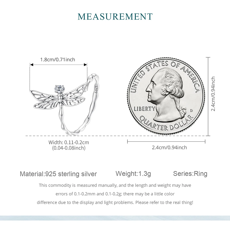 925 Sterling Silver Twist Dragonfly Open Ring Pave Setting CZ Adjustable